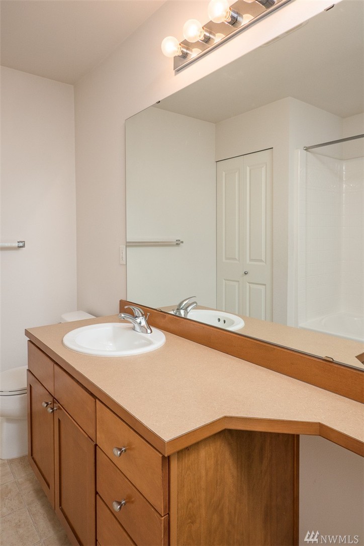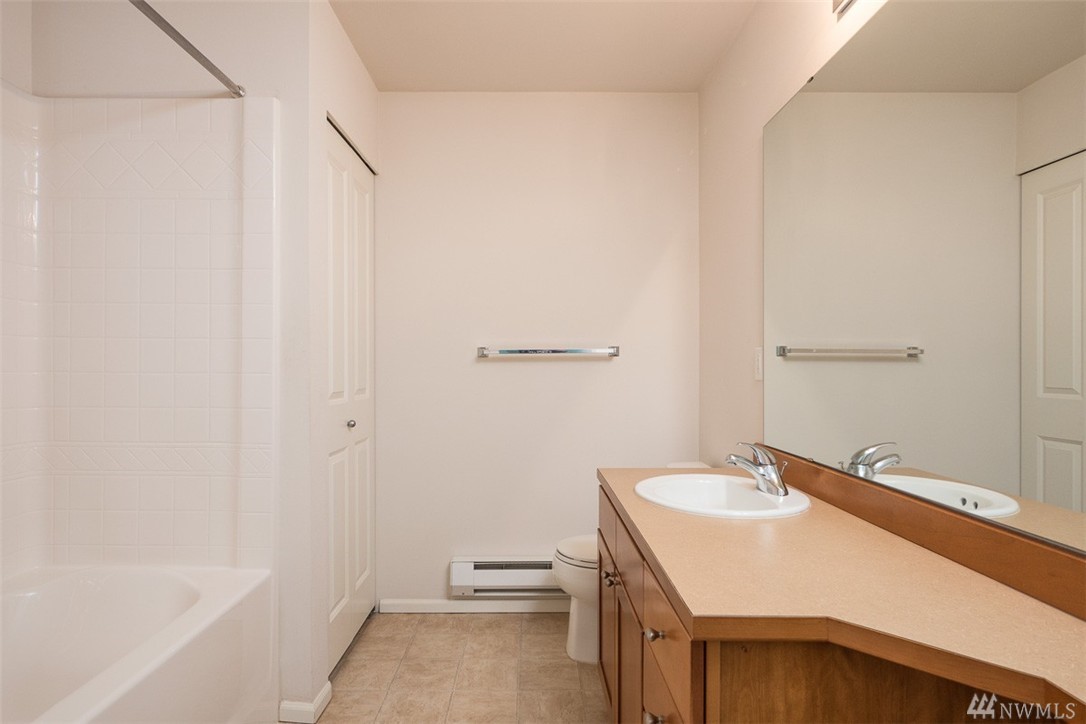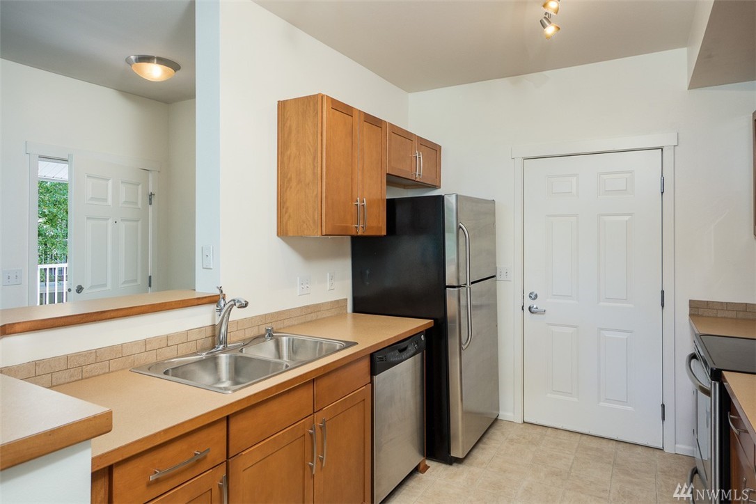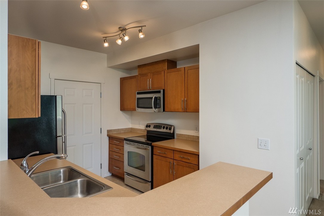 No Stairs and attached garage for secure access to your home. One level end/unit 2-bedroom condo in Viewcrest! Tall ceilings and big windows bring in lots of natural light. Large kitchen with stainless appliances. Cozy living room with slider access to your patio with seasonal view of mountains and valley. Spacious master bedroom with walk-in closet and Jack-n-Jill full bath. Separate laundry room accommodates a full size washer and dryer. Walk to Earthworks Park, close to Southcenter and I-5.