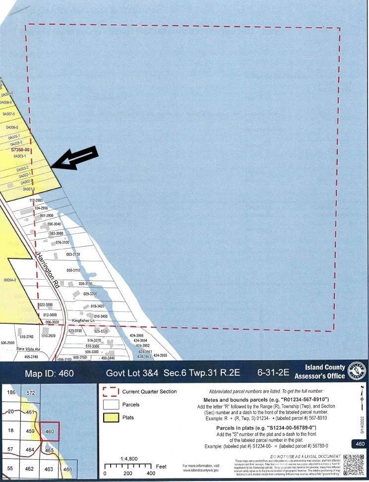 Harrington Road view lot. Approx. 6000 sq. ft. unimproved wooded waterfront lot. Lot is located next to house at 295 Harrington Road. Views Saratoga Passage and M. Baker. Property map shows 28,888 sq. ft. but about half the lot is tidelands.