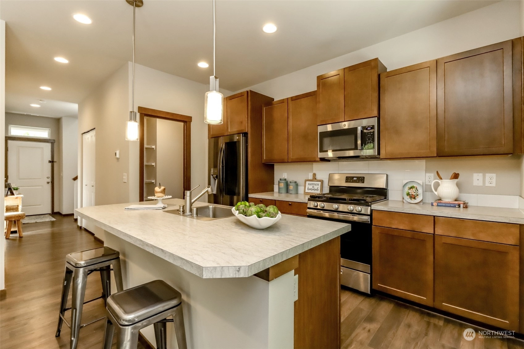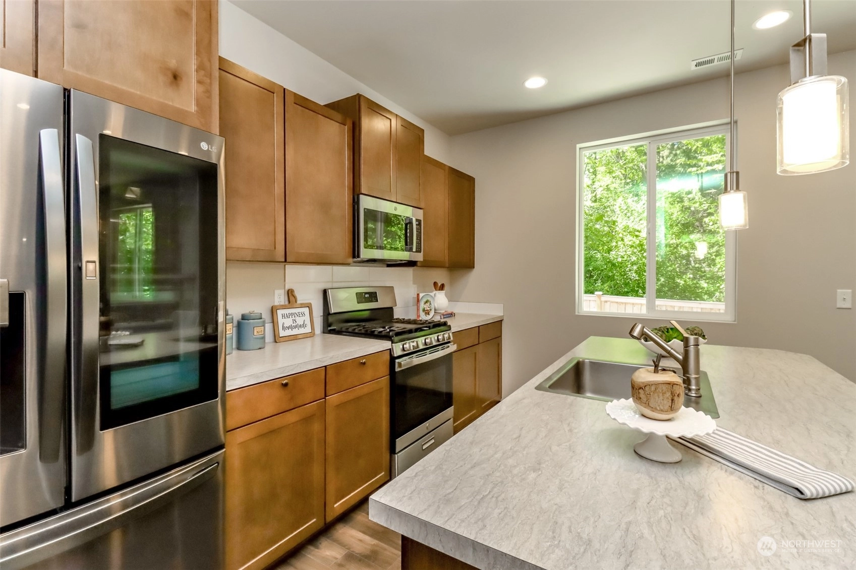 Come home to this centrally located in the heart of Port Orchard, 2.5% assumable loan, 2020 built, 1814 sqft home featuring 3 beds & 2.5 baths on a quiet dead end street. The open concept floor plan on the main level boasts high ceilings & allows for ease of entertaining. The eat-in kitchen include SS appliances & walk-in pantry with lots of storage. The open concept great room area has a lovely gas fireplace for comfort & ambiance. Upstairs you will find a large loft area plus 3 bedrooms & a full bath. The primary suite includes a ensuite & 2 closets. Enjoy convenient upstairs laundry. New interior paint throughout. Backed up to a treed greenbelt, the easy maintenance back yard is fully fenced & private. Pre-inspected & move-in ready.