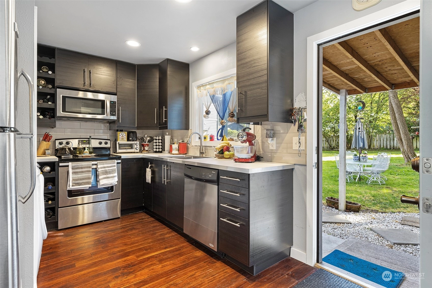 Welcome to this delightful Abode where modern comfort meets classic charm! This Cozy 2 BD 1 Bth, Move in Ready Rambler is located in highly desirable University Place. Kitchen has stainless steel appliance's. Energy Source is supplemented by solar panels on roof. Additionally, heating/cooling needs are met with a ductless Mini-split system. Nicely landscaped front and private fenced & spacious backyard is ready for entertaining guest. Natural & Beautiful backyard includes Apple, Pear, Cherry & Plum tree's. More upgrades include a carport for 2 cars and a shed for extra storage! Easy access to Shopping, Dining, Waterfront Activities & HWY 16! Come enjoy what this neighborhood has to offer!