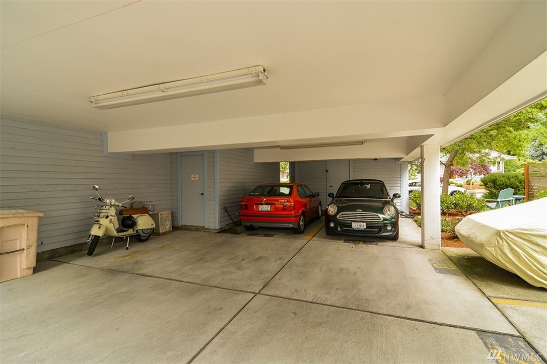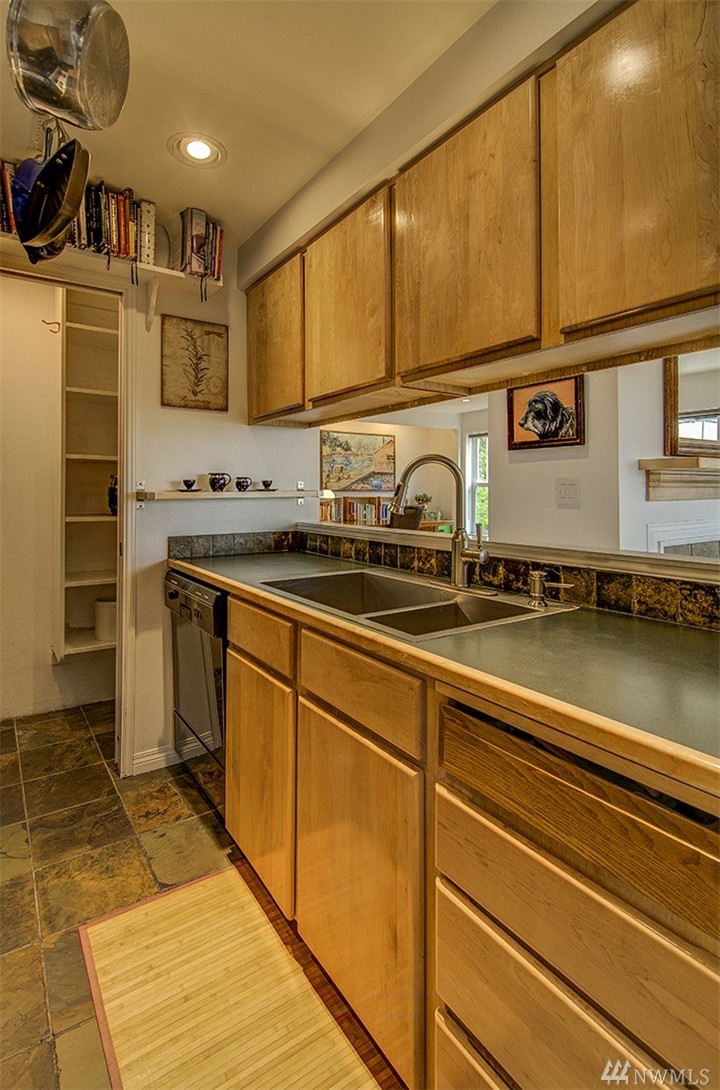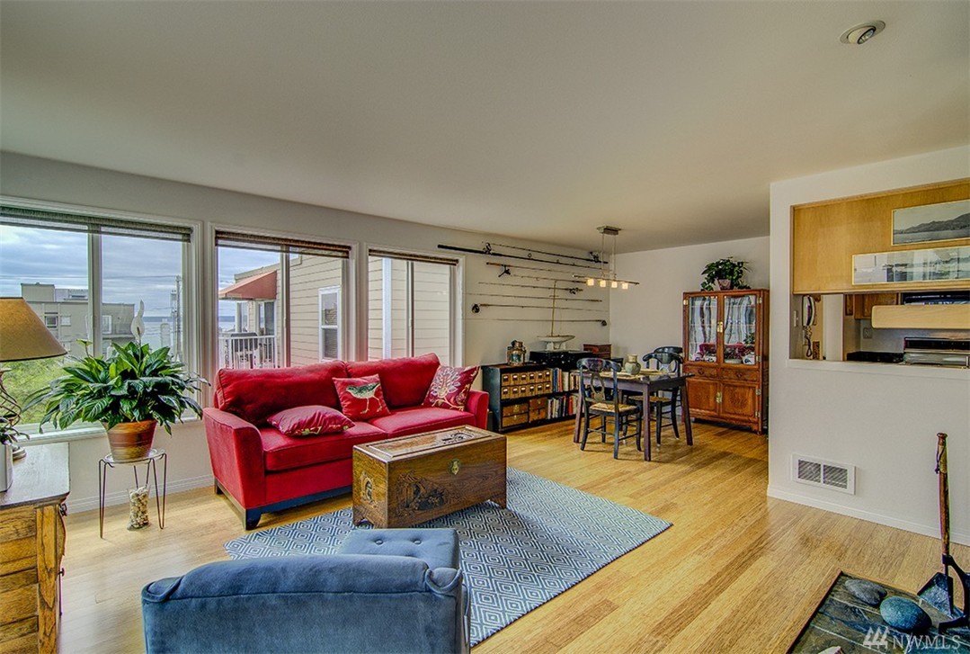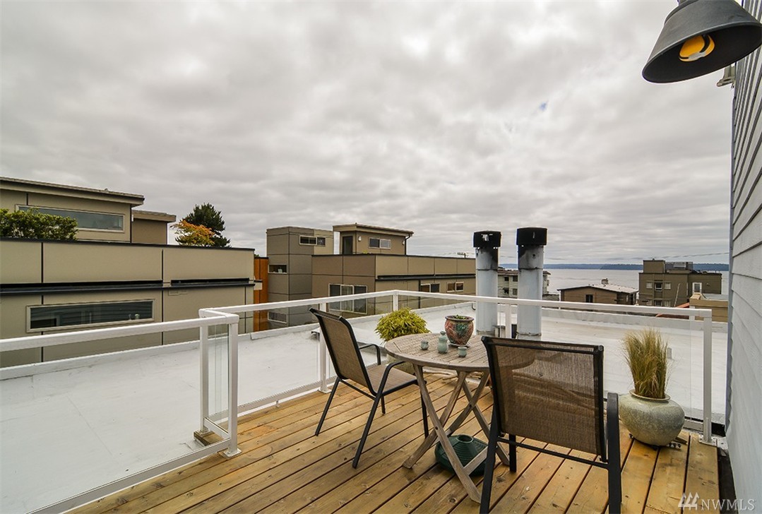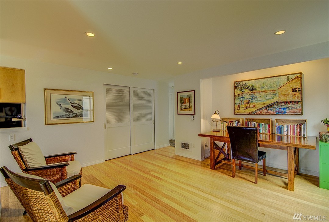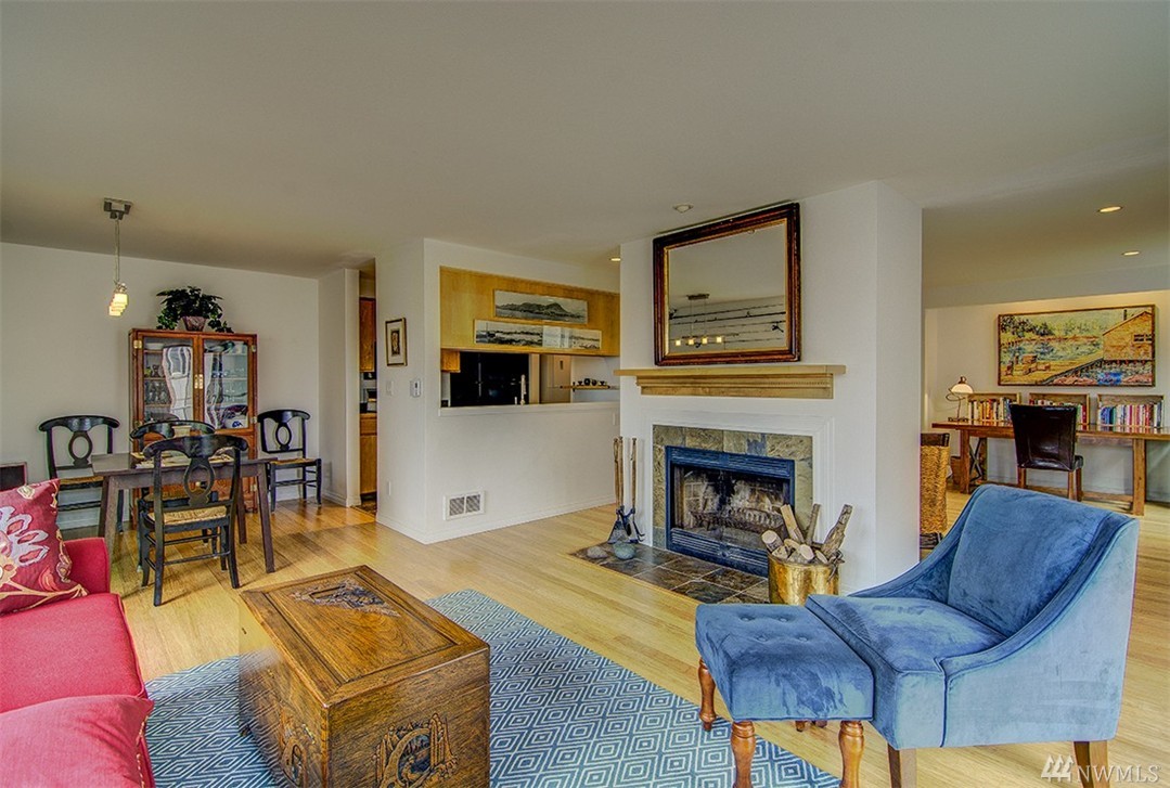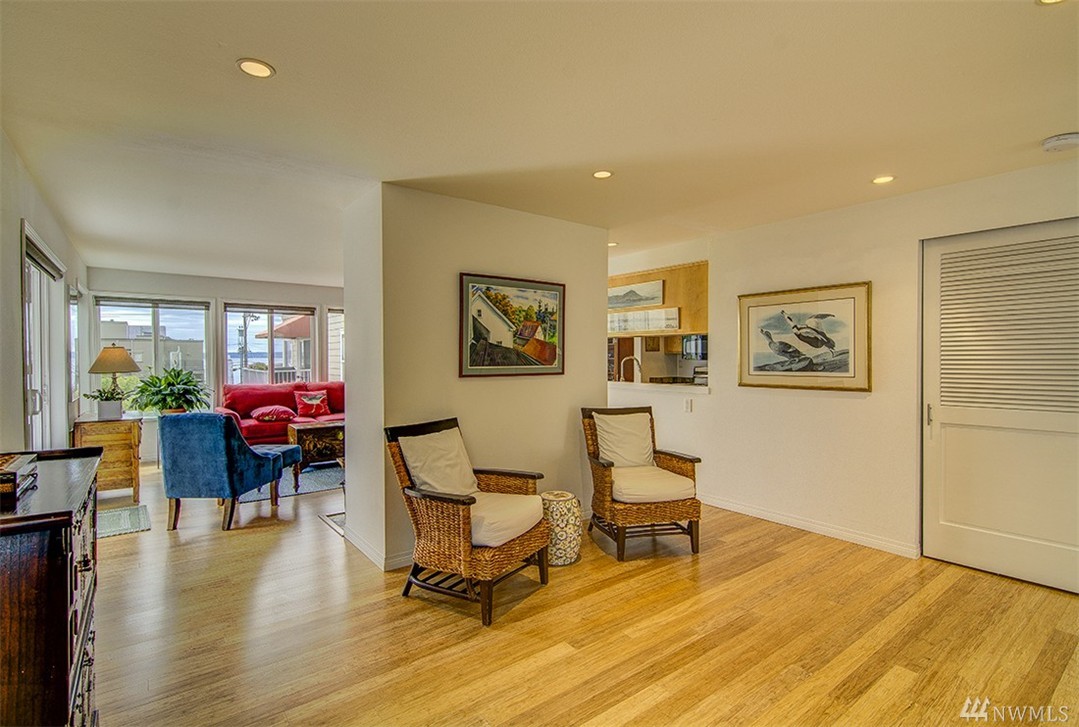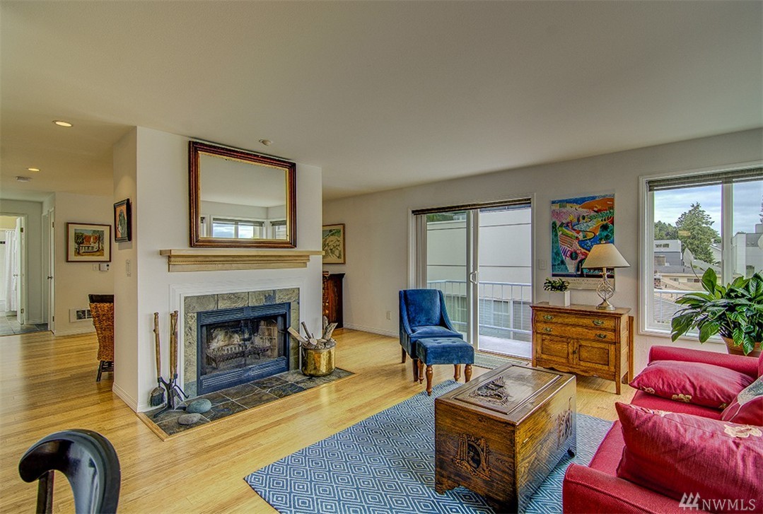 A private roof top deck is deeded with this once 2 bedroom unit (now a 1 bedroom) that has been transformed and recreated to an open space for entertaining, or a live-in home workspace. Inside you'll find lovely views of the sound and mountains, and features that include: radiant heat, slate tile & bamboo floors, skylight, fireplace, custom closets and solar blinds, updated bath & fresh paint. There's also covered parking & storage. A well maintained complex & only 1/2 block to the beach too!