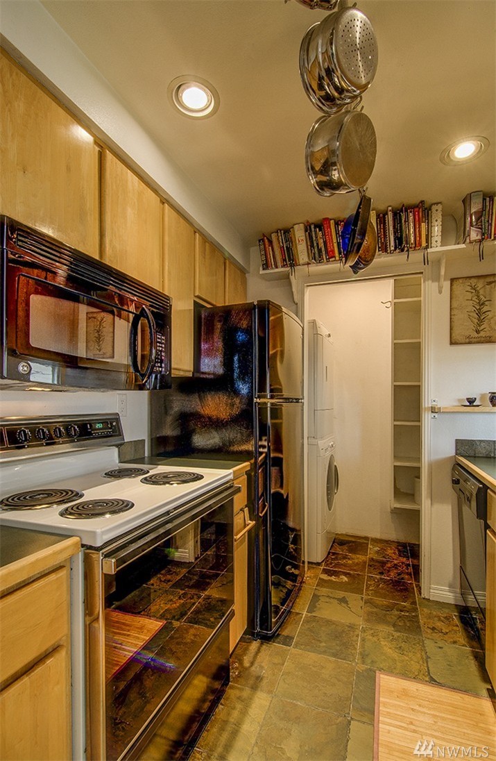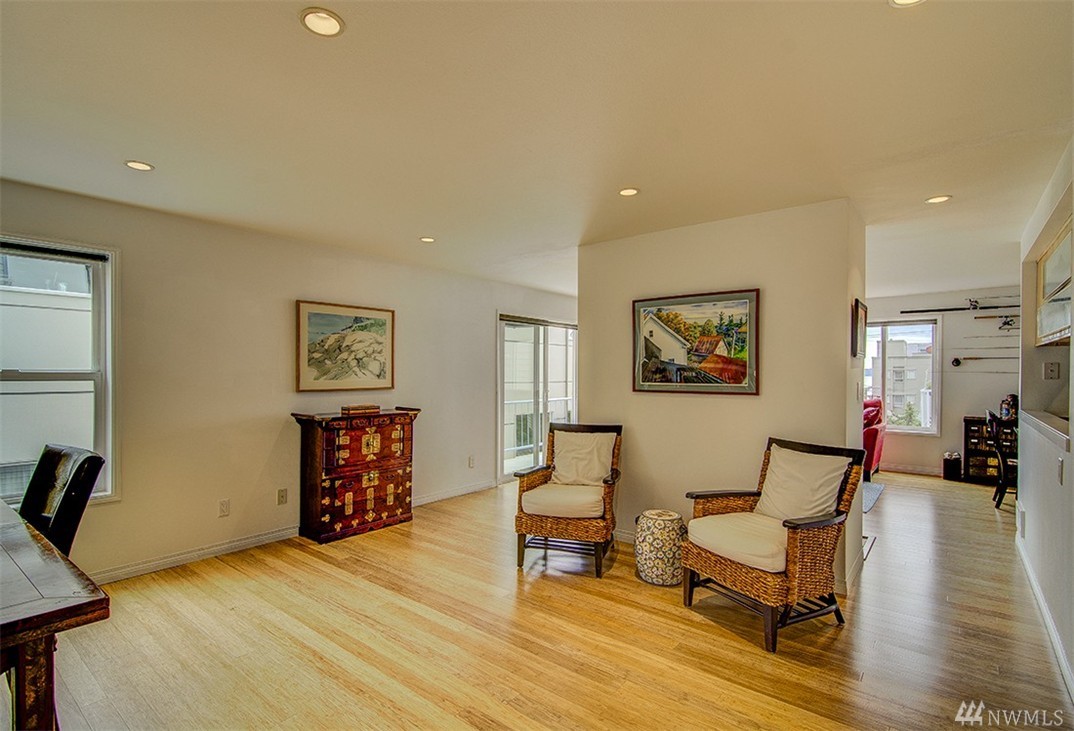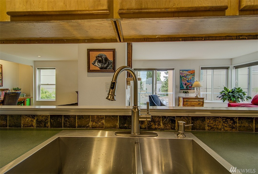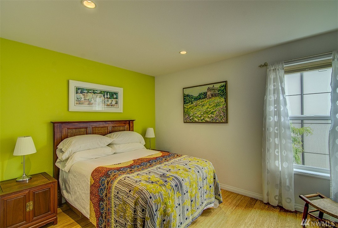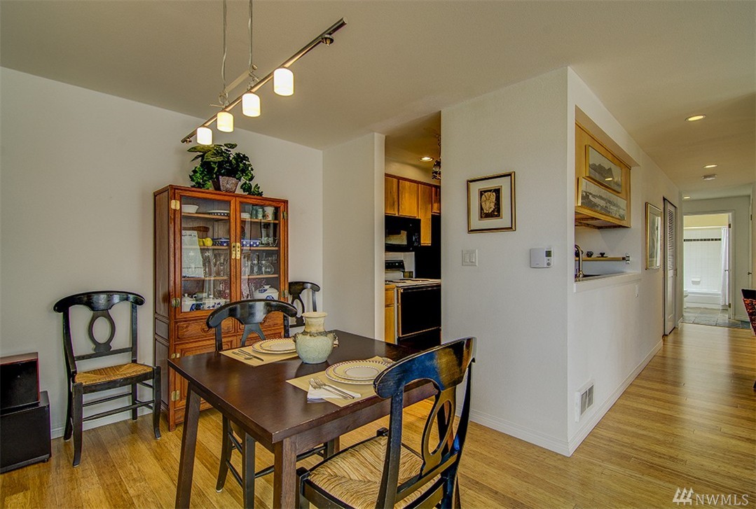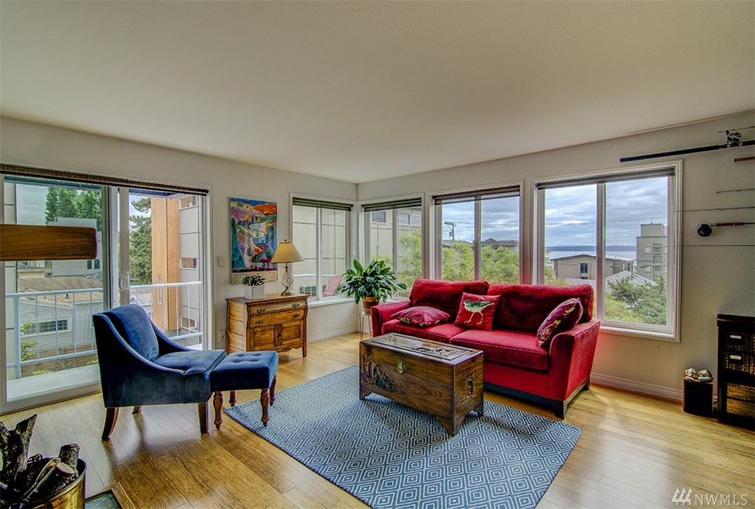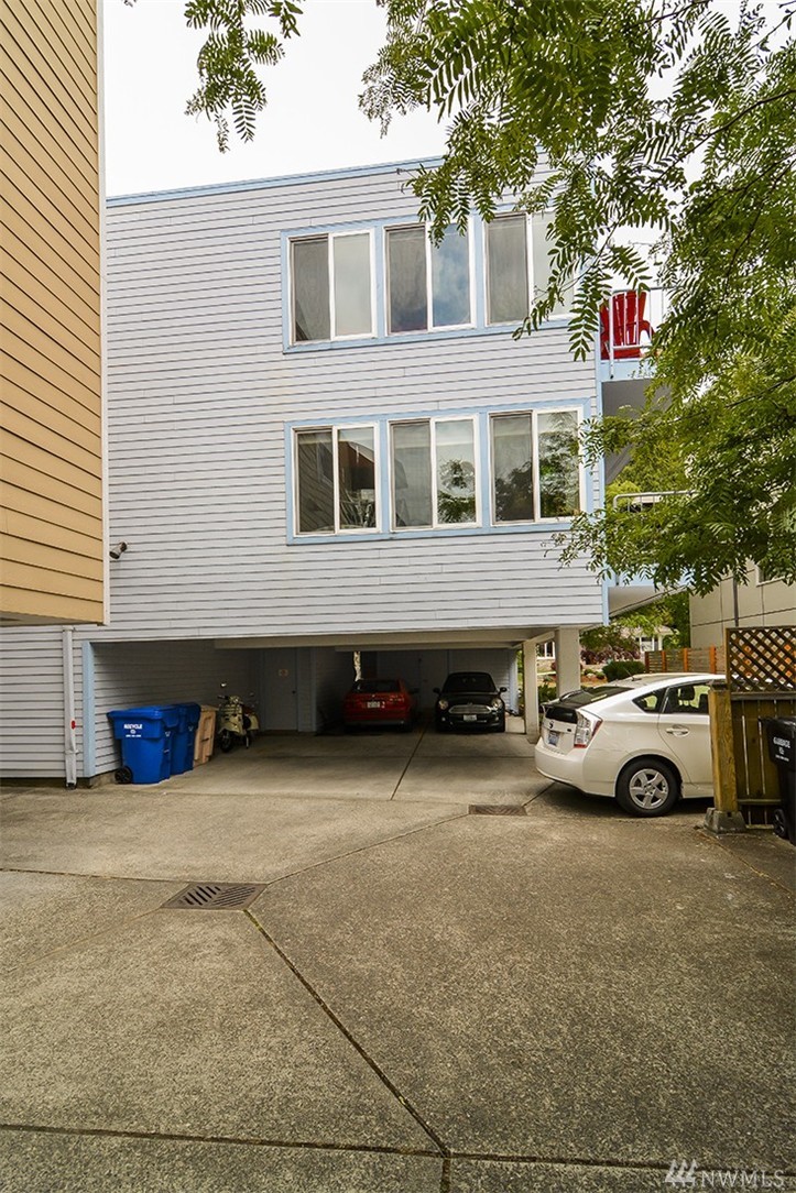 A private roof top deck is deeded with this once 2 bedroom unit (now a 1 bedroom) that has been transformed and recreated to an open space for entertaining, or a live-in home workspace. Inside you'll find lovely views of the sound and mountains, and features that include: radiant heat, slate tile & bamboo floors, skylight, fireplace, custom closets and solar blinds, updated bath & fresh paint. There's also covered parking & storage. A well maintained complex & only 1/2 block to the beach too!