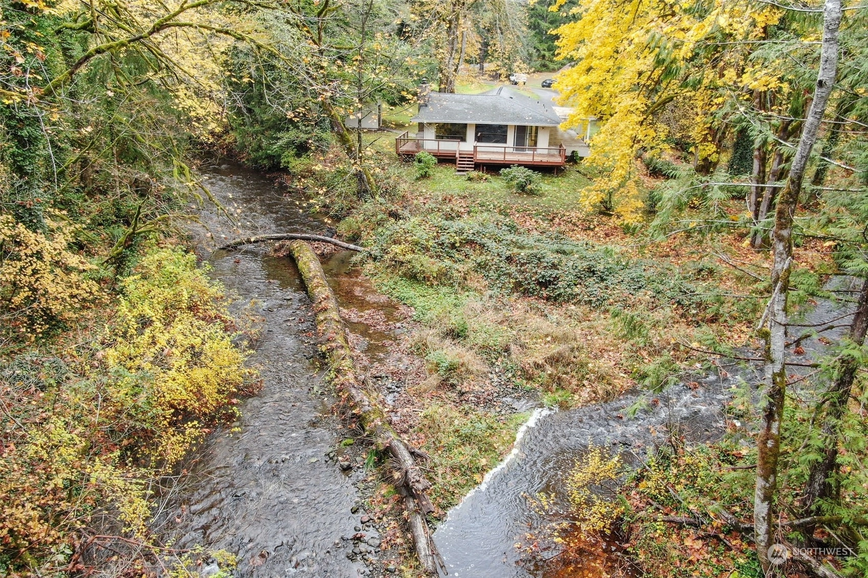 RAMBLER ONE-OF-A-KIND MUST-SEE RIVERFRONT PROPERTY! Situated on 2 parcels just over 4 acres! custom well-built rambler, home reflects a well-loved 70's look inside. AS IS Price reflecting the updates possibly preferred. large entertainment deck. The view & sounds of creek and river are amazing, surrounded by trees in a parklike paradise. New roof, partially fenced w large detached 2 bay garage w RV space & 2 hookup spots that could generate some passive income! Easy commute to nearby Quilcene & neighboring towns. Casinos. Area is well known for hiking, boating, bicycling, fishing, oysters & other shellfish. You will love the beautiful Olympic Peninsula and its recreational paradise!