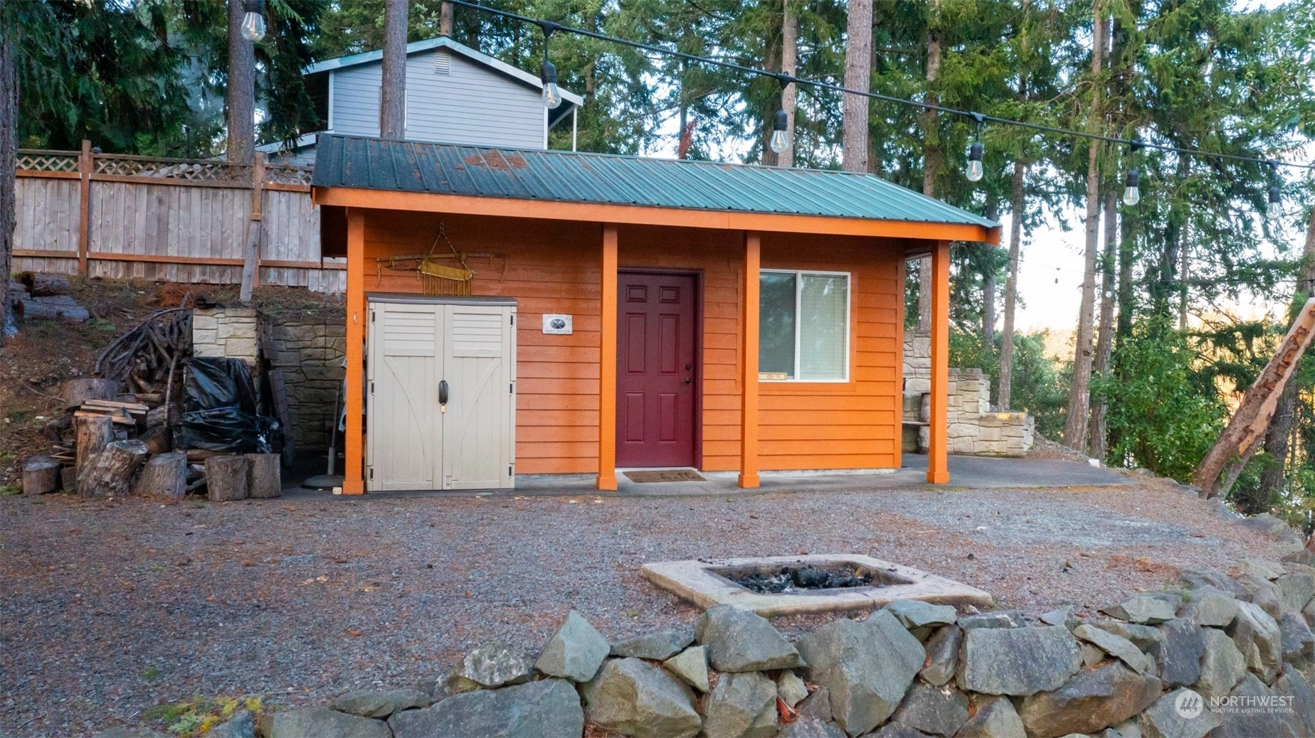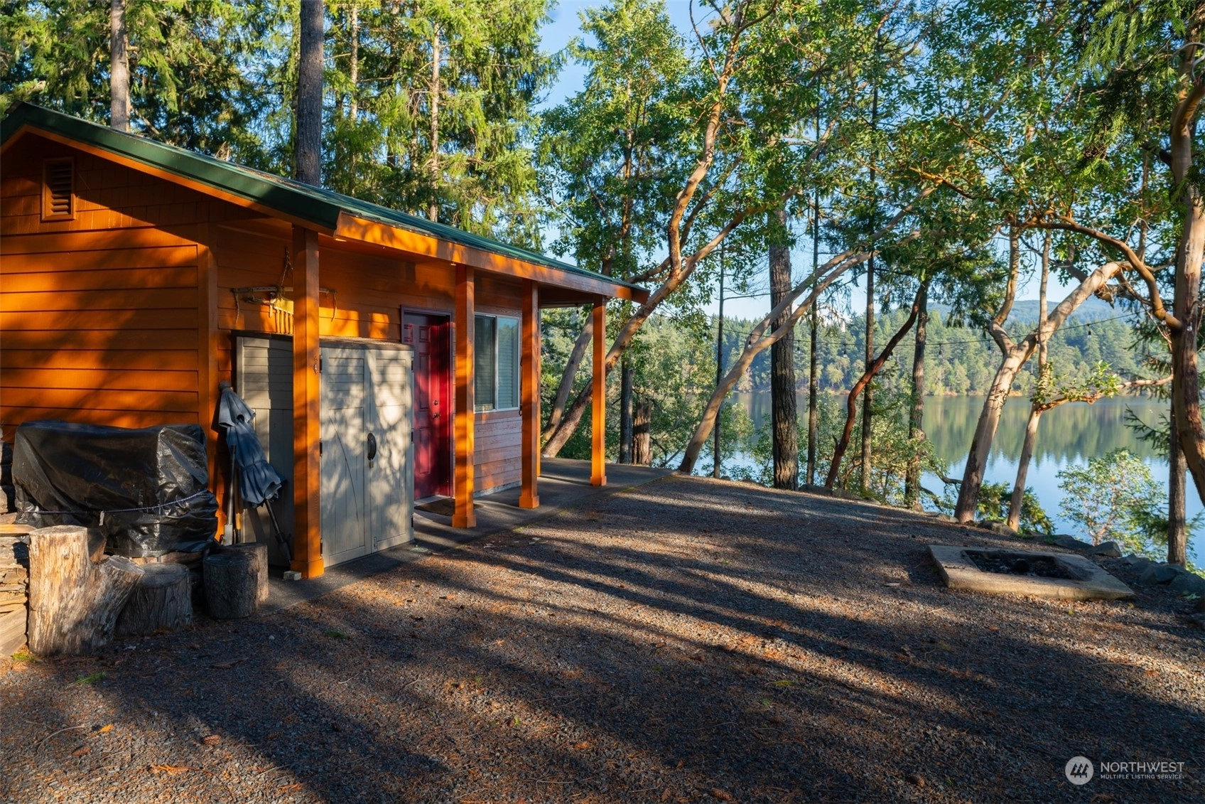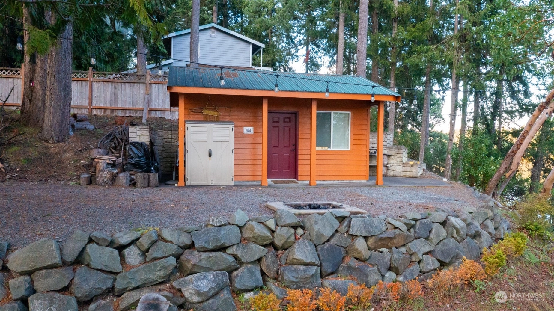 Seize this unique treasure in a beautiful gated community with breathtaking views of Mt. Rainier, Clear Lake, and surrounding hills. Enjoy a serene property featuring an RV space with hook-ups, shed, covered front porch, patio, metal roof, tiled floors, and cedar ceilings. Relax by the firepit in this peaceful cul-de-sac and explore private lakes and trails. Build your dream home or rental house with installed septic. Community amenities include a hot tub, swimming pool, pickleball courts, waterfront parks, and more.