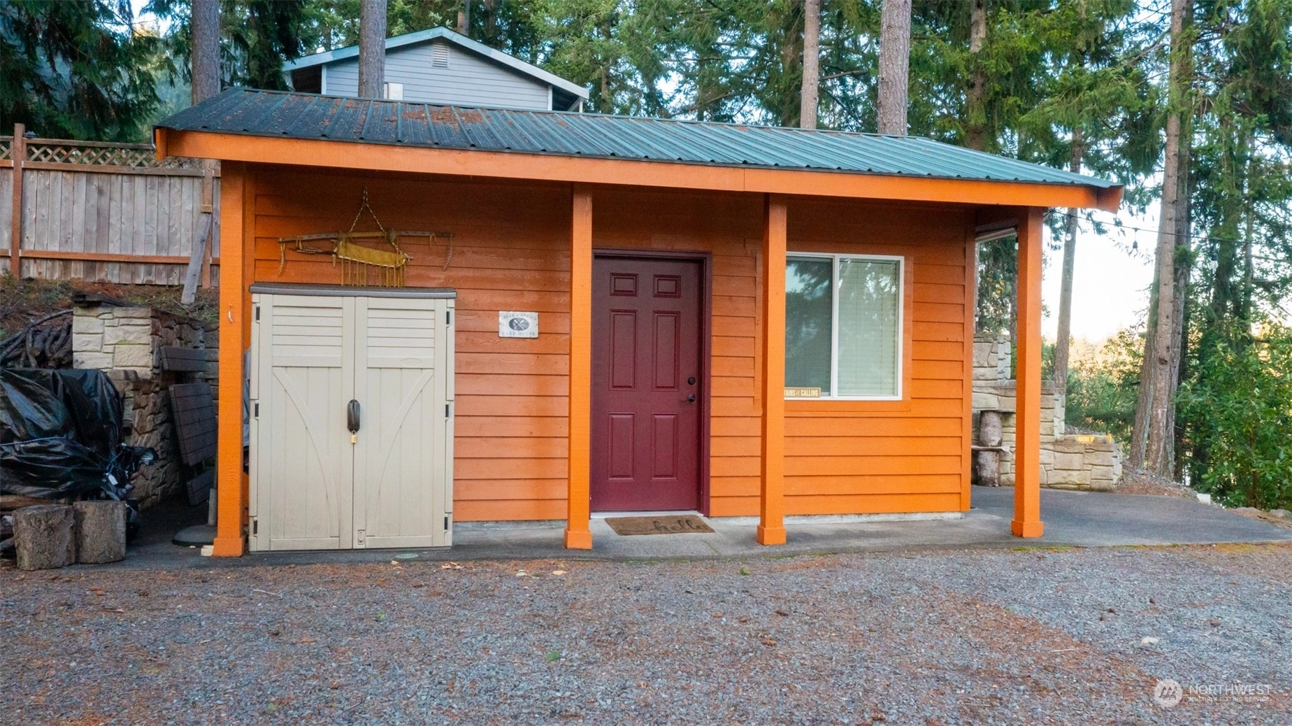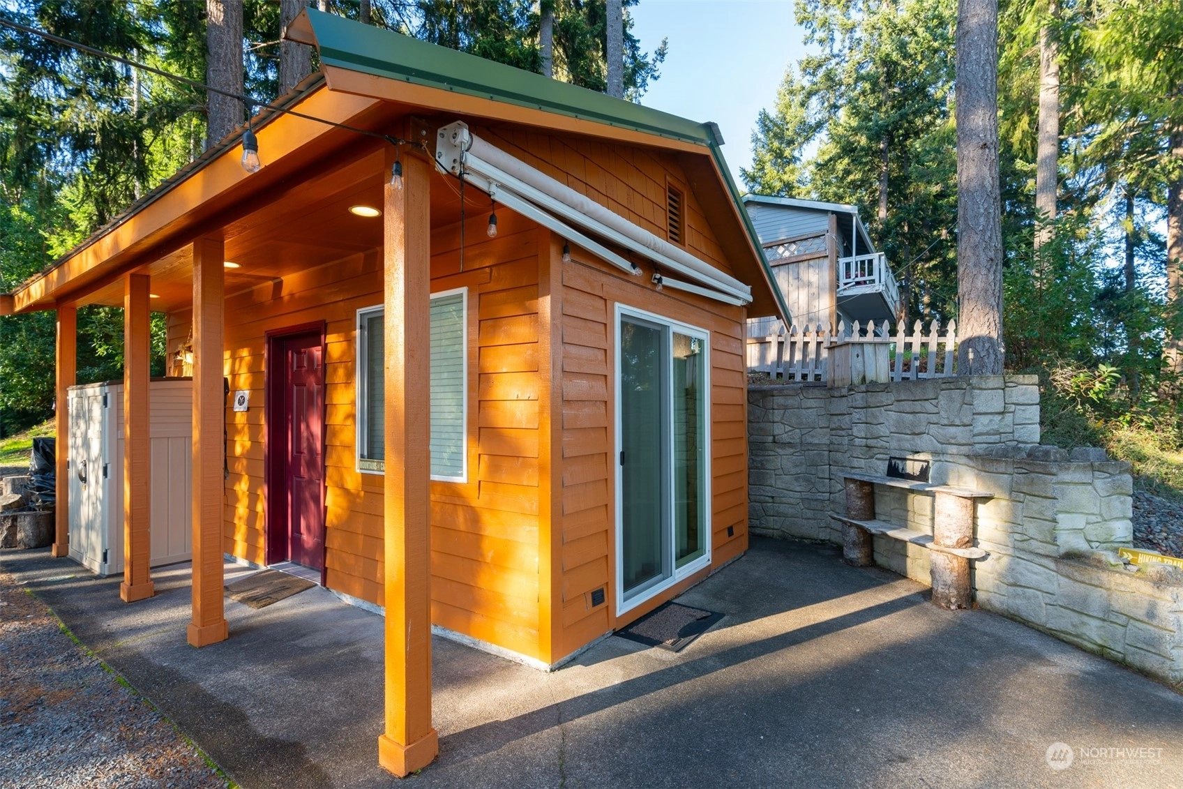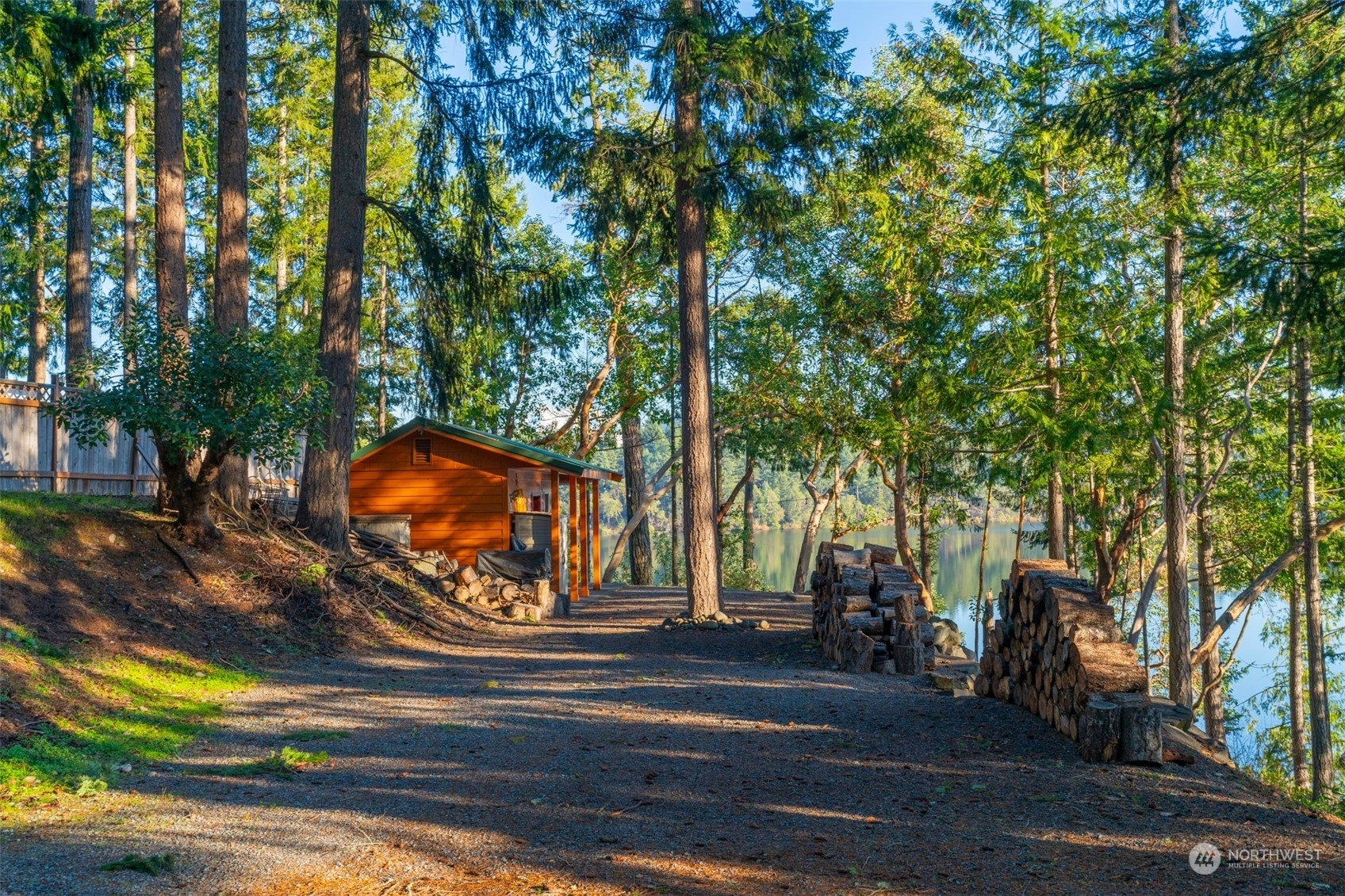 Seize this unique treasure in a beautiful gated community with breathtaking views of Mt. Rainier, Clear Lake, and surrounding hills. Enjoy a serene property featuring an RV space with hook-ups, shed, covered front porch, patio, metal roof, tiled floors, and cedar ceilings. Relax by the firepit in this peaceful cul-de-sac and explore private lakes and trails. Build your dream home or rental house with installed septic. Community amenities include a hot tub, swimming pool, pickleball courts, waterfront parks, and more.