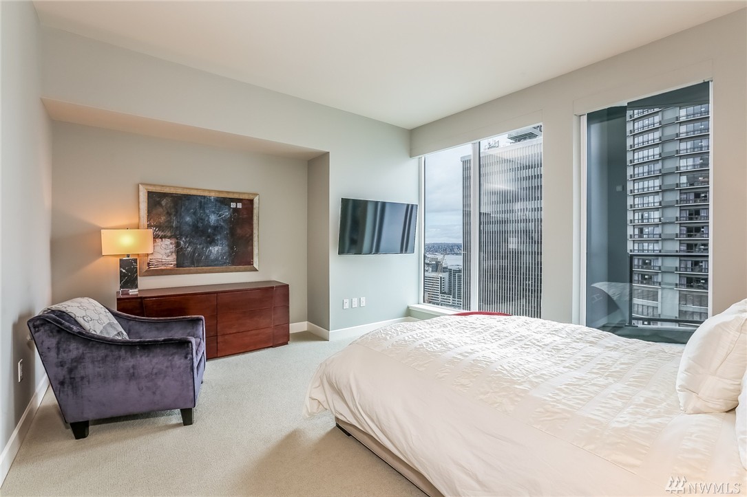 Welcome to Escala, Seattle's iconic and coveted high rise condominium. This is one of the larger units in building with 1878 sq. feet of luxury. City lights that dazzle nightly! This home has barely been used since new and it shows. Bright open floor plan with bedroom suites at opposite ends of unit for privacy. Wrap around deck sweeps the exterior. Private foyer that is accessed directly from elevator. Great amenities and location are unbeatable for downtown Seattle! Available fully furnished.