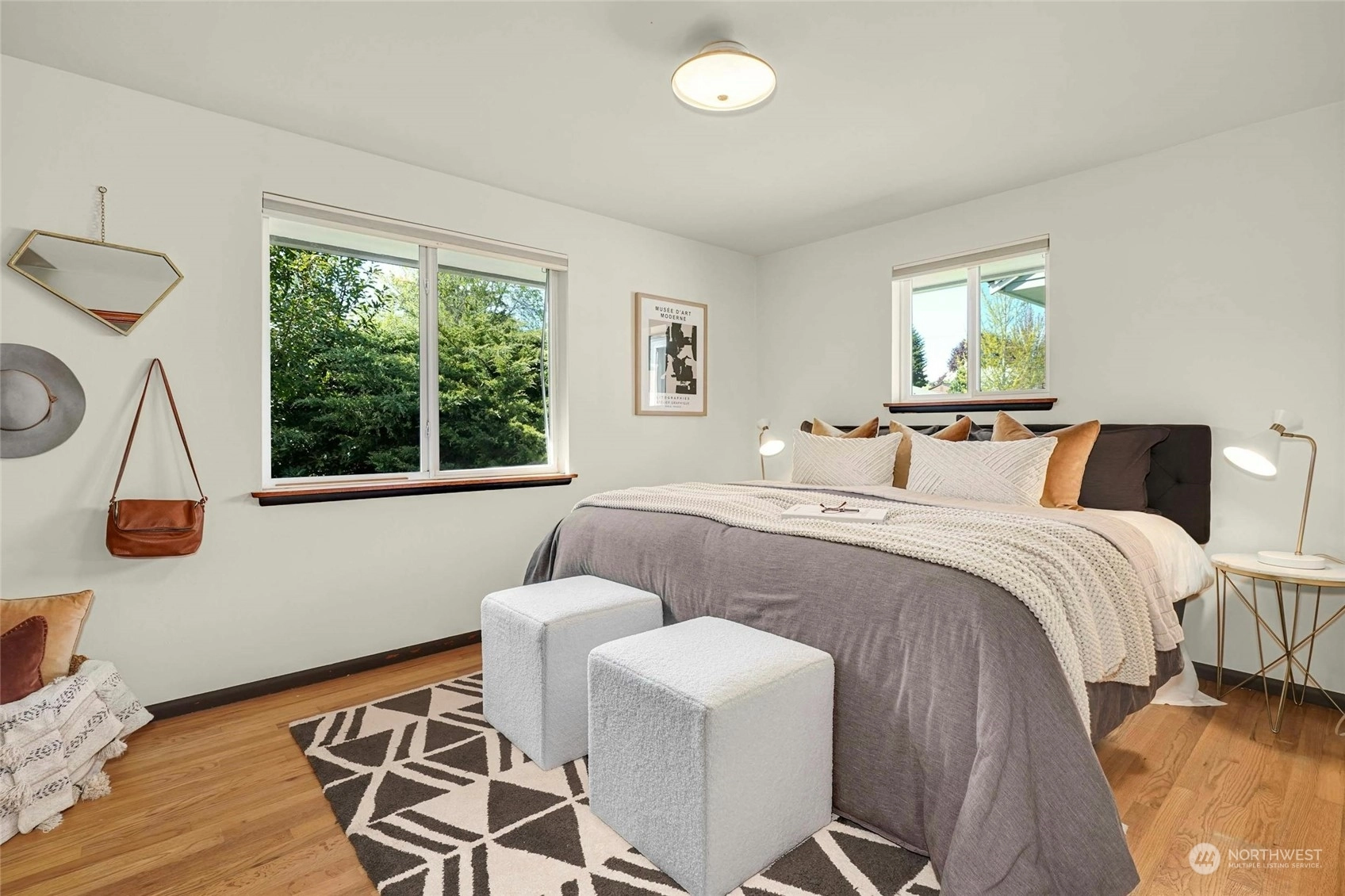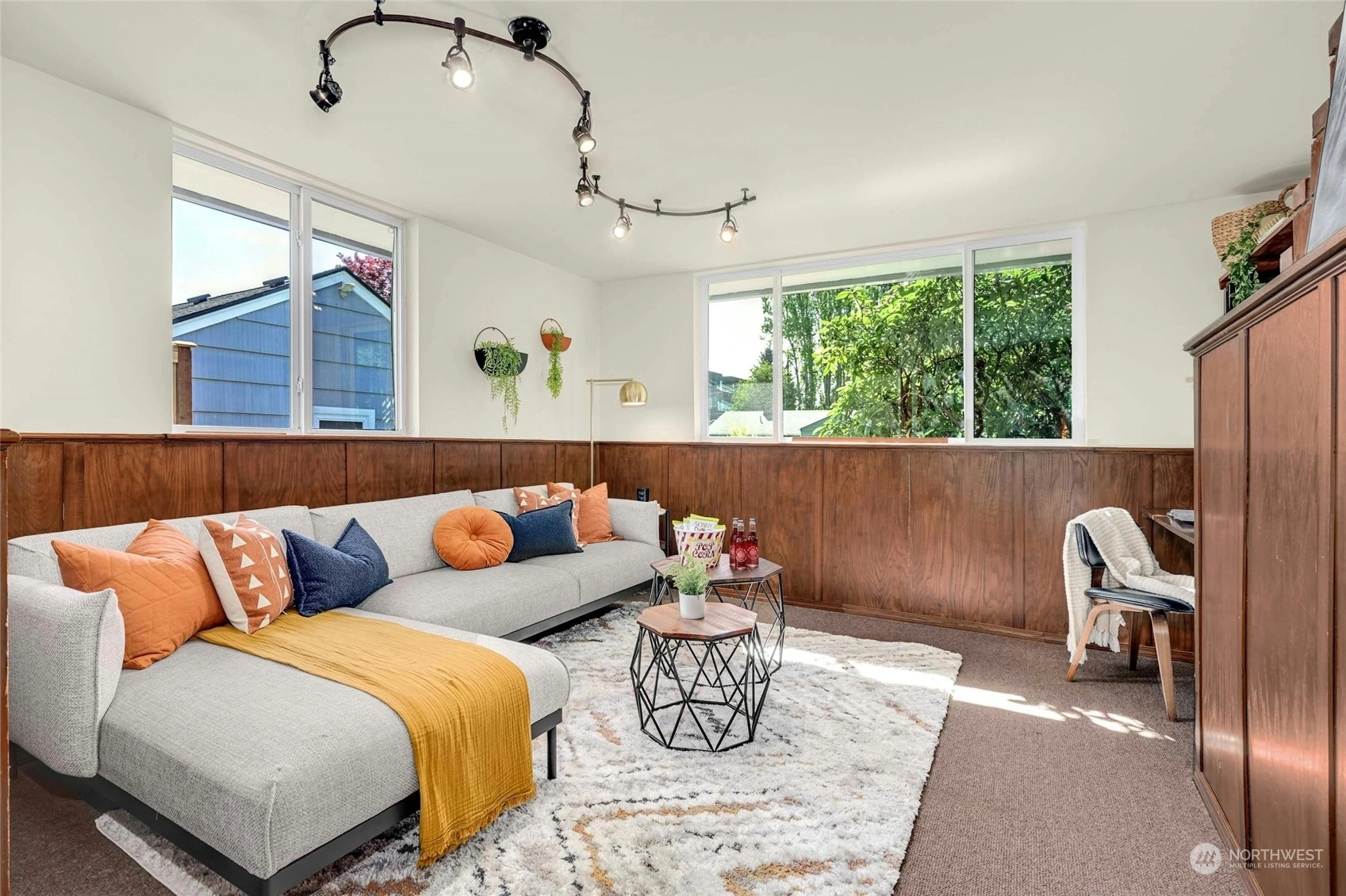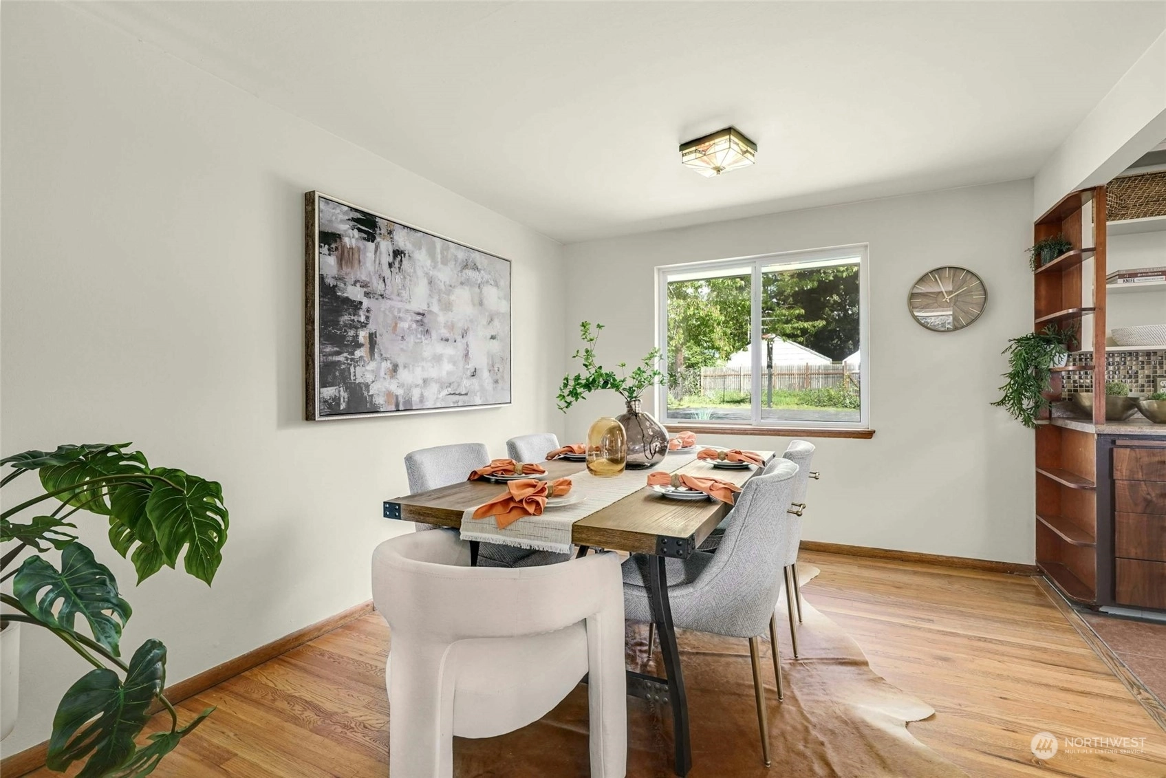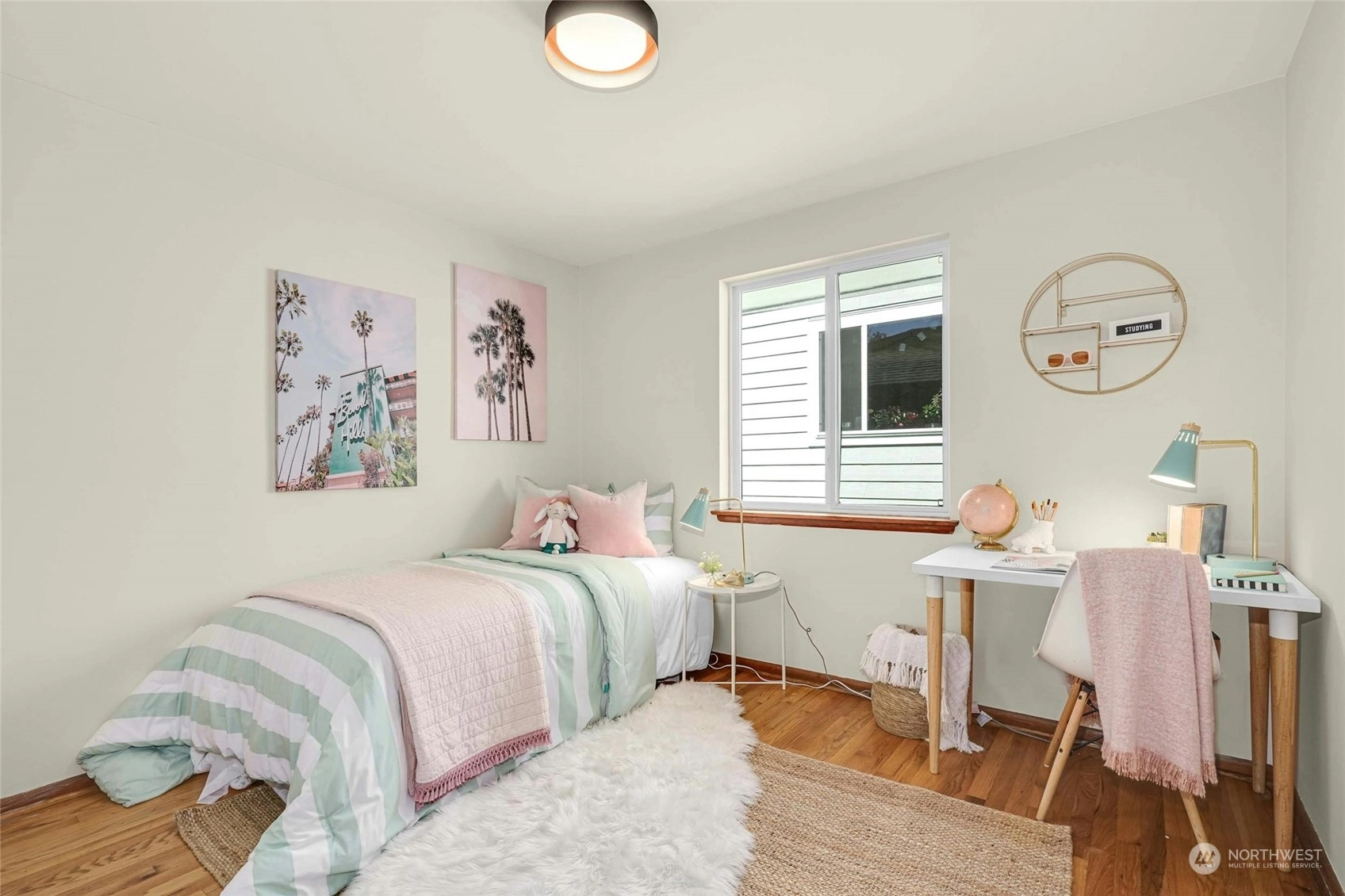This sweet 1950's era home is nestled in a 7700 square-foot lot, where possibilities for awe and activity are endless. Some say the heart of this home are the grounds; its huge fenced backyard, garden parties, majestic cherry tree, treehouse; bespoke basketball court; detached garage; RainWise garden; & heirloom roses. See it all from the kitchen window. Others enjoy an efficient layout distinguishing 3 bedrooms from the living areas -kitchen, dining, living, and the recreation/laundry room. There's the neighborhood, where parks, beaches, buses, schools, shopping and restaurants are a short stride or drive away. Updated bathroom, windows, hot water heater & fresh paint throughout. Original hardwoods, doors, hardware, and built-ins. Dreamy.