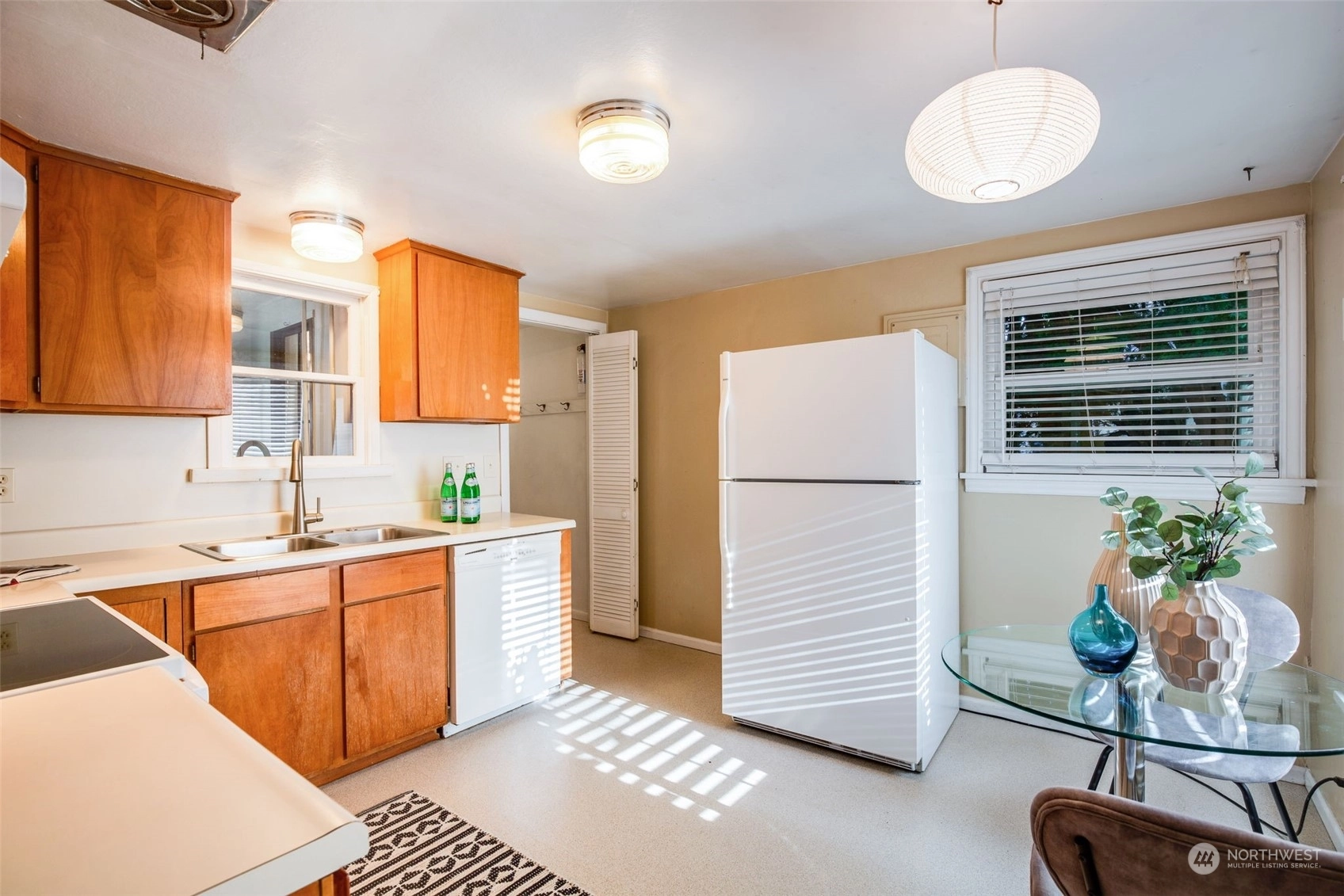 The quintessential mid century Cape Cod, complete with white picket fence and cedar siding, beckons you to settle into this ideal NE Seattle location. Tucked on a quiet dead-end street in Meadowbrook, just down the street from the soon-to-be-completed brand new John Rogers ES. Lovingly cared-for with newer windows, roof, interior and exterior paint and cozy radiant heat. Convenient mud room and shop on the back of the house for all of your craft projects and gear storage. Huge, flat 7800 sq ft lot provides plenty of space for outdoor play, relaxation, possible DADU (buyer to verify). All of this and a large, detached garage, close to Meadowbrook Park and Community Center, the Burke Gilman Trail and buses to UW and Downtown.