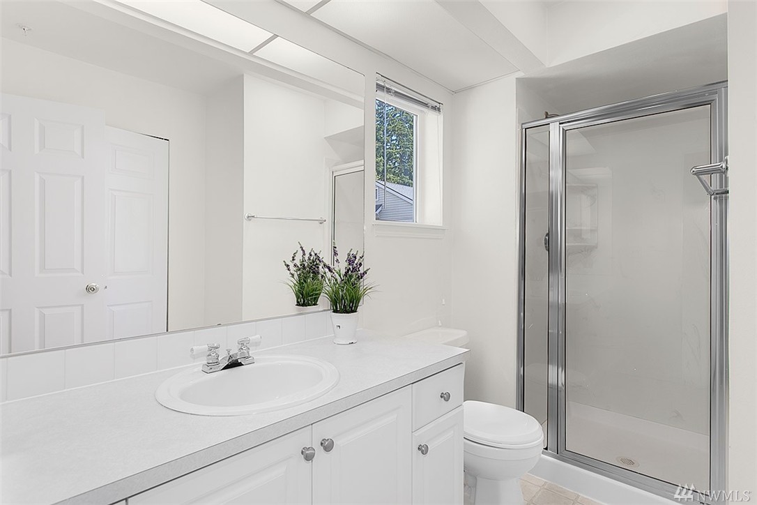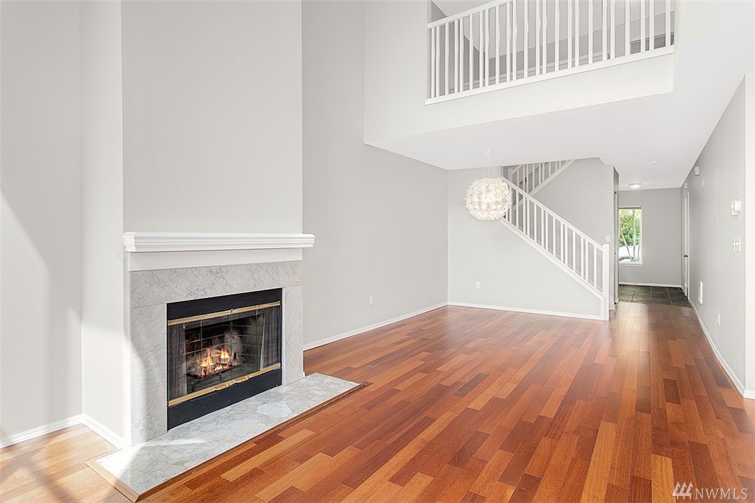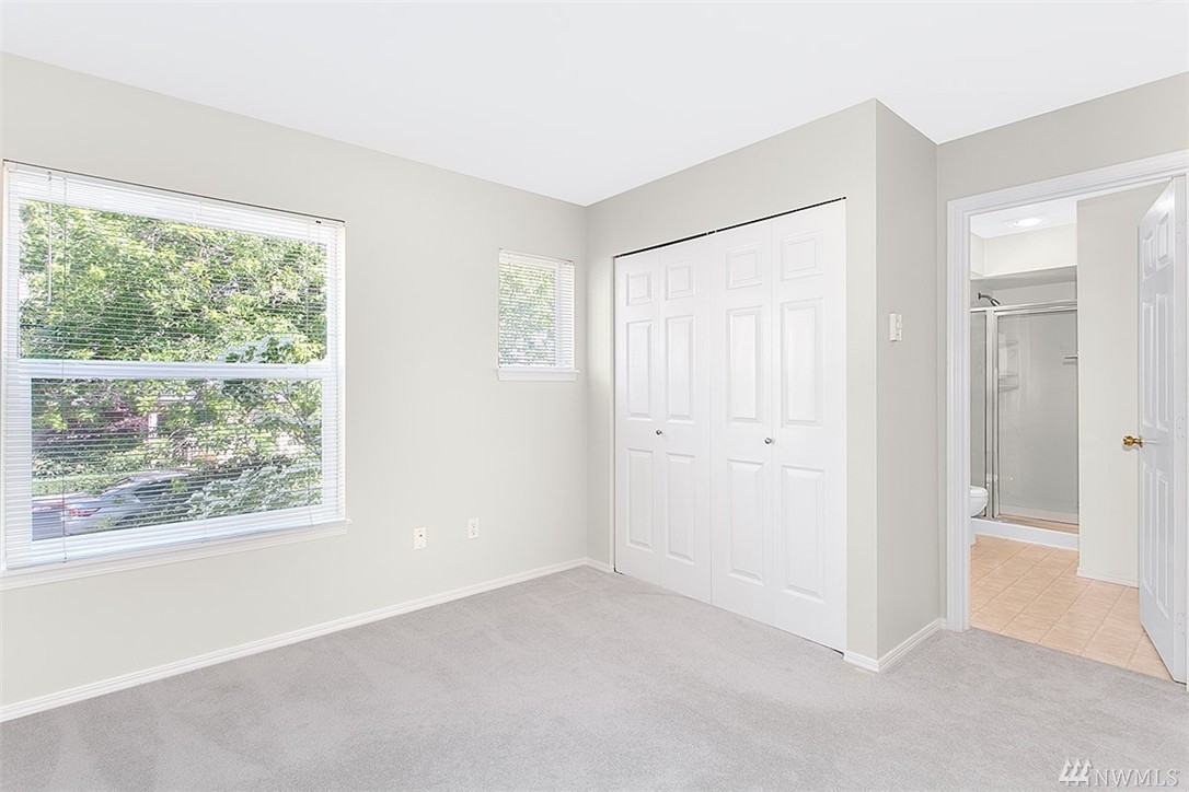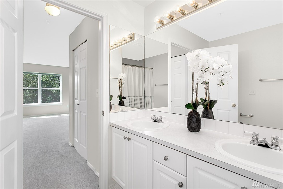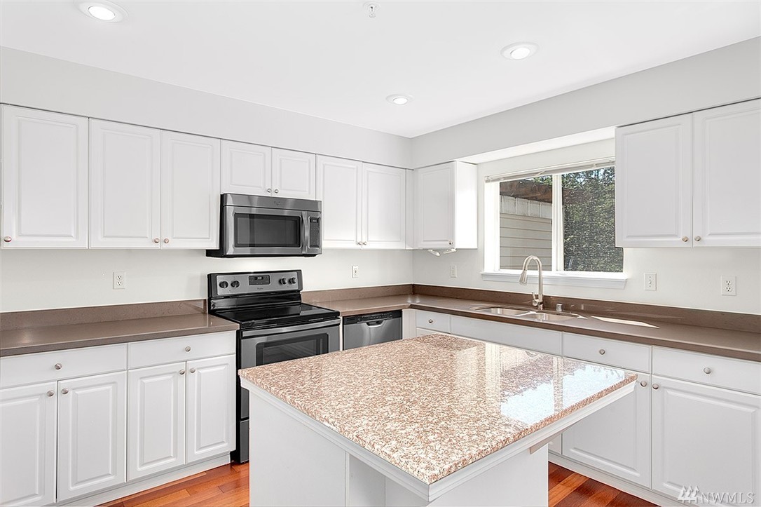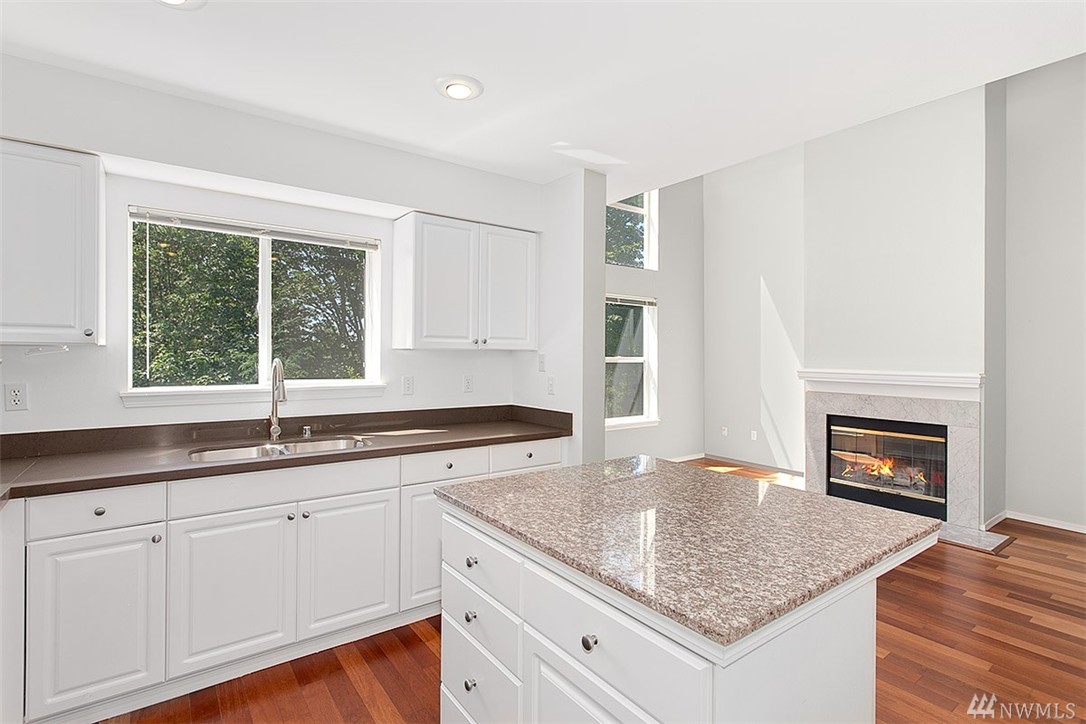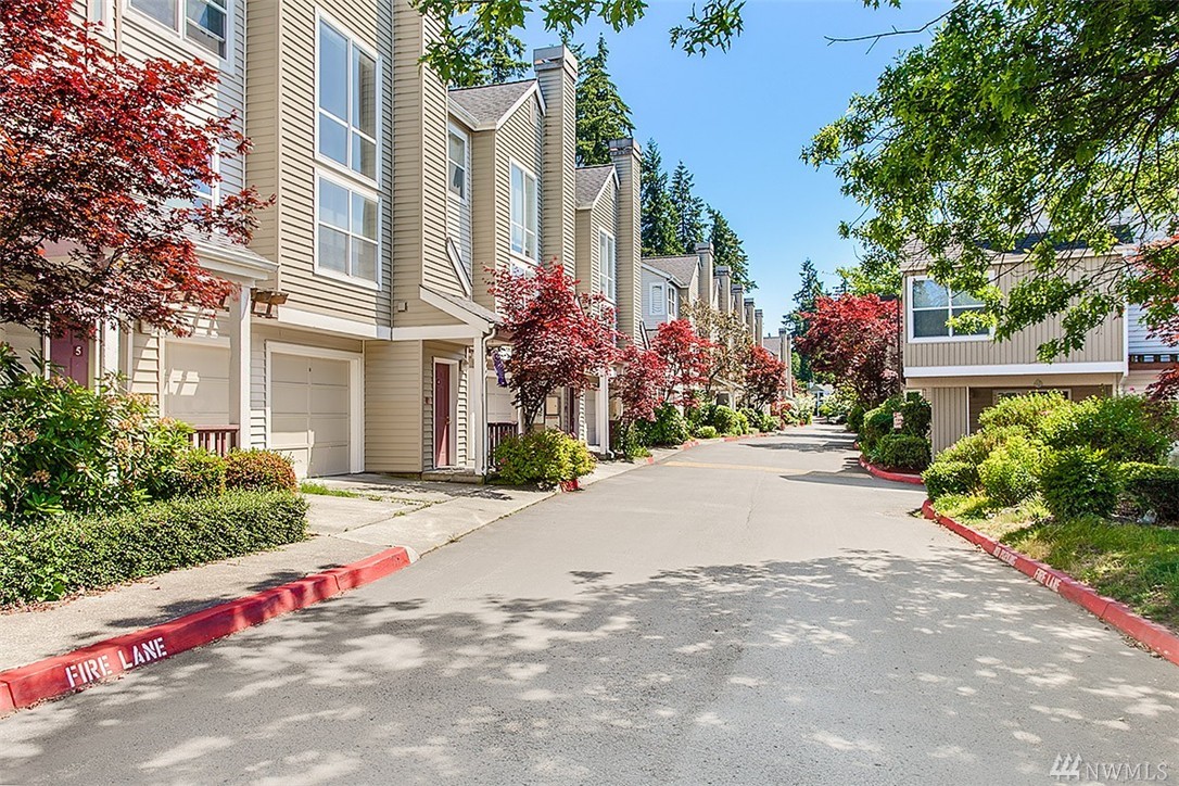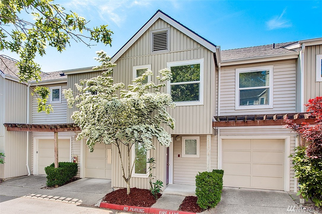 Charming & remodeled Sunset Ridge townhouse! Find contemporary styling w/cherry hardwood floors & fresh interior paint. Updated kitchen offers granite topped island & ample quartz counters. Floor to ceiling windows fill the open concept main floor with natural light as well as a view of the greenbelt. Upper floor features 2 master bedrooms with en suites & loft space perfect for work or play. Convenient location, backing to Bellevue College & minutes to I90/405. Attached garage + no rental cap!