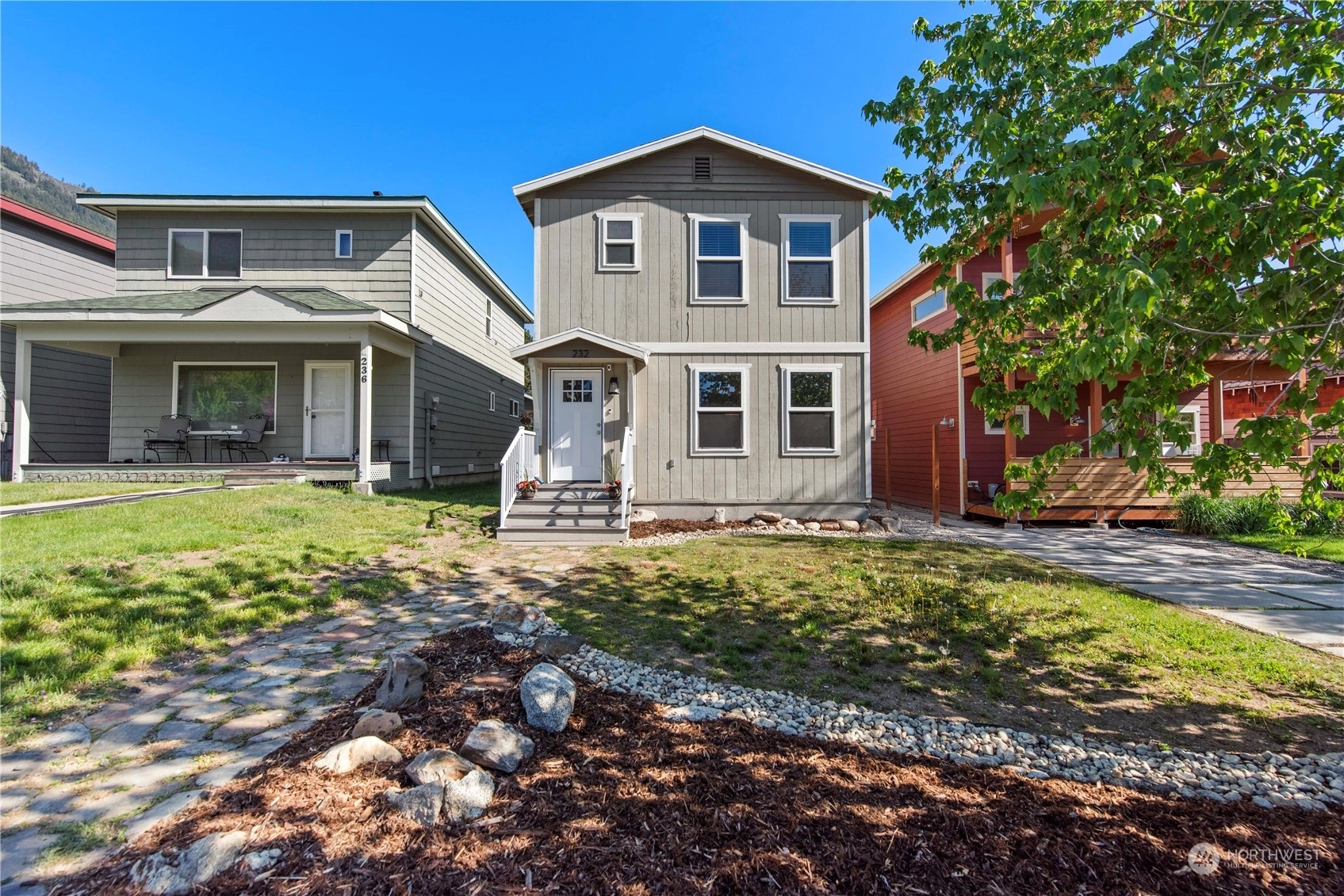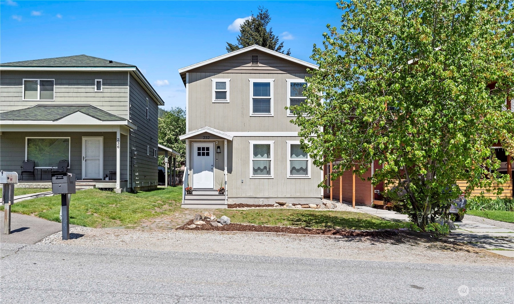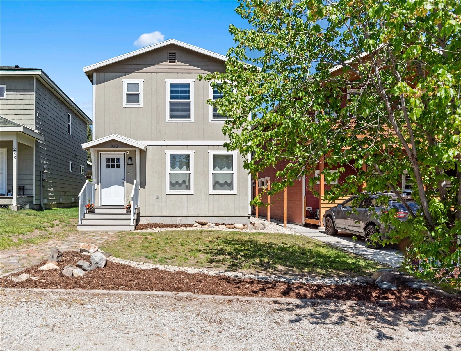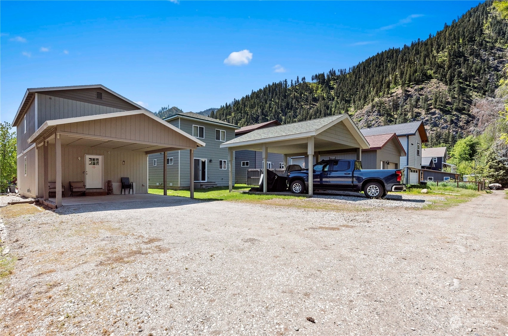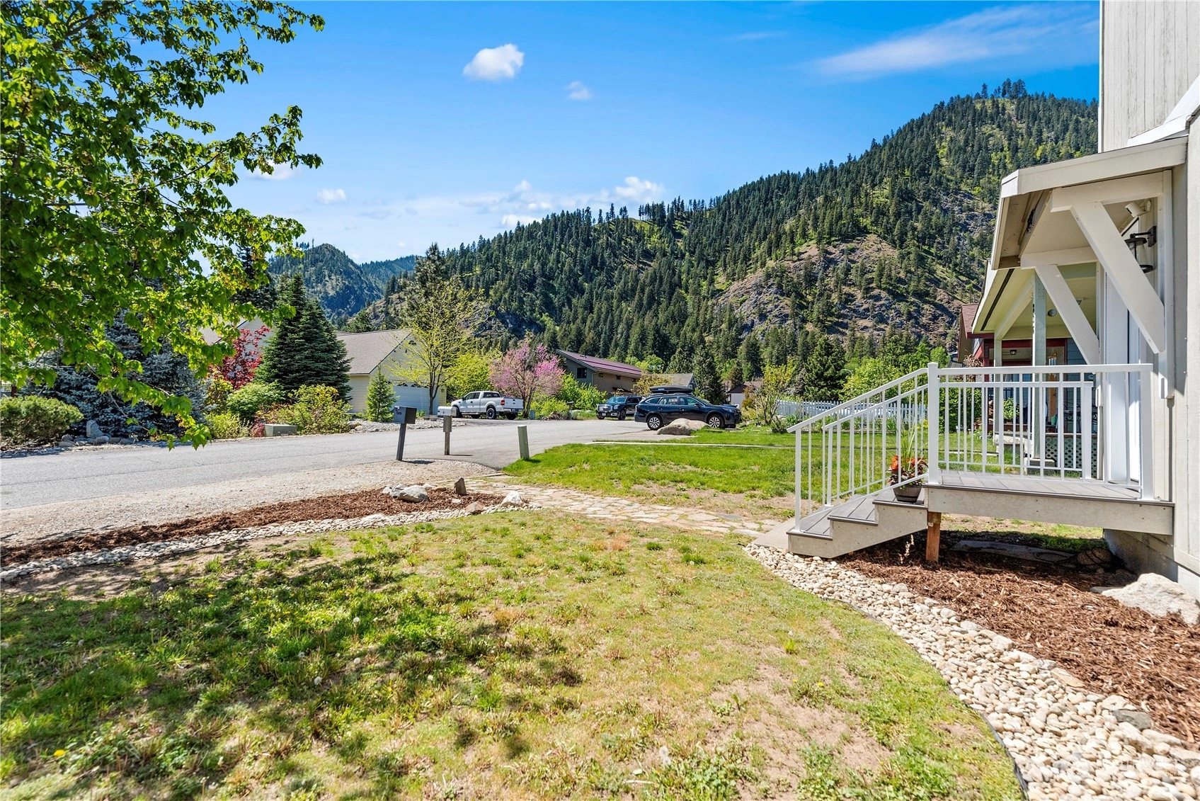 Charming & Central: Discover this 1,600 sq ft 3 bed/2.5 bath home merely 3 blocks from downtown Leavenworth. Enjoy the inviting ambiance of the main level, featuring Lifeproof luxury vinyl tile, a luminous living room offering scenic vistas, and a kitchen adorned with stunning granite countertops & stainless-steel appliances. The dining room seamlessly connects to the living area. A convenient half bath with laundry facilities is also on this level. Upstairs, find three generously sized bedrooms; the primary bedroom offers picturesque views of Tumwater Canyon and primary bath, while the additional rooms share a "Jack-Jill" bath. A rear carport with alley access and a 30 amp RV plug on the side add to the convenience of this in-town gem.