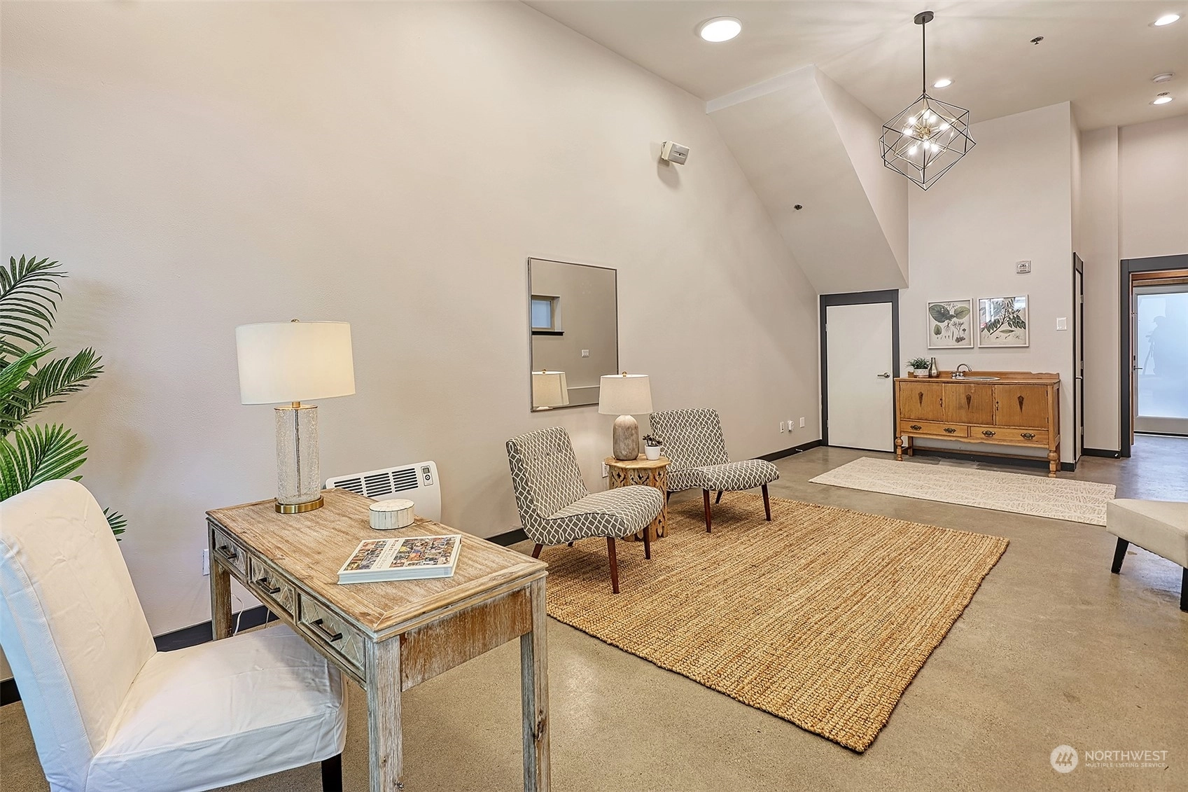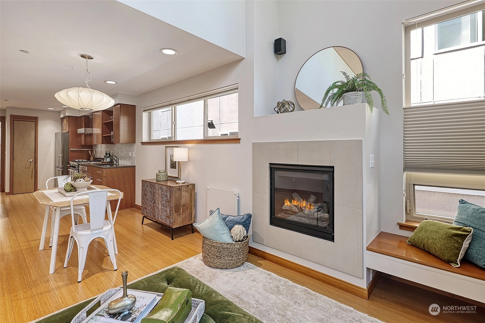 Vibrant Morgan Junction location. Modern Work/Live townhome bursting w/possibilities! Sound & Mtn views from your spacious rooftop deck. Light-filled 1st level features flexible space – perfect for a commercial venture, guest suite or home office – complete w/separate California Ave SW entrance. 2nd floor w/tons of floor to ceiling windows, living rm w/gas fireplace, dining area, bdrm & half bath. Bertazzoni gas range, well-designed kitchen w/lots of storage & pantry. Light-soaked loft primary suite w/ walk-in closet, a full bath & stacking washer/dryer, plus seamless access to your private rooftop oasis. Modern upgrades: radiant heat, new blinds, designer lighting, tankless water heater. Deeded parking space, gated side yard & much more!
