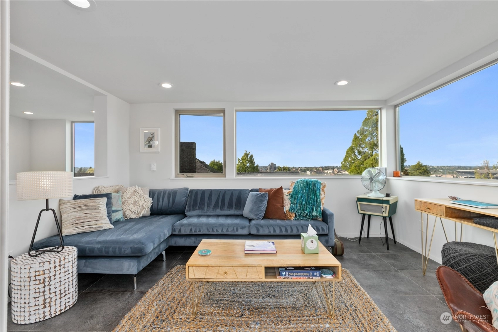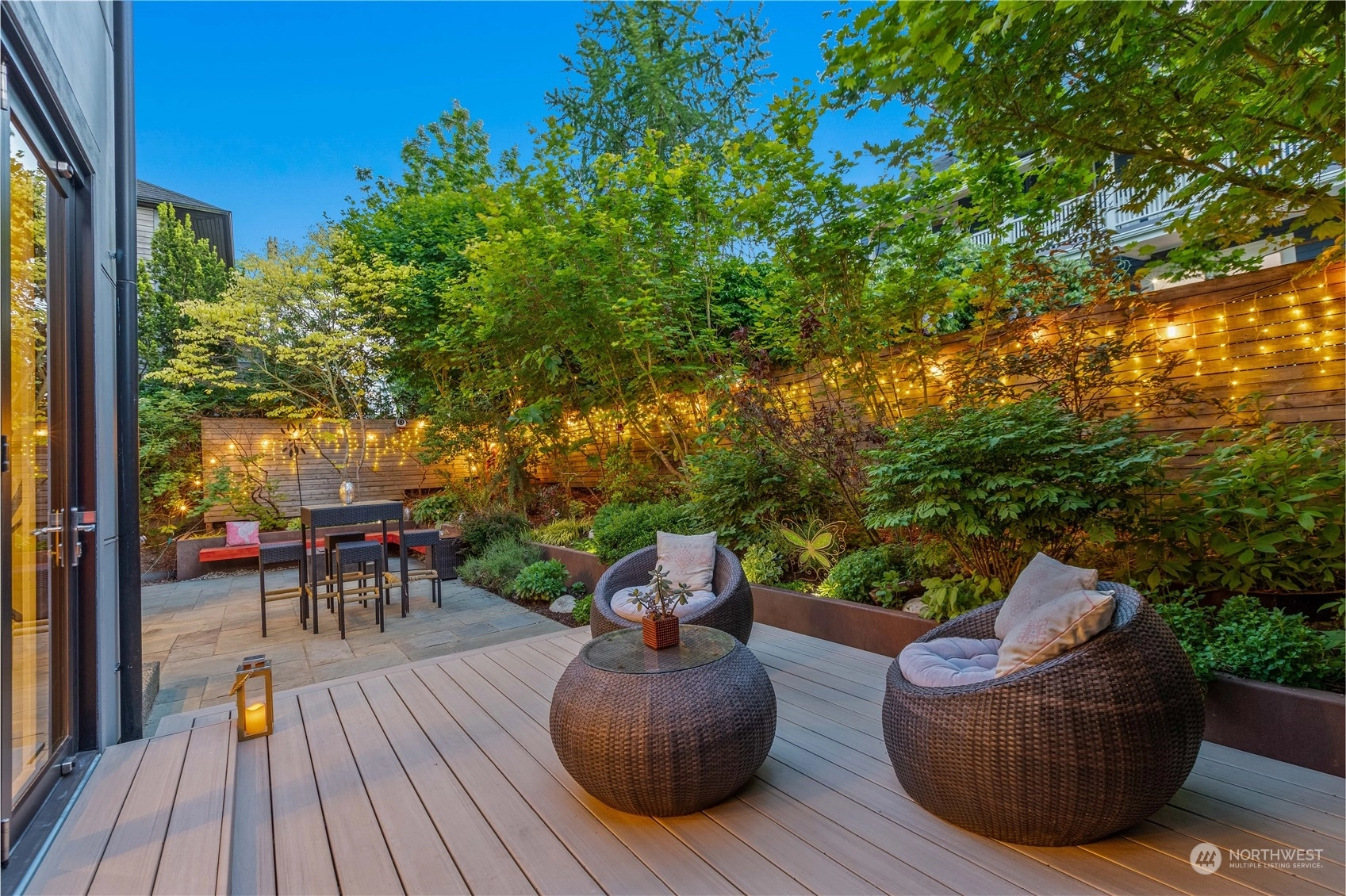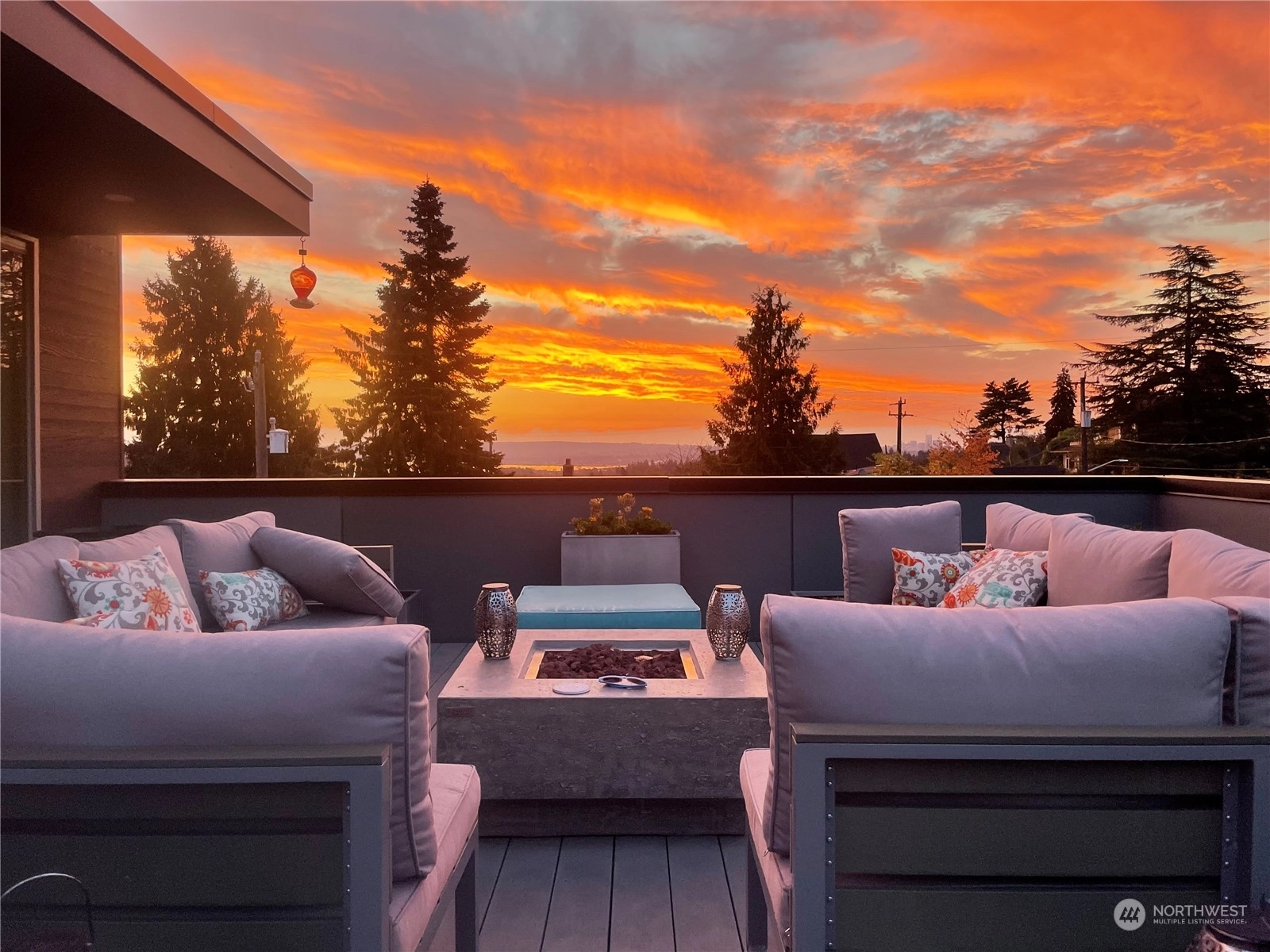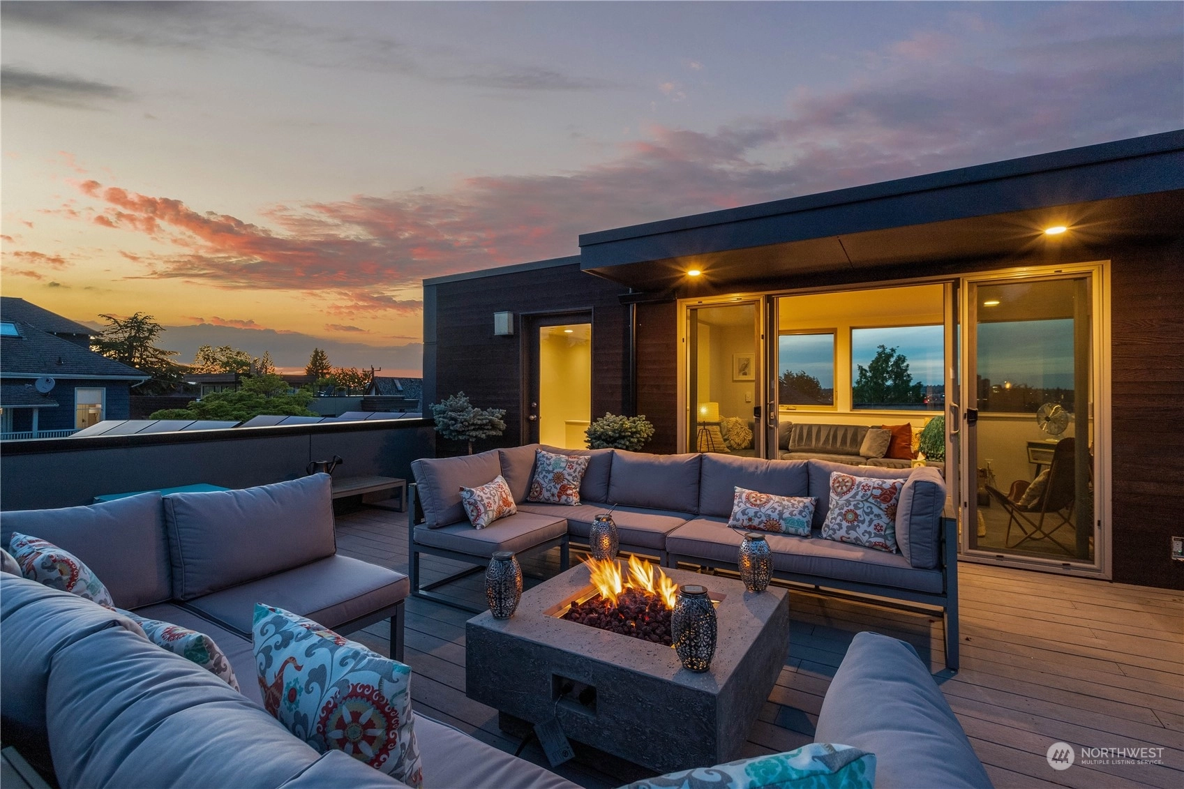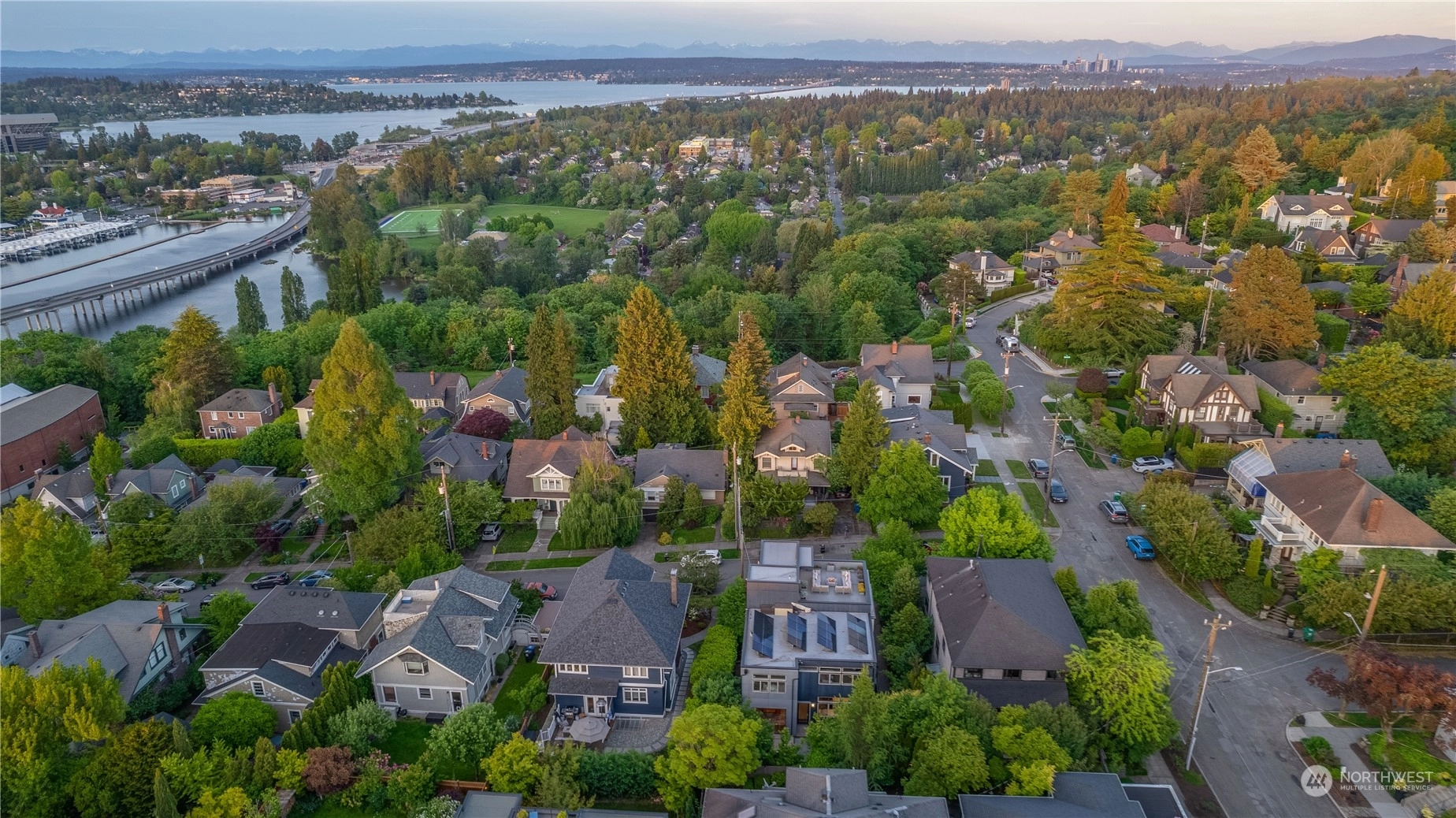 Coveted North Capitol Hill, Urban Oasis. Modern luxury meets convenience and views. Easy access to I-5, 520, Downtown or Eastside take your pick. Bars and restaurants minutes away. Seattle Prep, Bertschi Elementary and TOPS at Seward K-8. No winter blues here; picture windows fill the house with light all year long. The open-plan main floor makes entertaining a dream, brand new deck and folding wall of glass brings the outside in. 3 spacious bedrooms on 2nd floor provide room for everyone. Generous roof deck has cozy studio with amazing views, UW stadium, Lake WA, Cascades. 4th bedroom and Family room on the two-car garage level serves as an extra office, home theater or gym. Solar panels pay for roughly half of electrical needs.