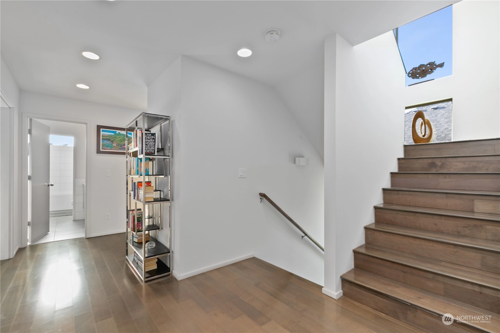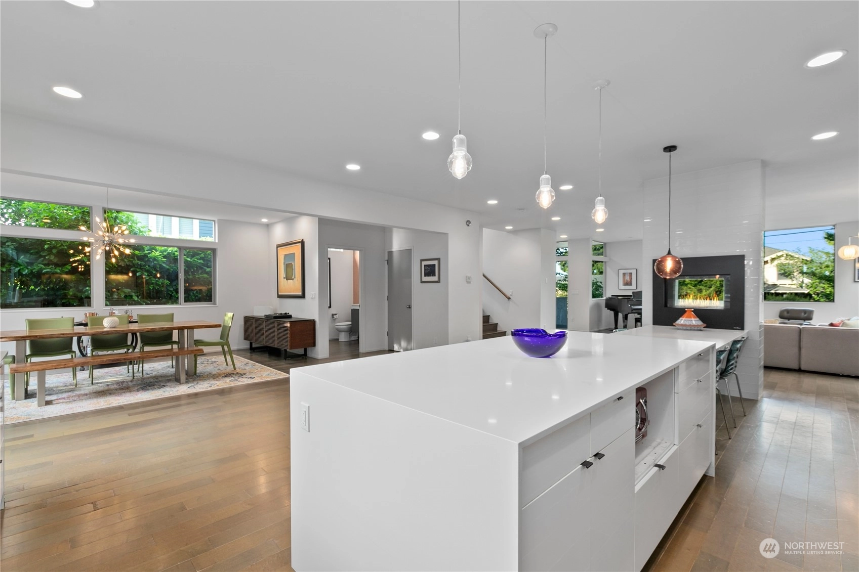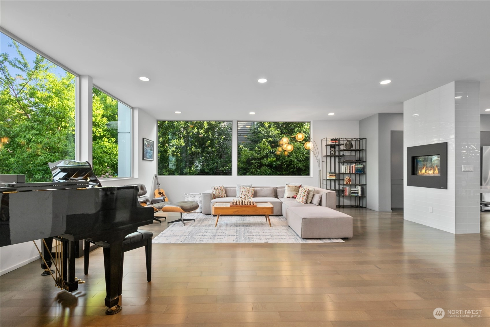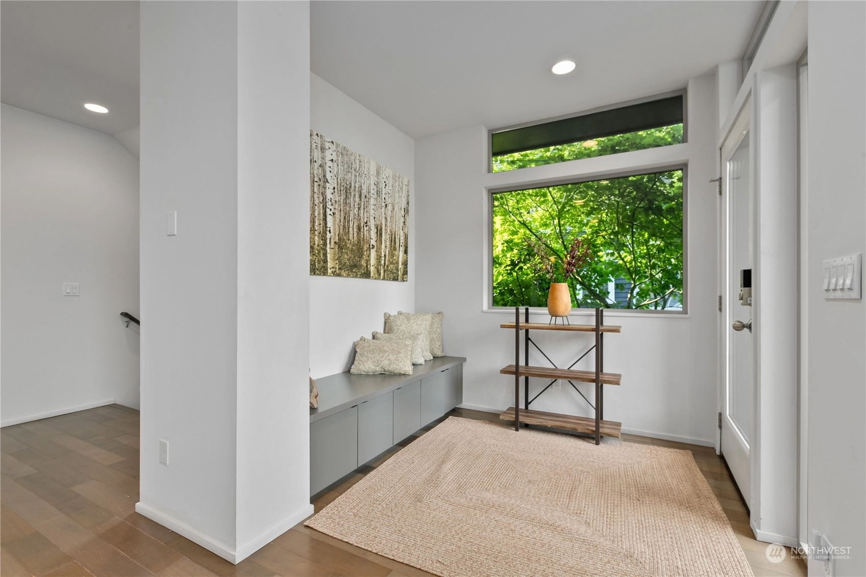 Coveted North Capitol Hill, Urban Oasis. Modern luxury meets convenience and views. Easy access to I-5, 520, Downtown or Eastside take your pick. Bars and restaurants minutes away. Seattle Prep, Bertschi Elementary and TOPS at Seward K-8. No winter blues here; picture windows fill the house with light all year long. The open-plan main floor makes entertaining a dream, brand new deck and folding wall of glass brings the outside in. 3 spacious bedrooms on 2nd floor provide room for everyone. Generous roof deck has cozy studio with amazing views, UW stadium, Lake WA, Cascades. 4th bedroom and Family room on the two-car garage level serves as an extra office, home theater or gym. Solar panels pay for roughly half of electrical needs.