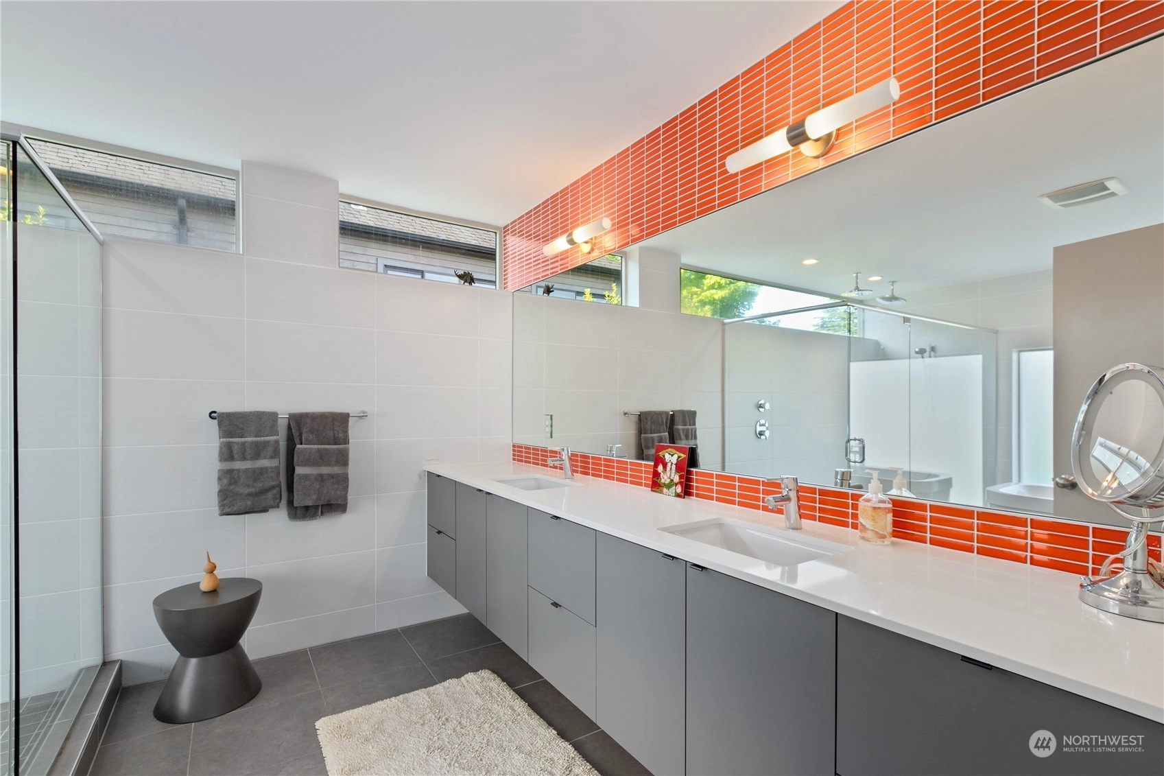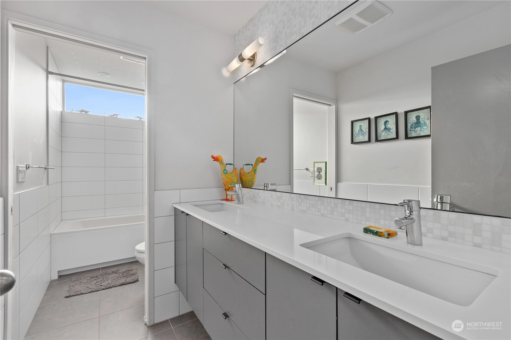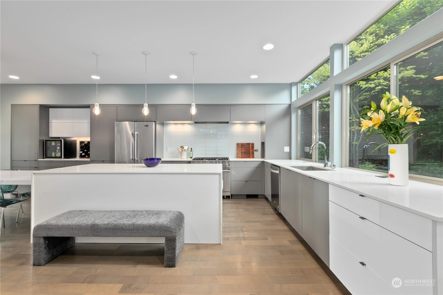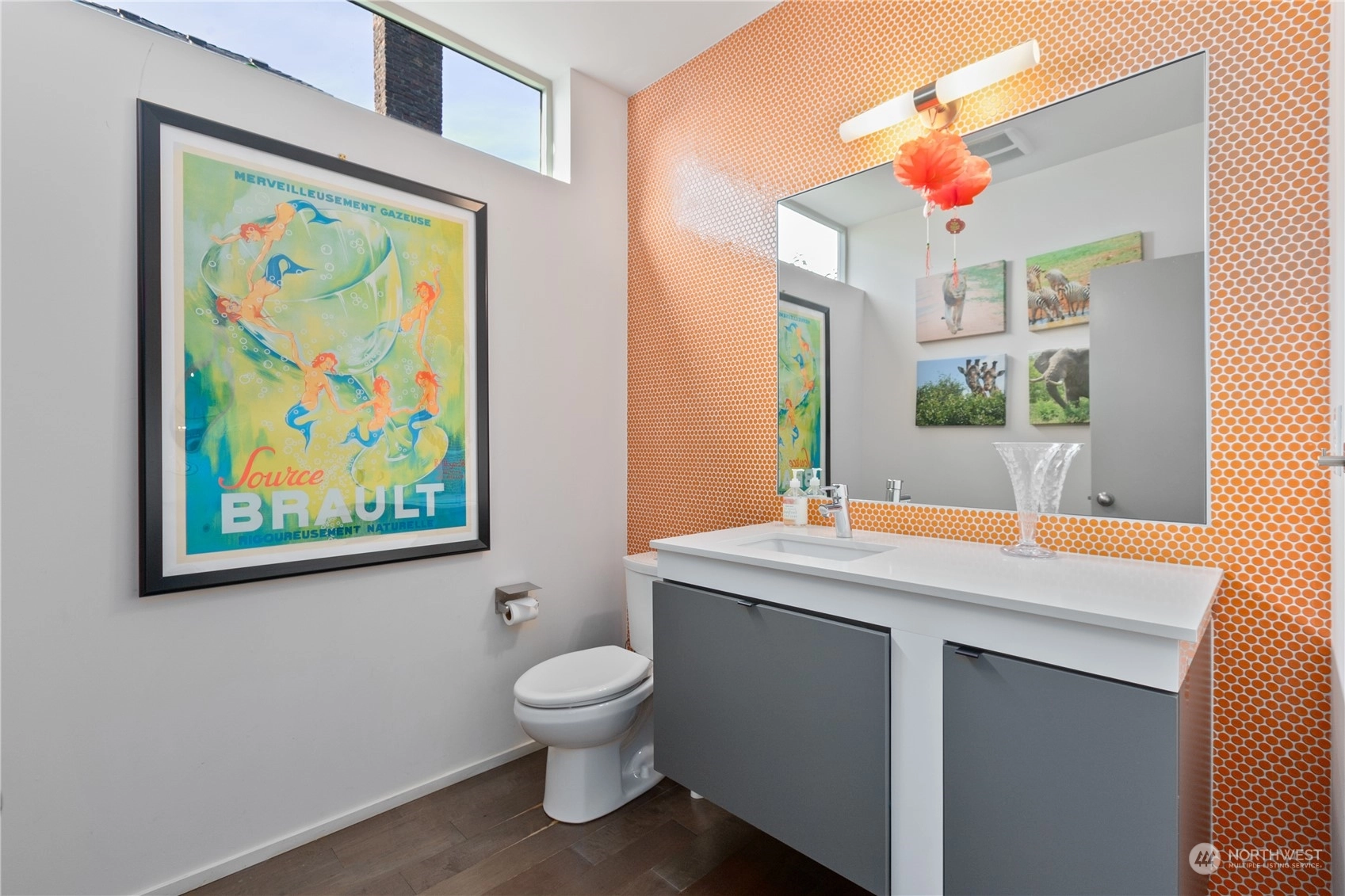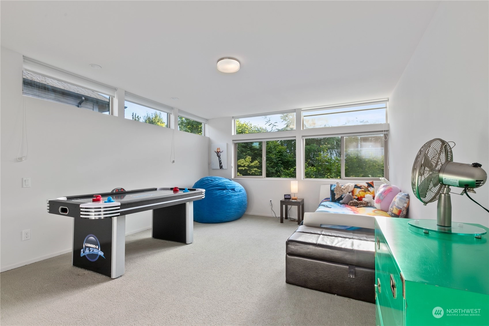 Coveted North Capitol Hill, Urban Oasis. Modern luxury meets convenience and views. Easy access to I-5, 520, Downtown or Eastside take your pick. Bars and restaurants minutes away. Seattle Prep, Bertschi Elementary and TOPS at Seward K-8. No winter blues here; picture windows fill the house with light all year long. The open-plan main floor makes entertaining a dream, brand new deck and folding wall of glass brings the outside in. 3 spacious bedrooms on 2nd floor provide room for everyone. Generous roof deck has cozy studio with amazing views, UW stadium, Lake WA, Cascades. 4th bedroom and Family room on the two-car garage level serves as an extra office, home theater or gym. Solar panels pay for roughly half of electrical needs.