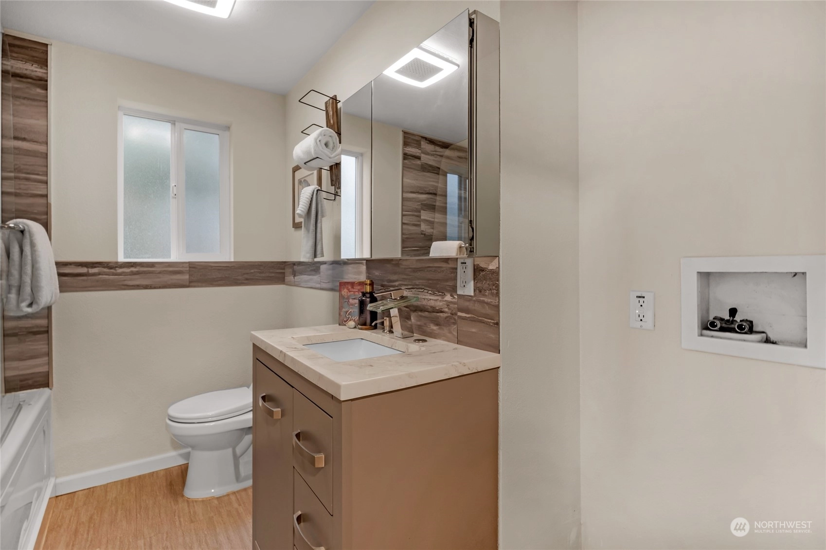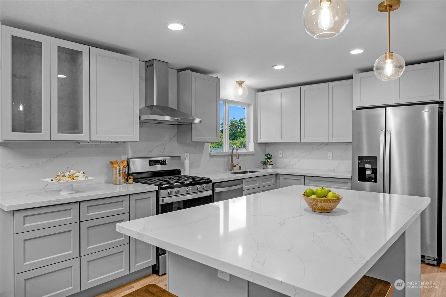 This dreamy property has EVERYTHING you have been thinking about. Nestled in beautiful & desirable Finn Hill, this newly renovated 4-bedroom/3 bath gem offers a blend of modern style + room for fun, entertaining & hobbies. The open plan welcomes you with a stunning updated kitchen w/quartz counters & new appliances, new paint, new baths, refinished hardwoods + more. Enjoy your park like backyard with a stunning fountain, chicken coop, fruit trees, berries, workshop, garden beds & more. Lower-level could offer MIL quarters with separate entry. Located on a spacious lot, with room for RV/Boat parking behind a stylish locked gate, and only moments from schools, shopping & parks. Top LW schools. Large lot offers ADU potential. Pre-inspected!