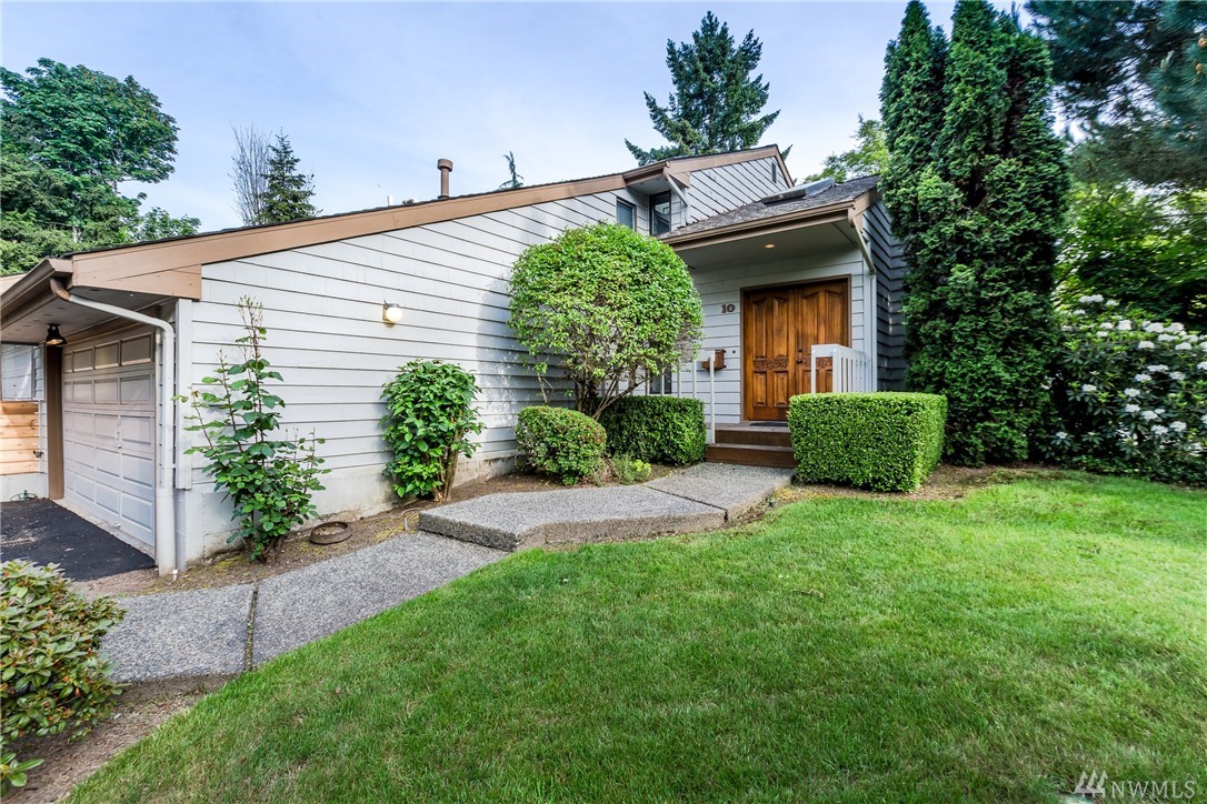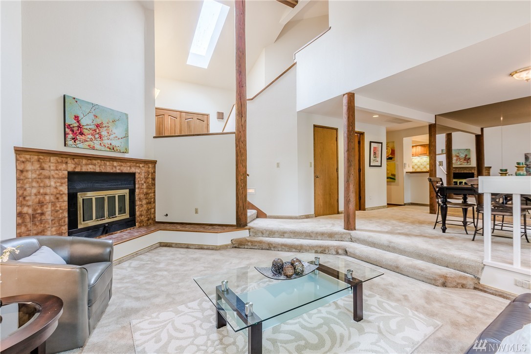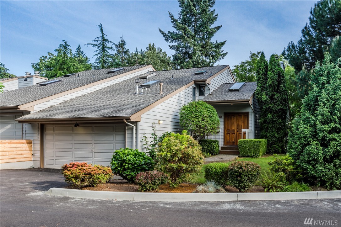 Freshly painted 2 bed 2.25 bath townhome in excellent Bellevue location. Mature landscape provides a private, serene setting. Vaulted ceilings w/ several skylights illuminate an already generous 1553 sqft. The family room is adjacent to the spacious kitchen w/ a breakfast bar. Large private deck across the back is great for entertaining. Individual 2 car attached garage. Minutes to shopping, restaurants, major freeways, Microsoft & BC. Finished bonus room is not part of the sqft.