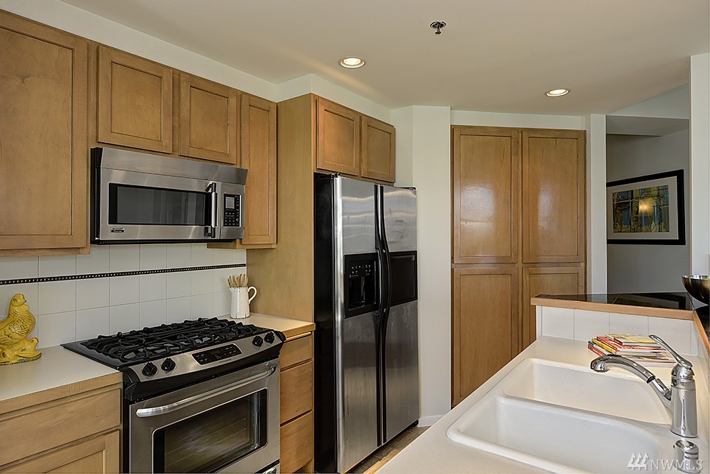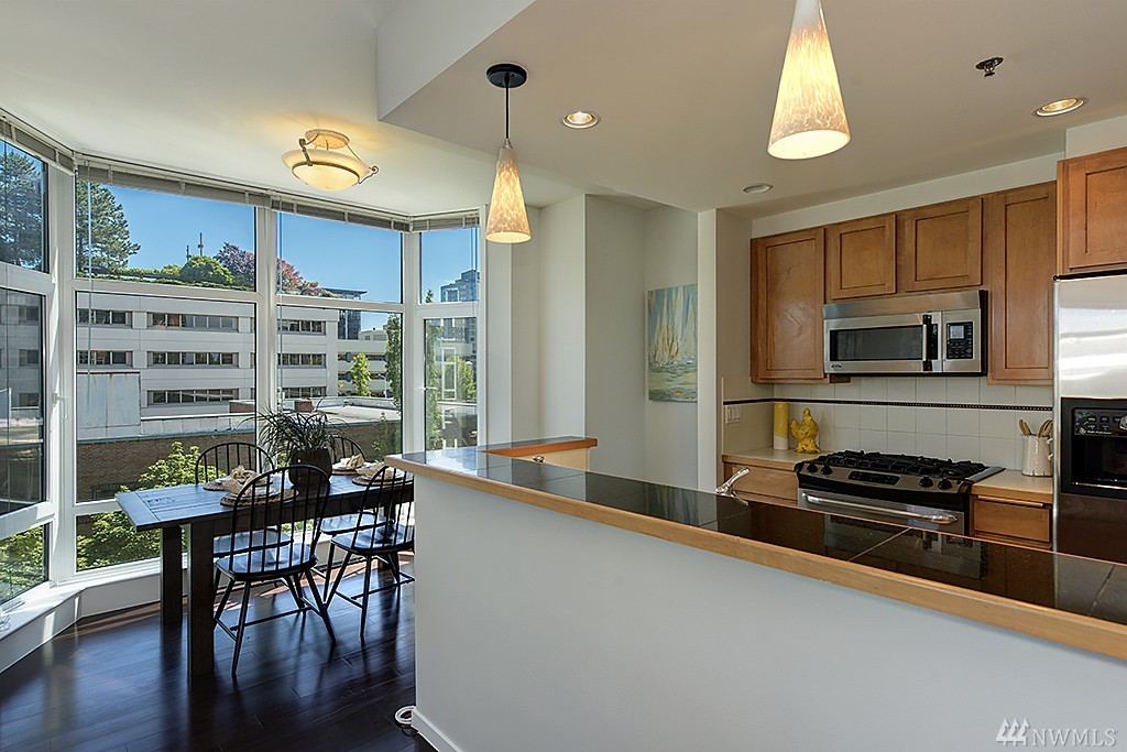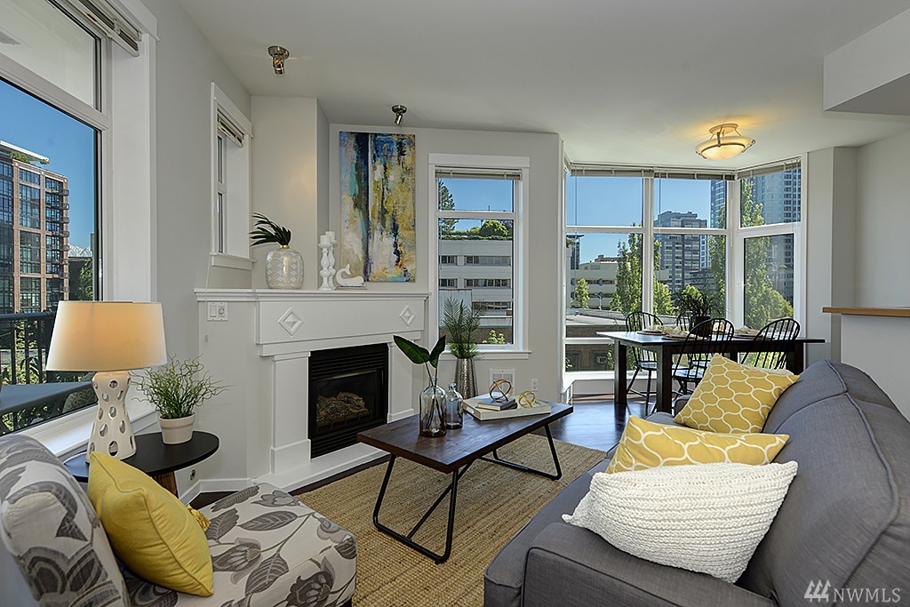 Beautifully designed corner unit great for entertaining & flooded with light. Open-concept kitchen with stainless appliances & gas cooking. Espresso-hardwood floors, tall ceilings & oversized windows make this unit a joy to decorate. Dining room with bay window & gas fireplace add character. Private balcony & generous bedroom with walk-in closet to keep you organized. Luxury building with 2 guest suites, gym, spa, 24-hour concierge & club room for parties. Garage parking + storage included.