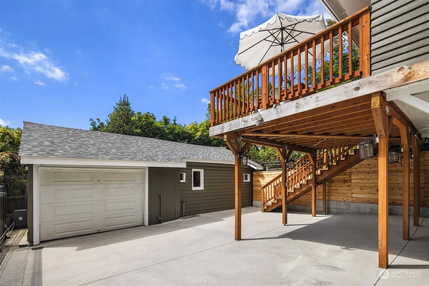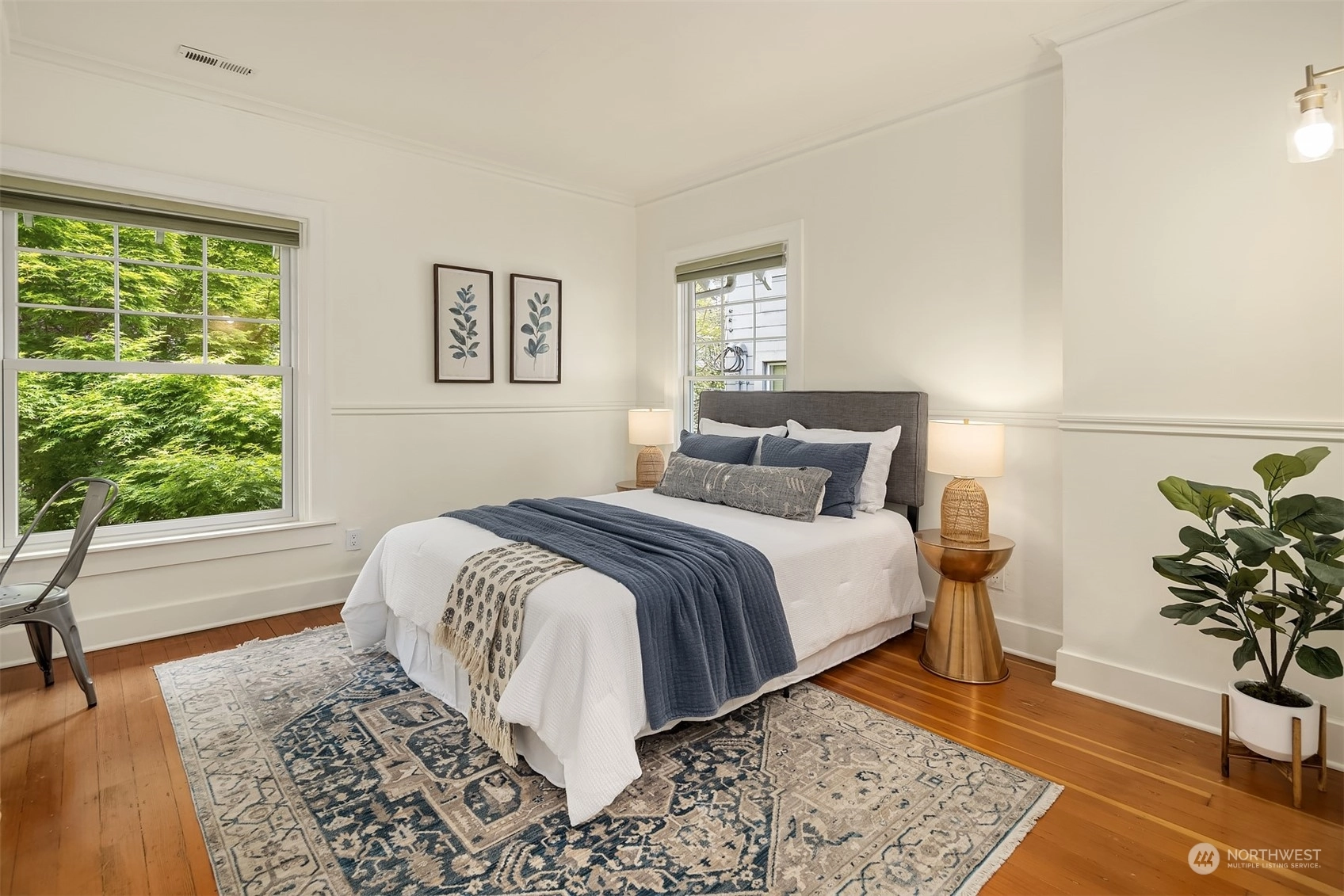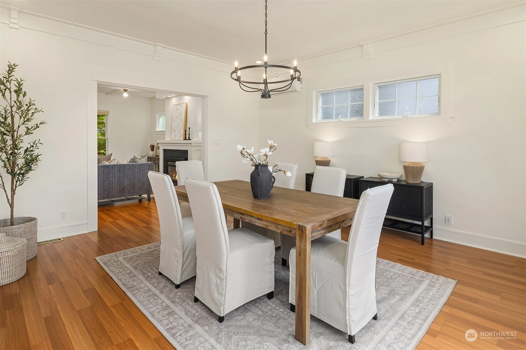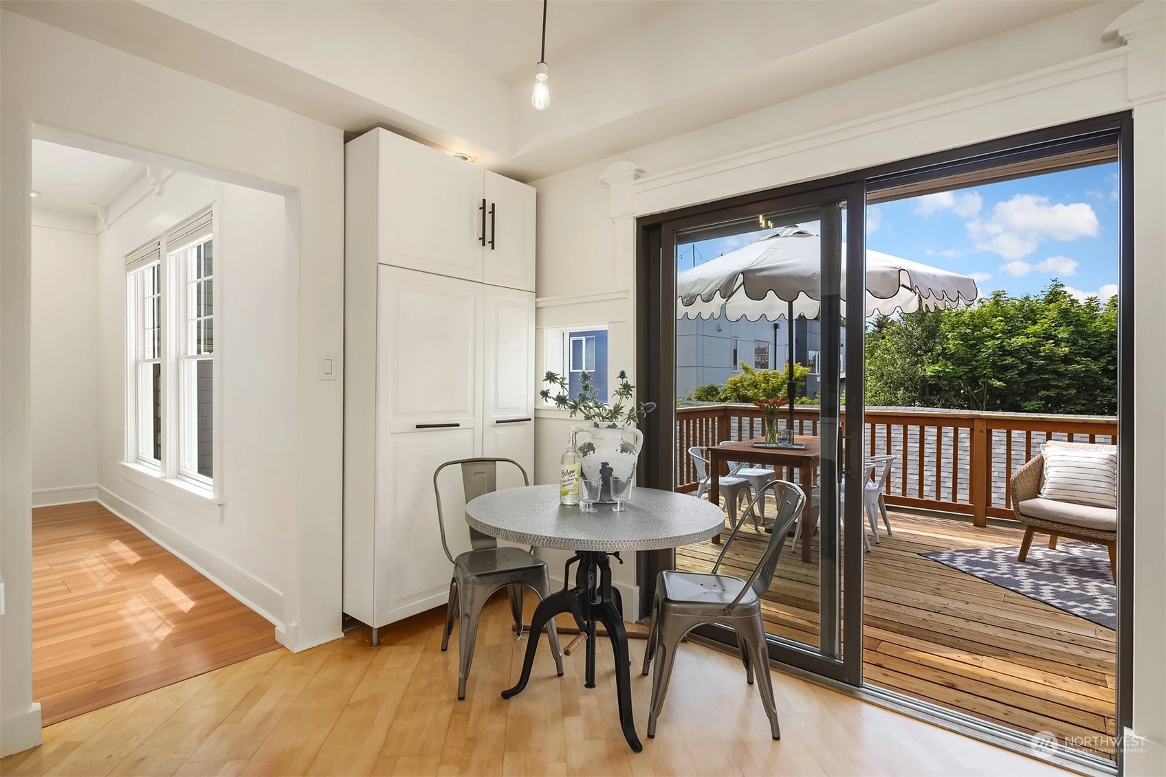 Welcome to this Capitol Hill charmer, where traditional elegance meets Art Deco-inspired details. The fully fenced property offers privacy while the lush greenery highlights the inviting entrance. Enjoy an oversized light filled living room with gas fireplace, spacious formal dining room, and a kitchen that opens to a west facing deck perfect for al fresco dining. The top floor has 3 bedrooms including the primary with en-suite bath, view of the space needle, and laundry. The lower level has a chic ADU suite, ideal for guests or an income generating opportunity. Parking is plentiful with two private gated parking spots and a garage with build-out potential. The home brings timeless sophistication to an already vibrant urban lifestyle.