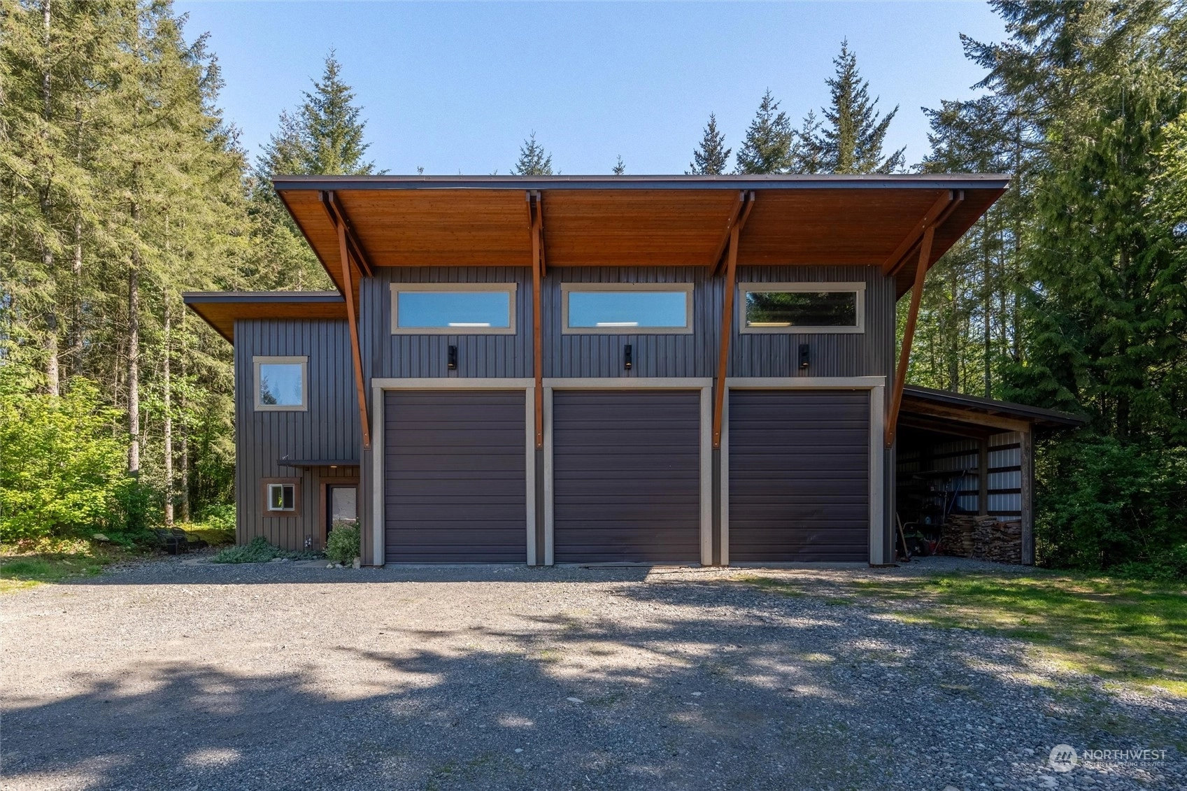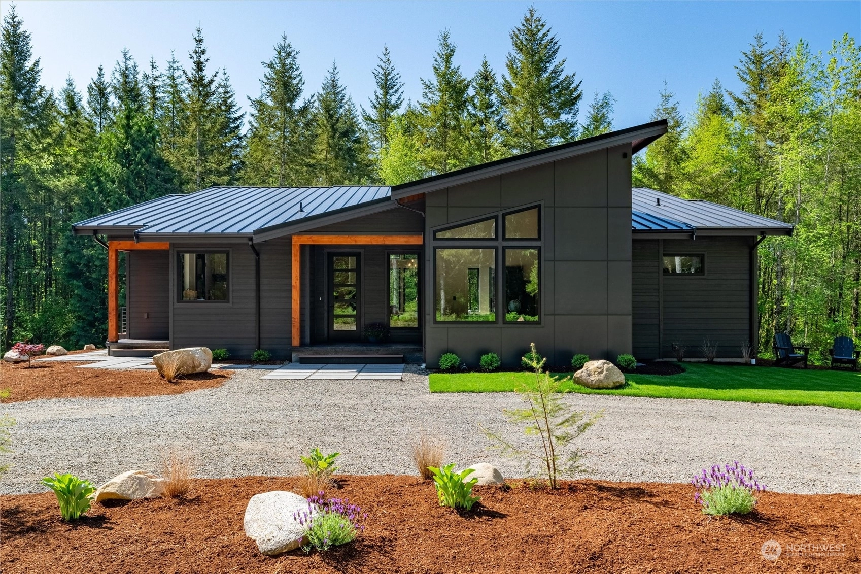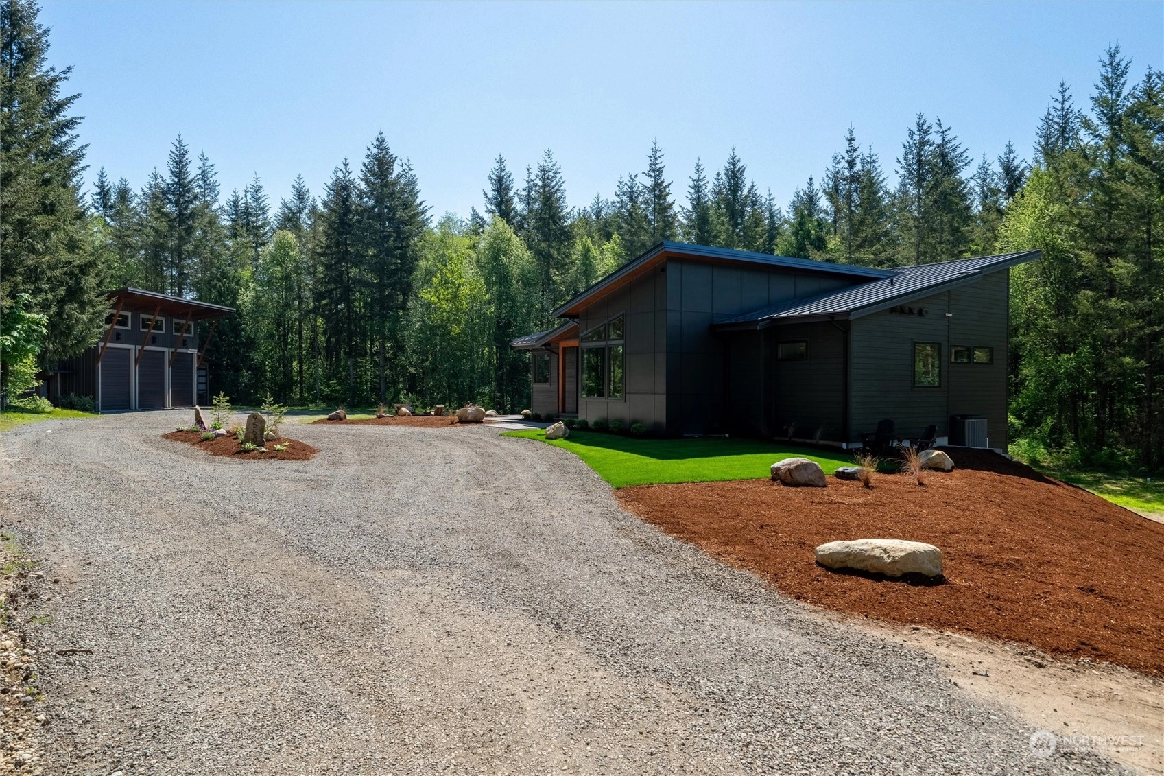 Newly constructed PNW contemporary masterpiece offers a perfect blend of luxury & comfort. Stunning architecture, upscale features & high-end finishes throughout. Located on nearly 5 private acres inside the beautiful gated neighborhood of Sherwood Estates. This home was designed to impress with no detail overlooked. You'll fall in love with the massive windows, cedar vaulted ceilings & exposed beams, dramatic fireplace, luxurious primary suite, & an absolute dream kitchen! Expansive covered deck & picturesque outdoor spaces. High efficient components, including Solar. The detached 3 bay shop is just as impressive. 14' doors, & room for all of your toys. Just off the shop is a fantastic two story, 1bd/1bath detached ADU potential. Must See!