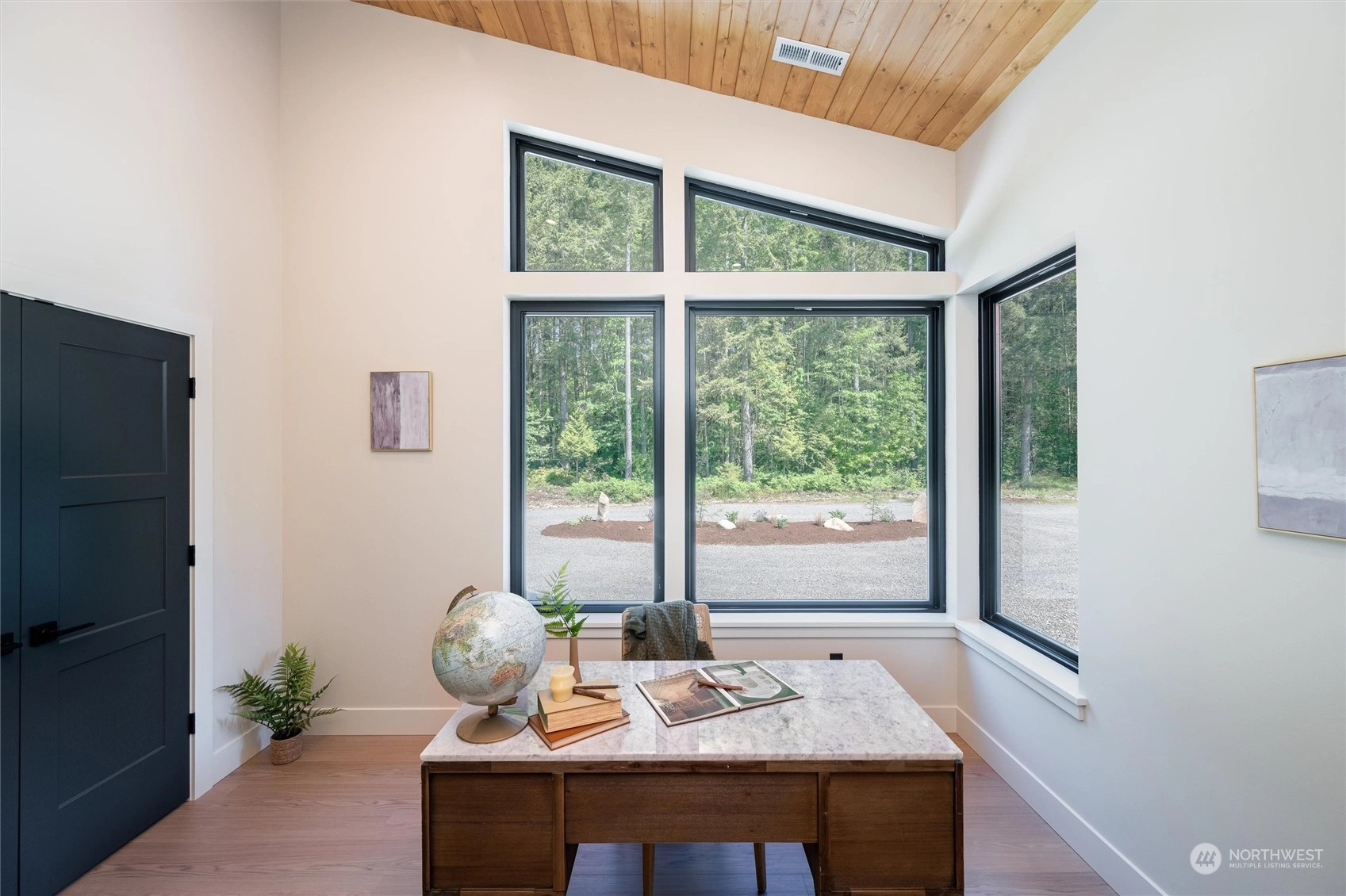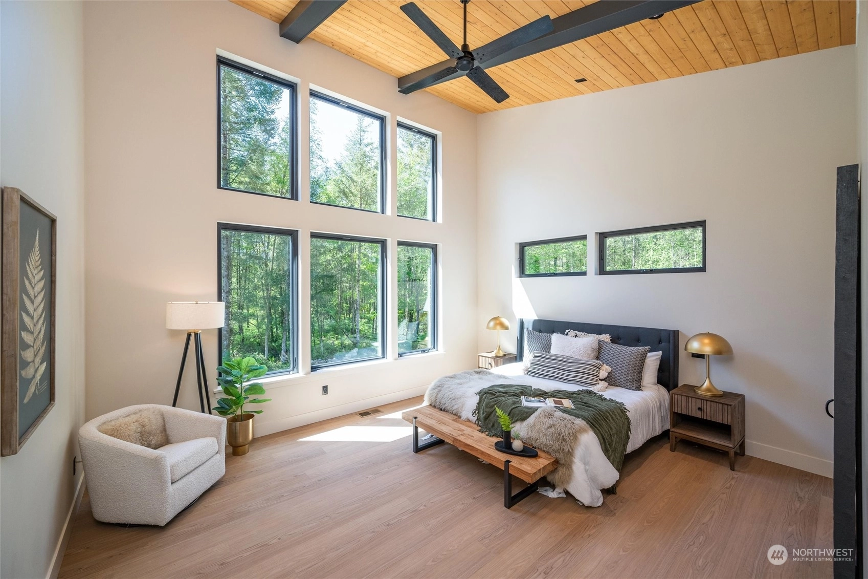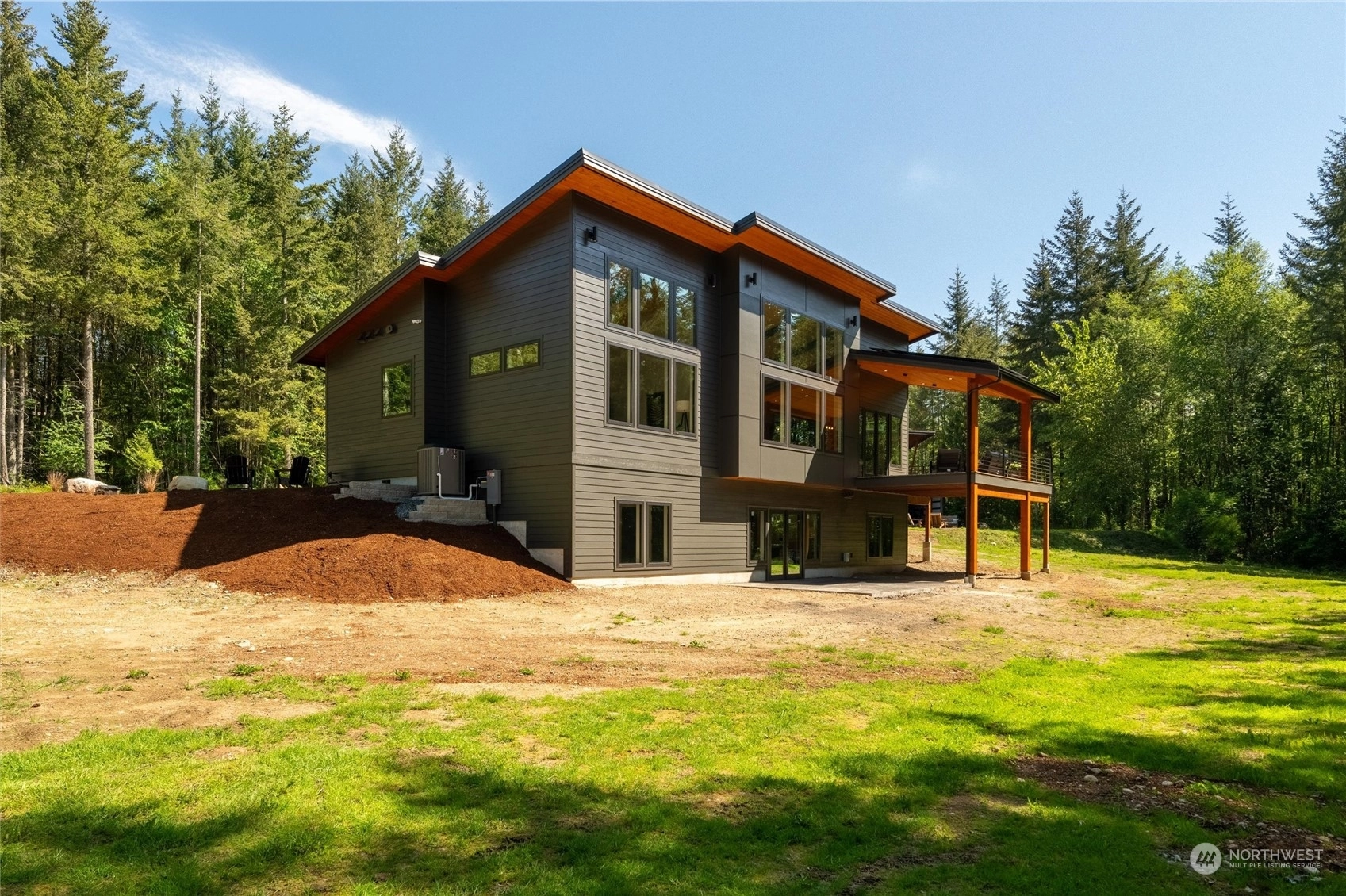 Newly constructed PNW contemporary masterpiece offers a perfect blend of luxury & comfort. Stunning architecture, upscale features & high-end finishes throughout. Located on nearly 5 private acres inside the beautiful gated neighborhood of Sherwood Estates. This home was designed to impress with no detail overlooked. You'll fall in love with the massive windows, cedar vaulted ceilings & exposed beams, dramatic fireplace, luxurious primary suite, & an absolute dream kitchen! Expansive covered deck & picturesque outdoor spaces. High efficient components, including Solar. The detached 3 bay shop is just as impressive. 14' doors, & room for all of your toys. Just off the shop is a fantastic two story, 1bd/1bath detached ADU potential. Must See!
