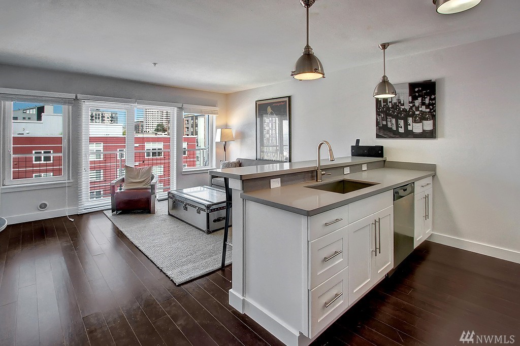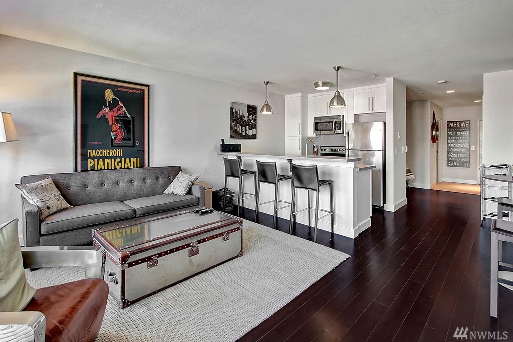 Amazing Belltown location w/in walking distance to just about anything an aspiring Seattle-lite could ask for. This top floor 1bedroom-esque designer unit offers great sound and city views from balcony & no neighbors above. Completely renovated w new kitchen, flooring, lighting, paint & more, the unit presents like new & offers a fresh 2016 look! Site 17 has so many amenities; fitness center, controlled access, roof-top deck, 2 common areas & on site manager. Great building & unit; Must See!!!