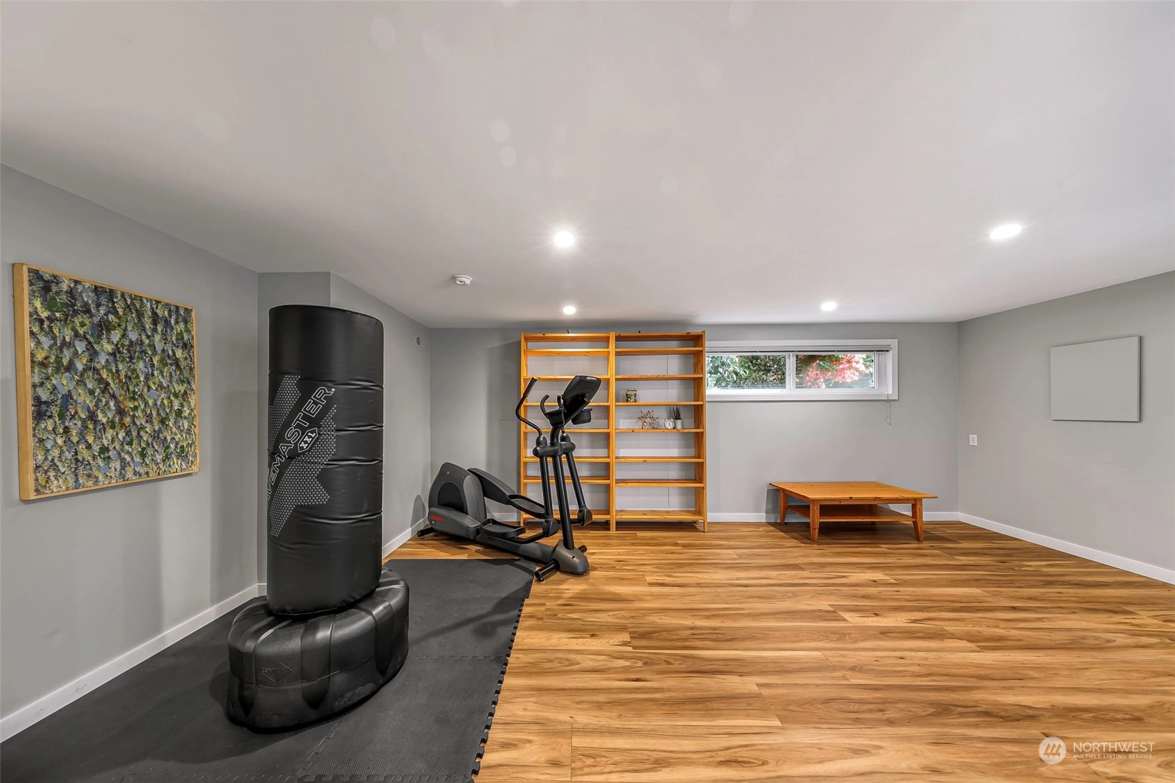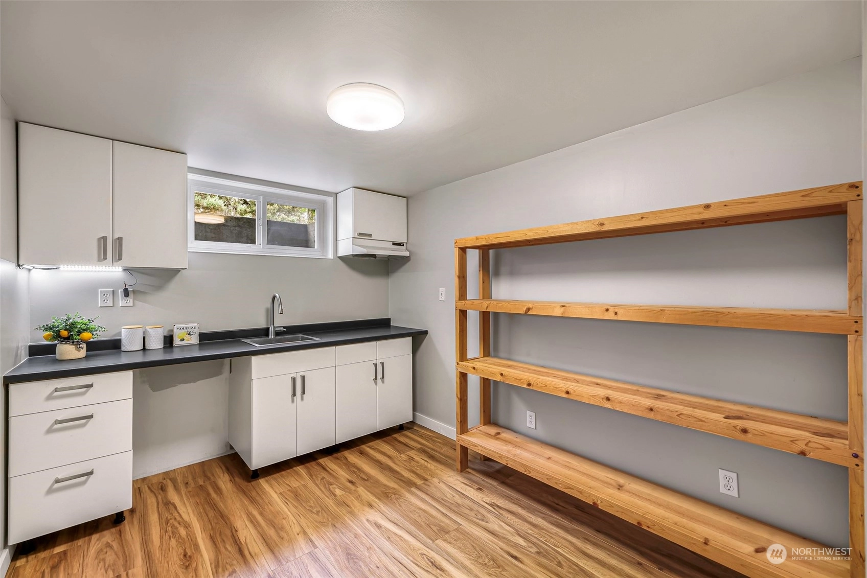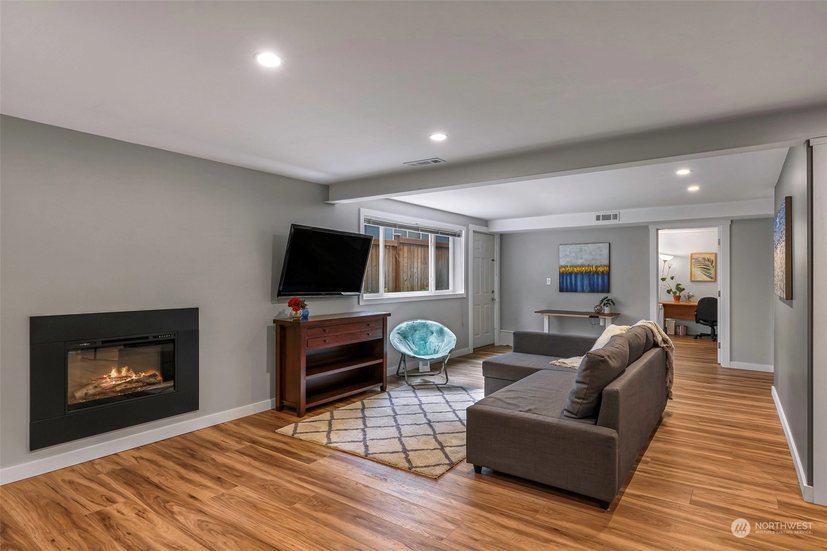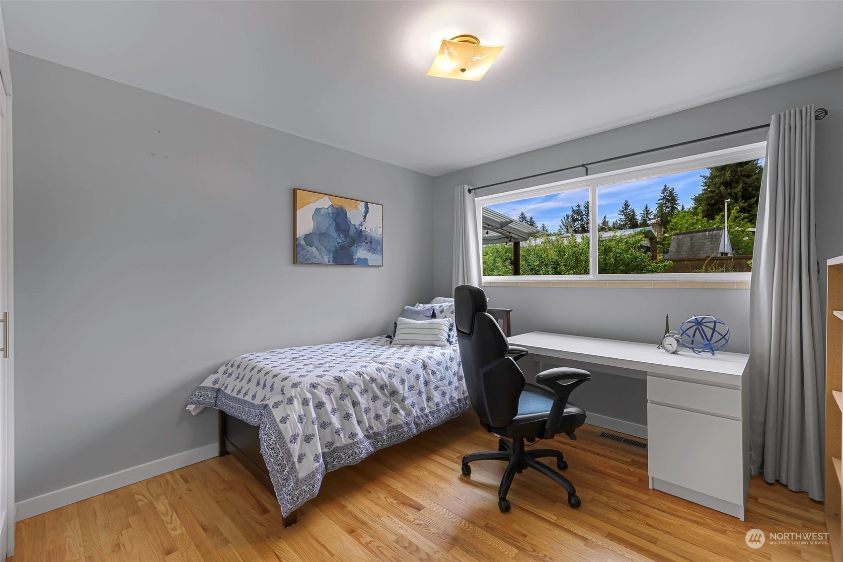 Welcome to this spacious, updated mid-century modern home. Gleaming refinished hardwoods on the main & high quality LVP flooring in lower levels. Chef's kitchen w/top-quality Quartzite countertops, premium black walnut cabinets & stainless-steel appliances. Big sliding doors lead to the large back patio, perfect for entertaining. Rare 3 bedrooms on the main floor. A separate entry lower level w/a bedroom, rec room/office, kitchenette & a full bath, perfect for guests or extended living. A level yard w/mature fruit trees & hedges & a long driveway w/ample parking space. Just steps away from Matthews Beach & the Burke Gilman trail, a walking distance to eateries, coffee shops & grocery stores. Top ranked schools. Easy access to freeway.
