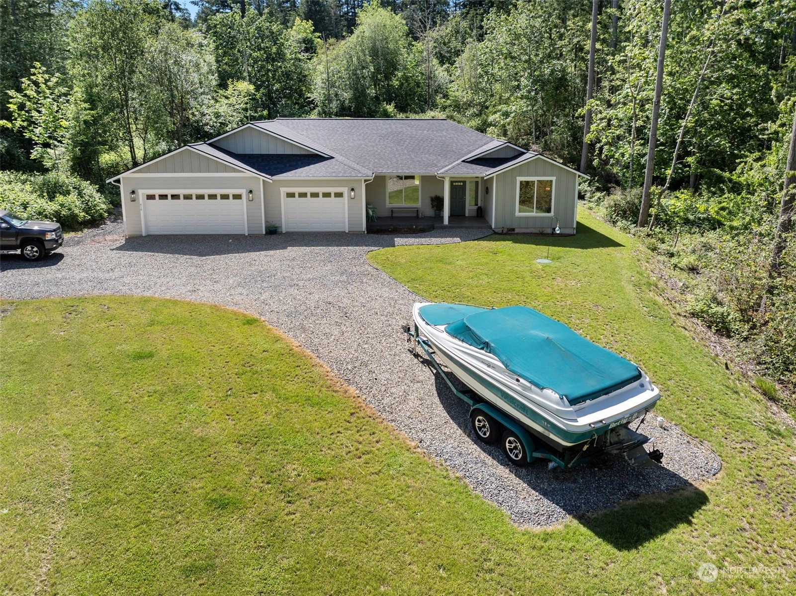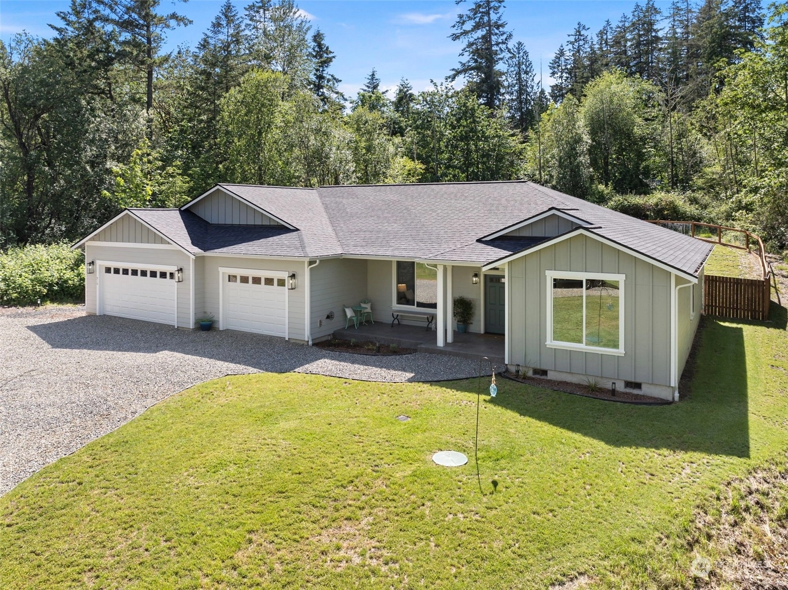 Welcome to this stunning, newly constructed modern farmhouse rambler, nestled on an expansive 1-acre lot in the highly sought-after location of Fox Island! This 3BR, 2.5BA with office/den offers grand open-concept living w/ vaulted ceilings & large windows that allow in all the natural light, a gourmet kitchen w/ top-of-the-line appliances, & gorgeous quartz countertops, a full butler's pantry, & high-end finishes throughout. Enjoy the large covered patio, private fully fenced backyard, easy landscaping, & RV/boat parking with 50-amp/septic hook-ups. 3-car garage & easy access to amenities, parks, community beaches, Gig Harbor & Hwy 16. Embrace luxurious living in this elegant retreat. Don't wait—experience this exceptional home today!