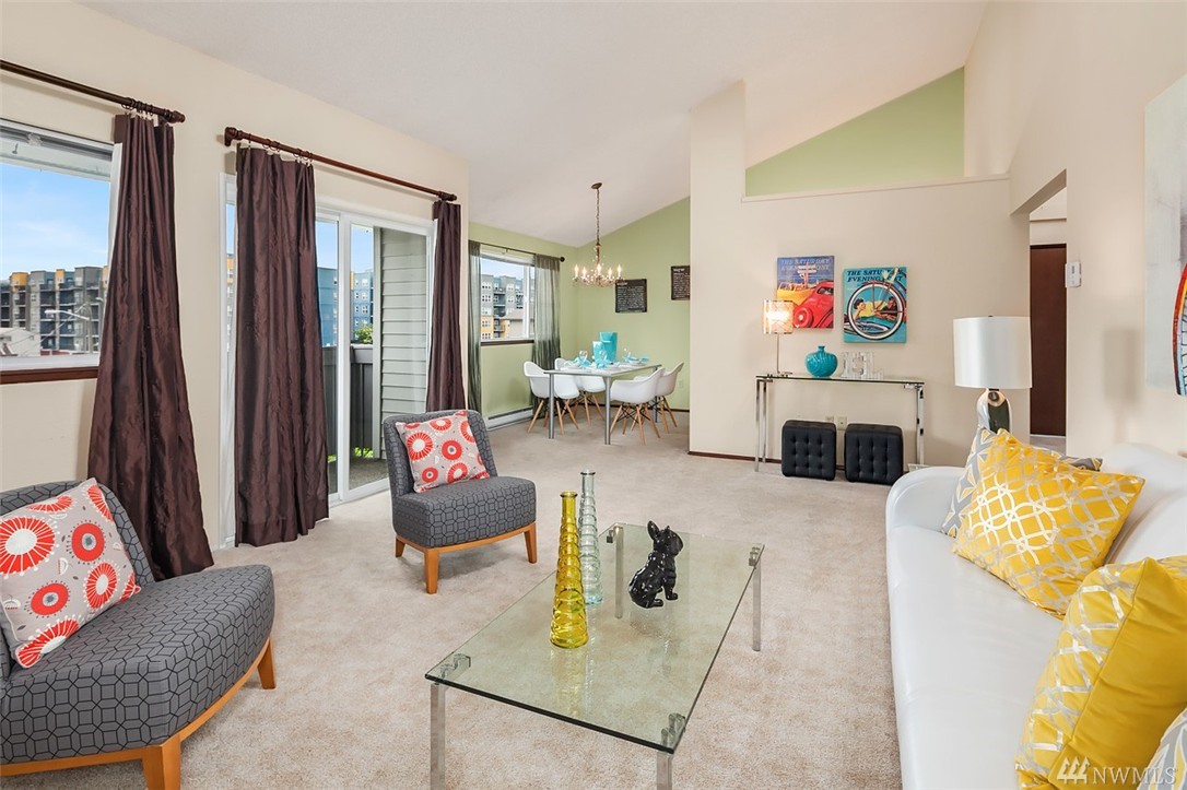 Top floor, end unit. Soaring vaulted ceilings, great architectural detail, plenty of light, skylights throughout, ample storage & spacious rooms. Convenient location close to UW, Hospitals, Northgate & amenities. Easy access to I-5 & Seattle. Master suite w/bath, second bedroom + full bath, deck off living room. Washer & dryer in unit. Small, secure 10 unit complex, lobby entry & secured parking garage plus 1 uncovered parking space & visitor parking. Extra-large locked storage room in garage.