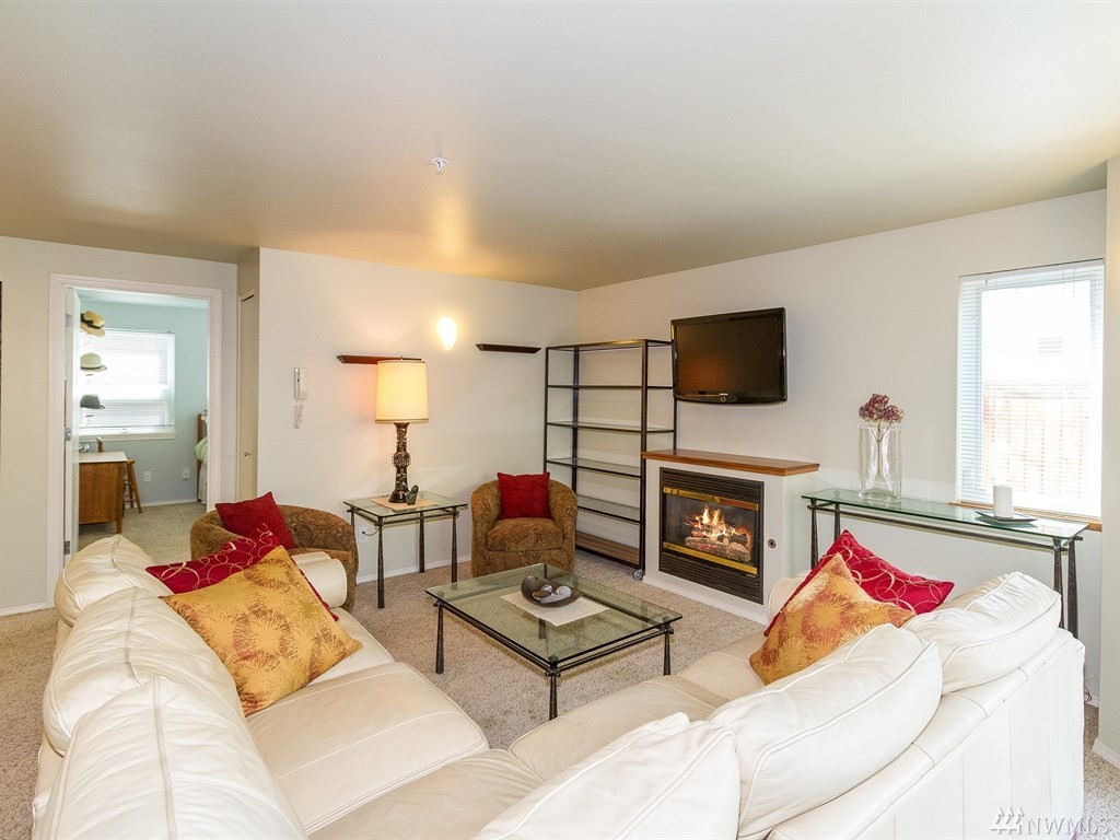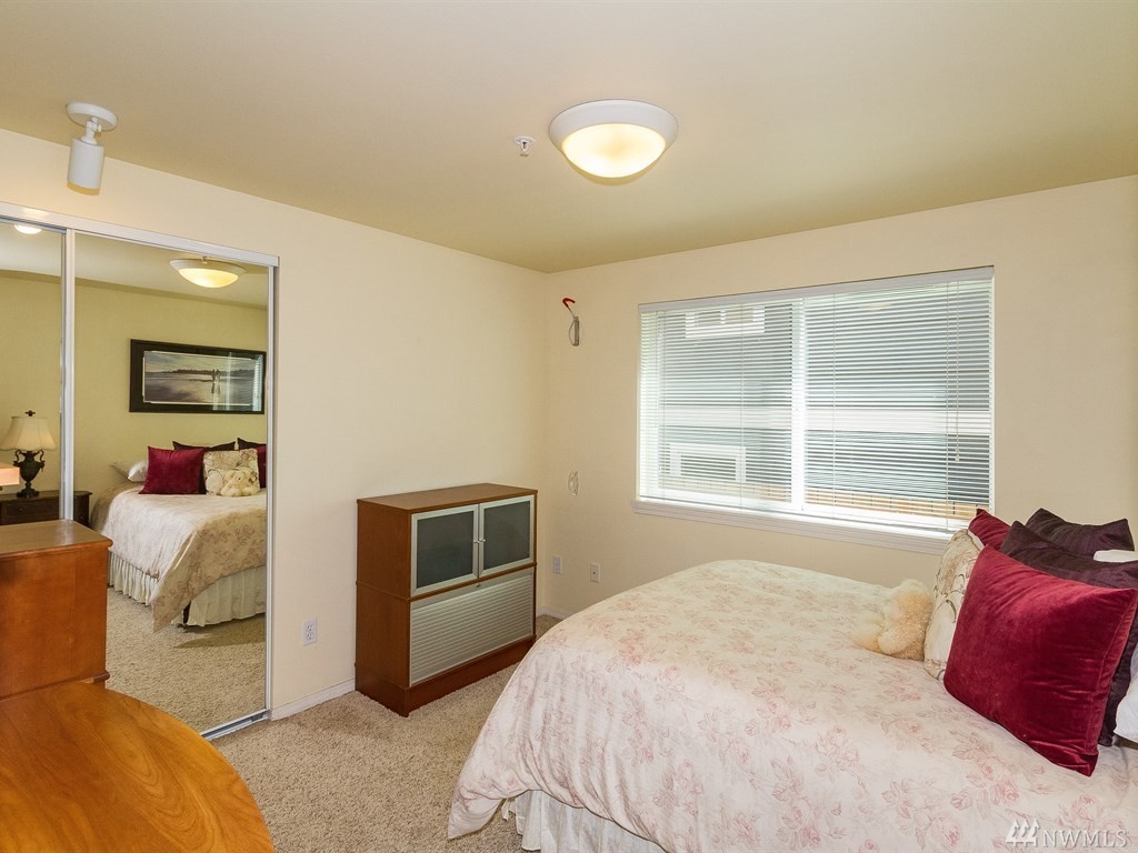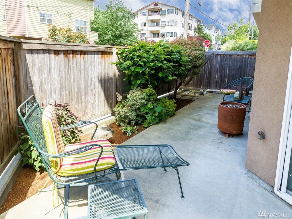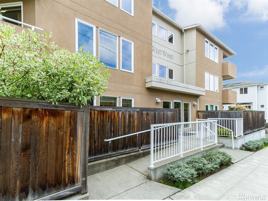This ground floor corner unit with patio and disabled access! This condo has it all: private deck/patio/yard, secure building, elevator, secured basement prkg/storage, open layout, kitchen w/new appliances & living room with a nice fireplace. Offering an in-unit w/d, 2 bdrms, 2baths & windows on three sides, it's light inside! All within a short walk to bus line, biking, shopping & Restaurants of Ballard. Non-smoking building.