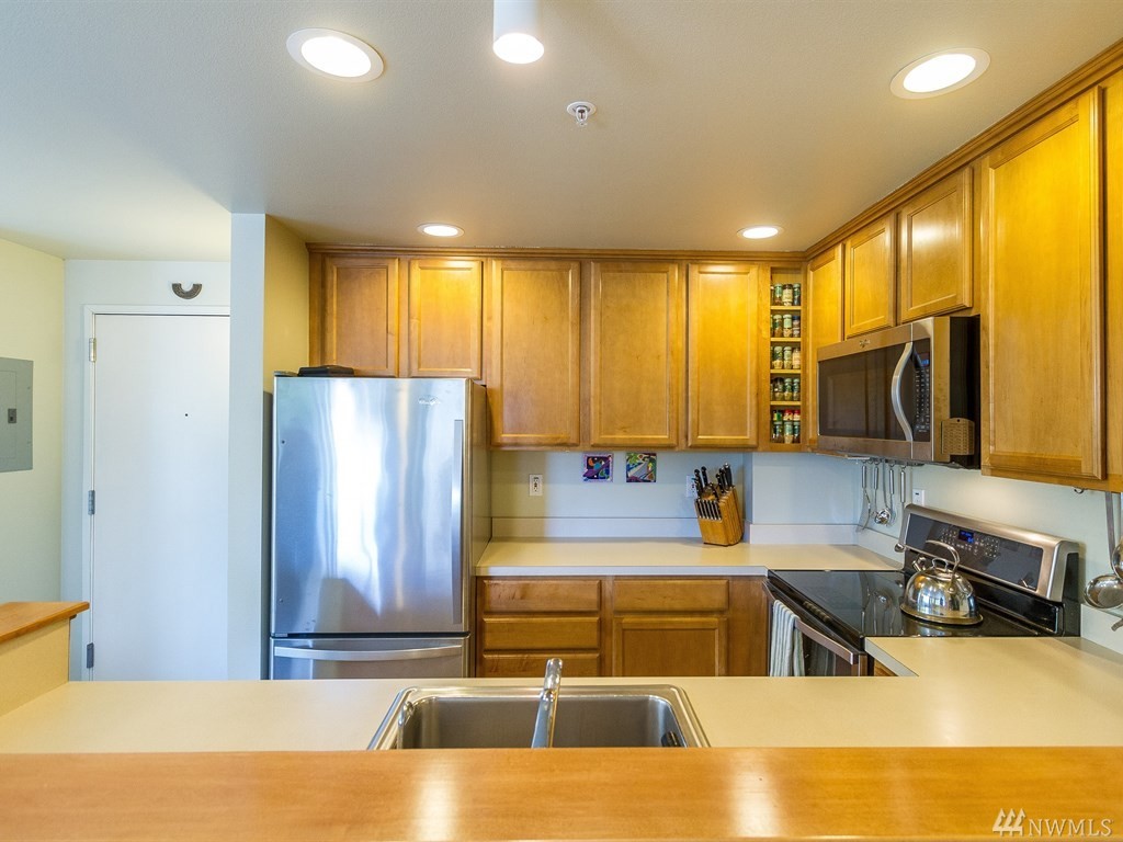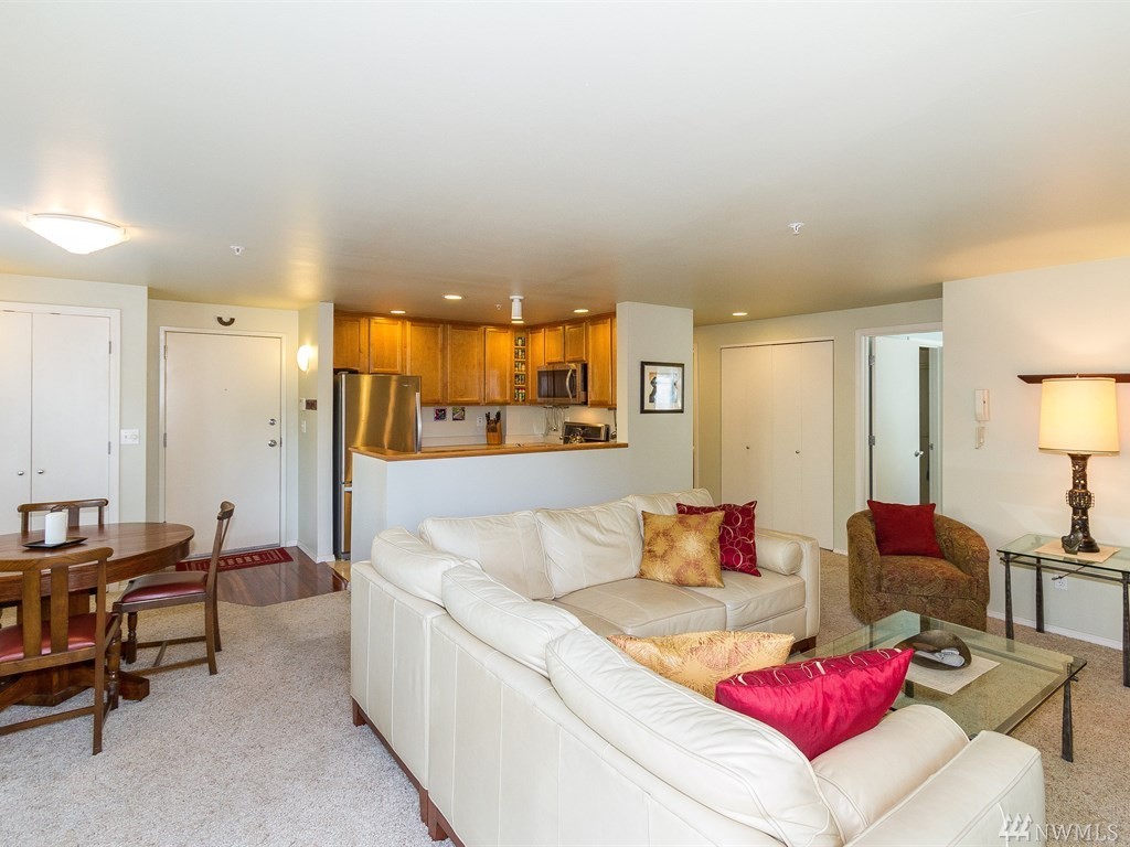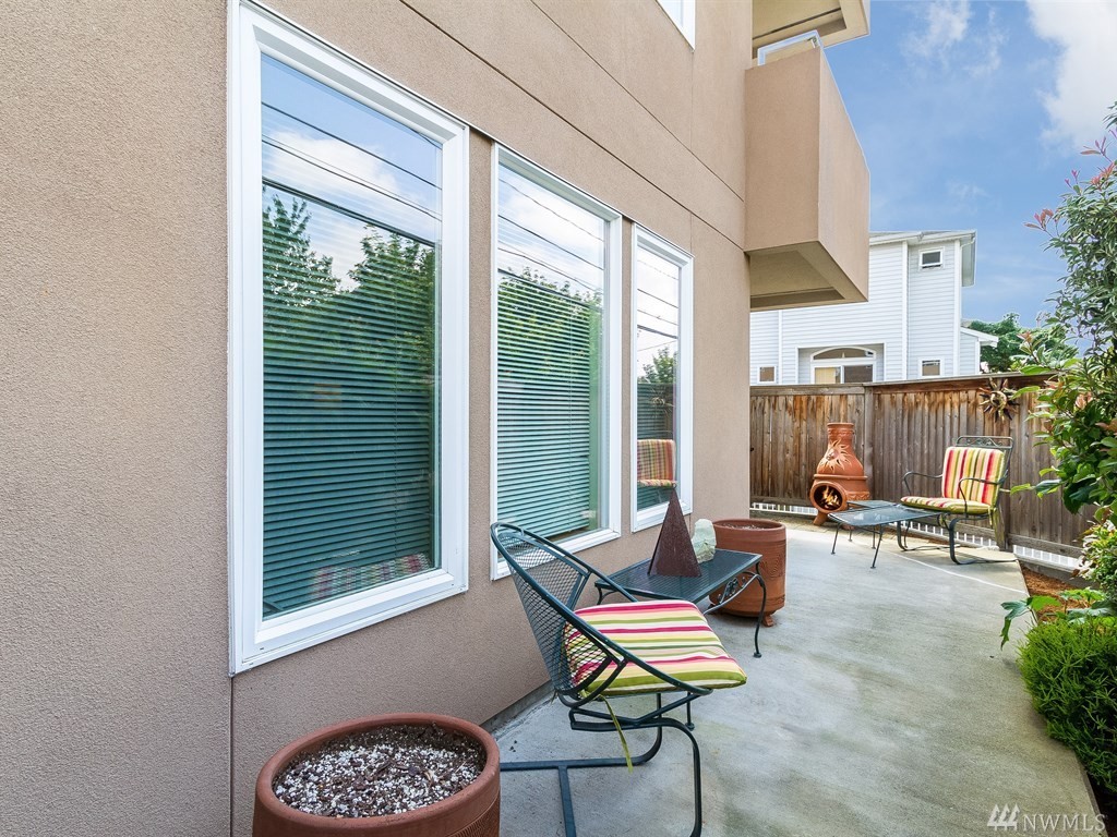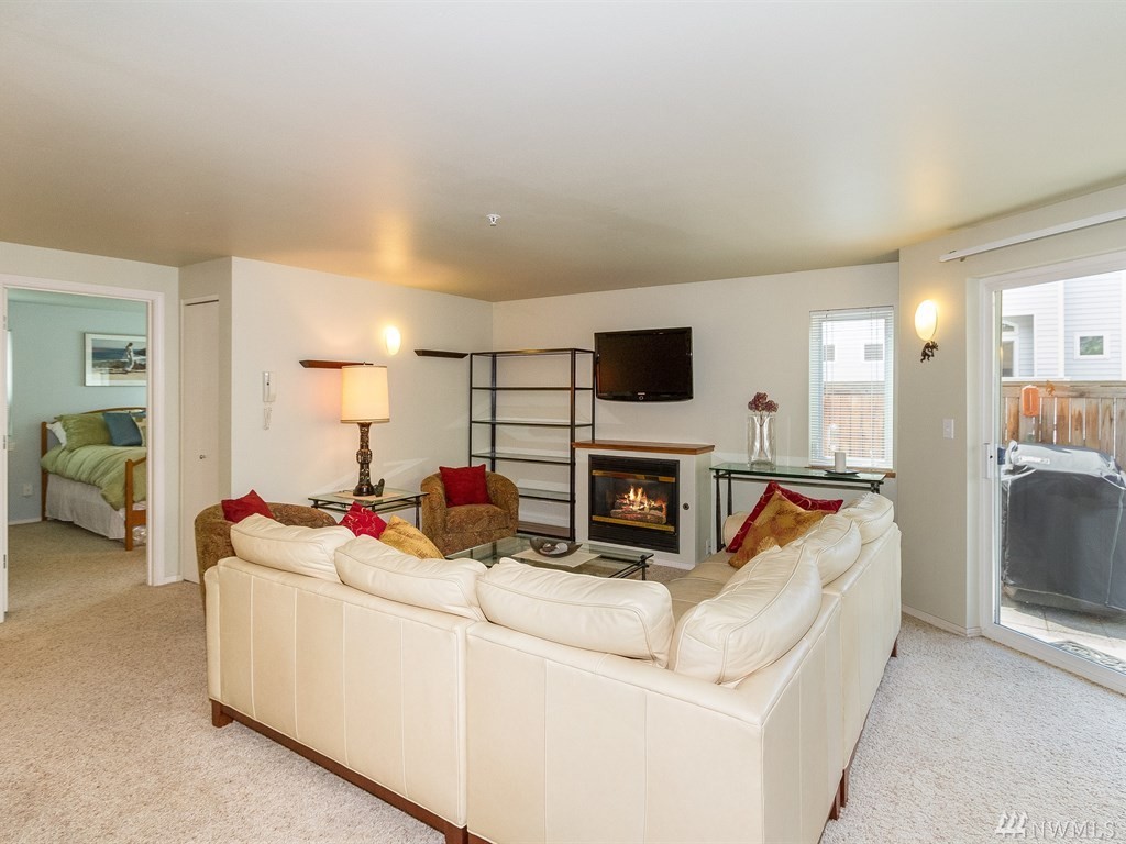 This ground floor corner unit with patio and disabled access! This condo has it all: private deck/patio/yard, secure building, elevator, secured basement prkg/storage, open layout, kitchen w/new appliances & living room with a nice fireplace. Offering an in-unit w/d, 2 bdrms, 2baths & windows on three sides, it's light inside! All within a short walk to bus line, biking, shopping & Restaurants of Ballard. Non-smoking building.