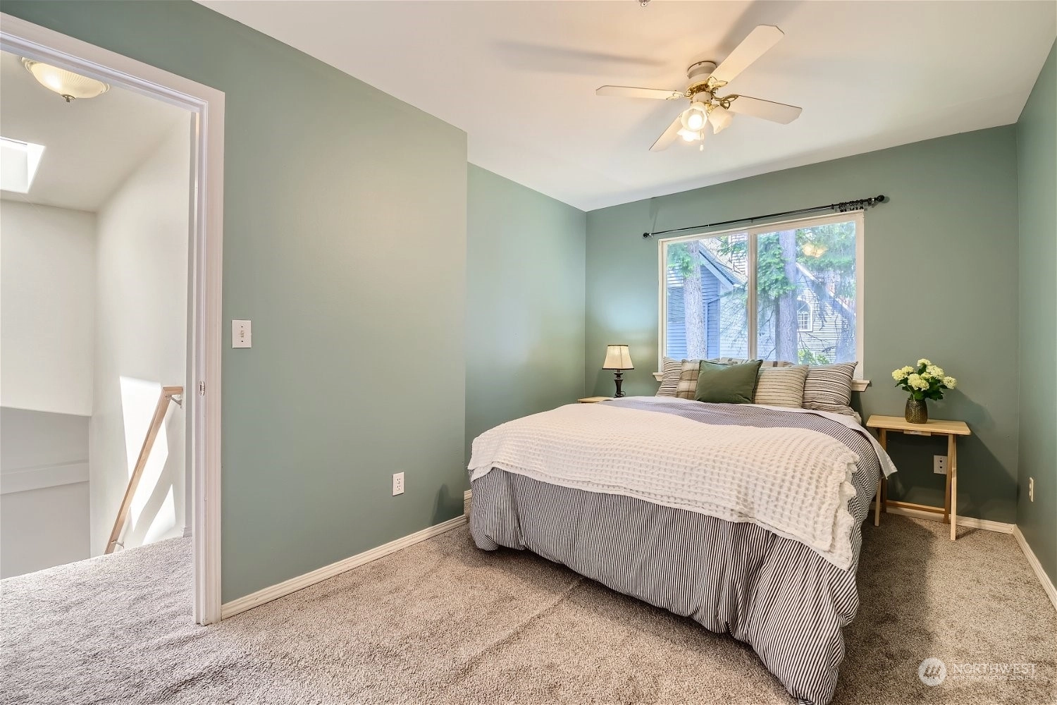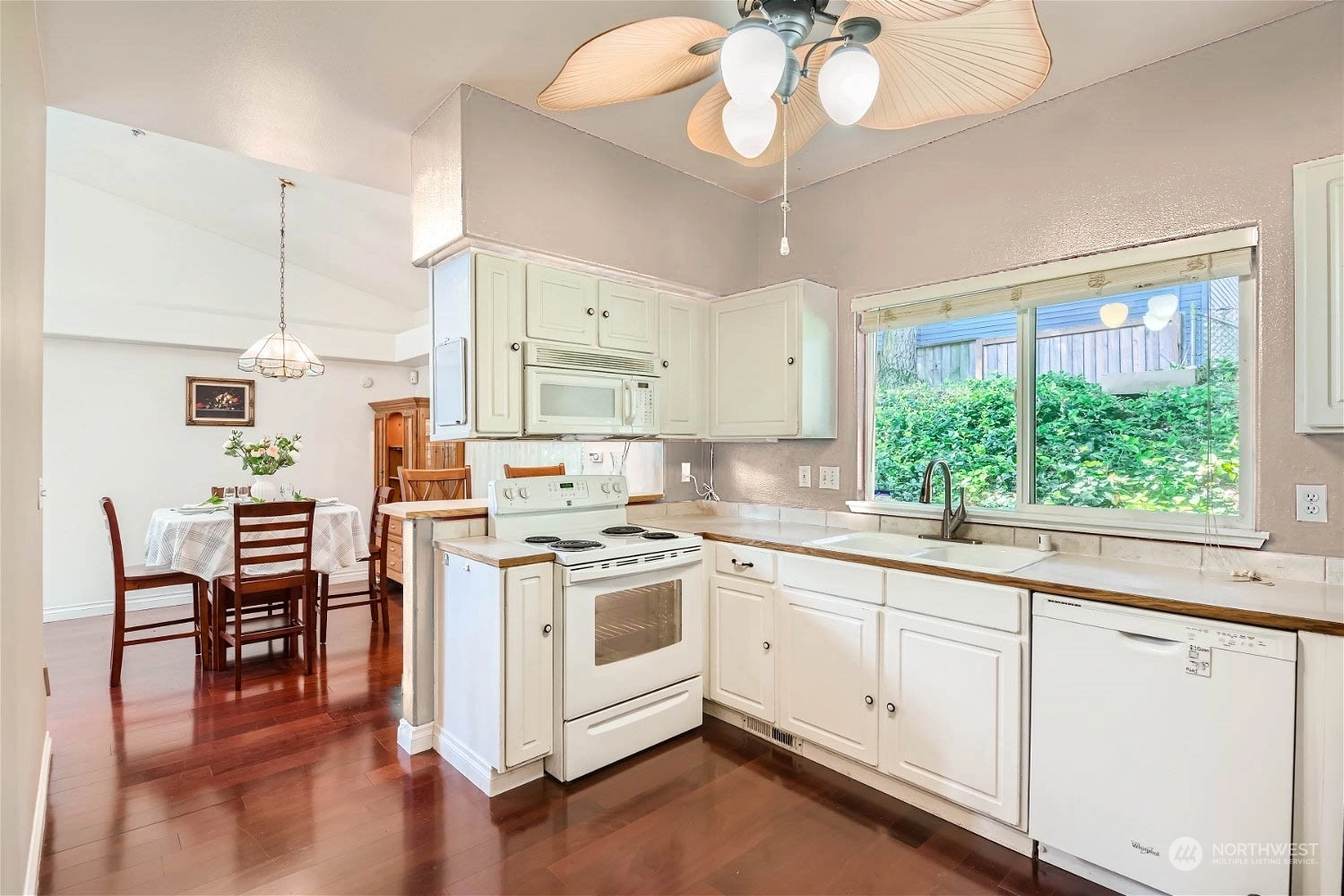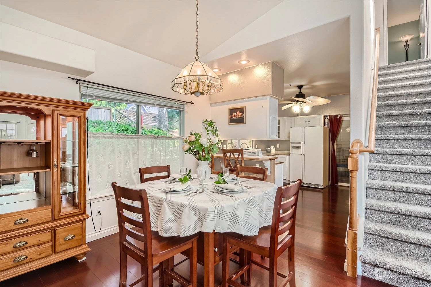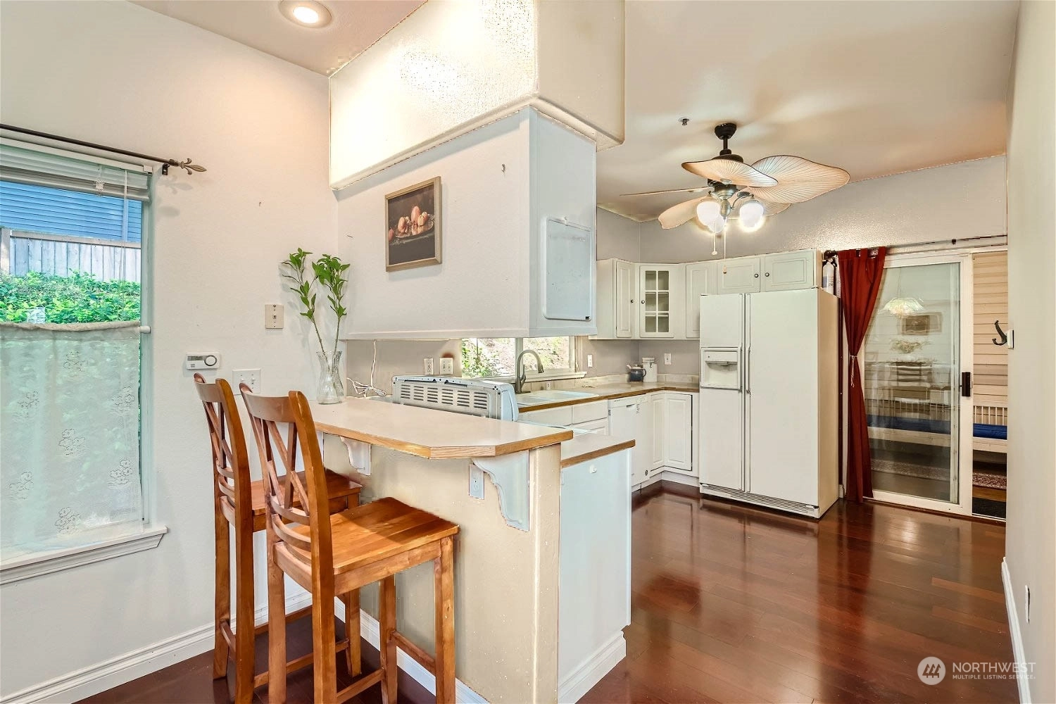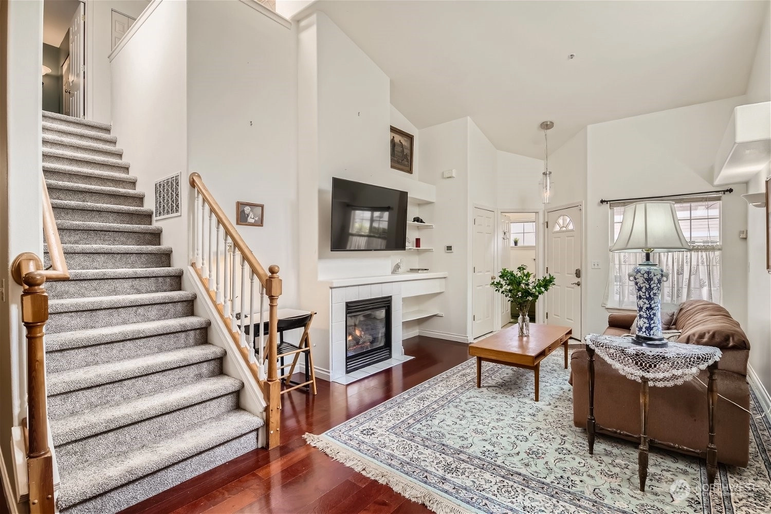 Welcome to Parkgate West! This desirable end unit offers serene living with soaring ceilings, wide plank flooring, and a cozy gas fireplace. The open-concept layout flows seamlessly into the kitchen with a breakfast bar, leading to a private covered porch overlooking a wooded area. Upstairs, three spacious bedrooms await, including a master bathed in natural light with a refurbished bathroom in 2022. With a two-car garage and proximity to the new light-rail station(open in August 2024), commuting is effortless. Enjoy the convenience of nearby 5 parks and Edmonds Community College. Experience luxury and tranquility in one exquistite package. New roof in 2023.