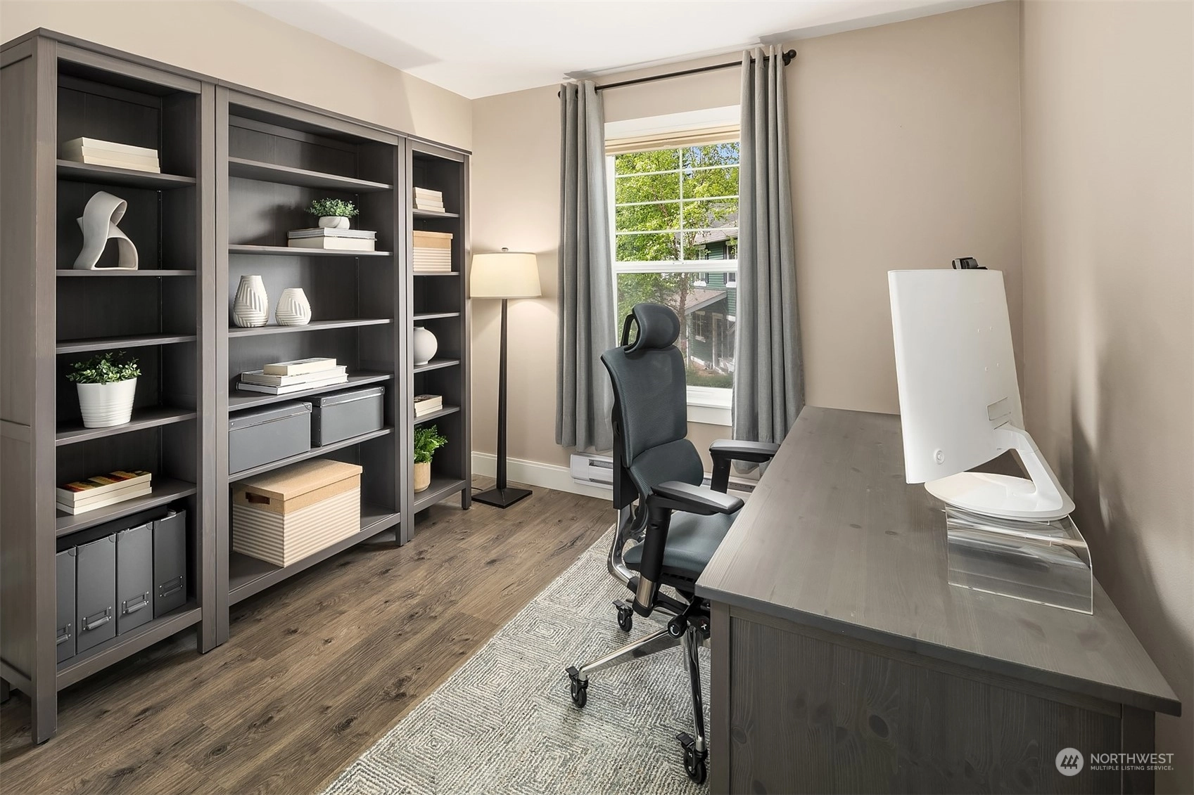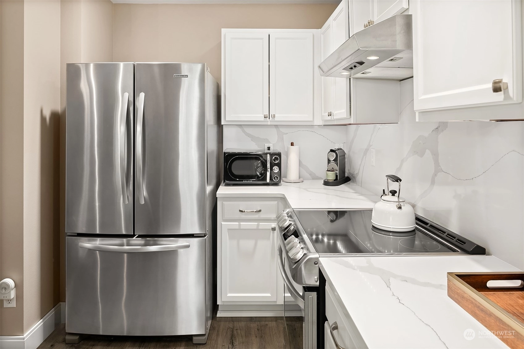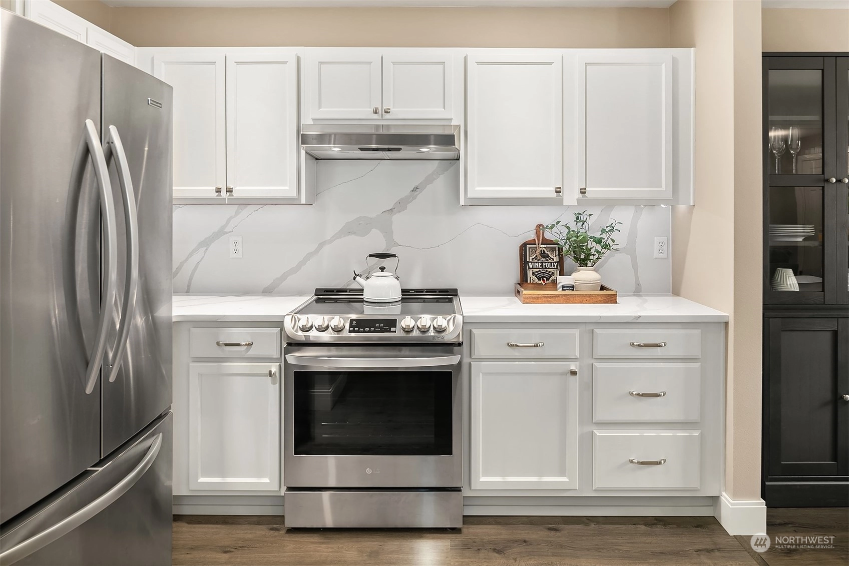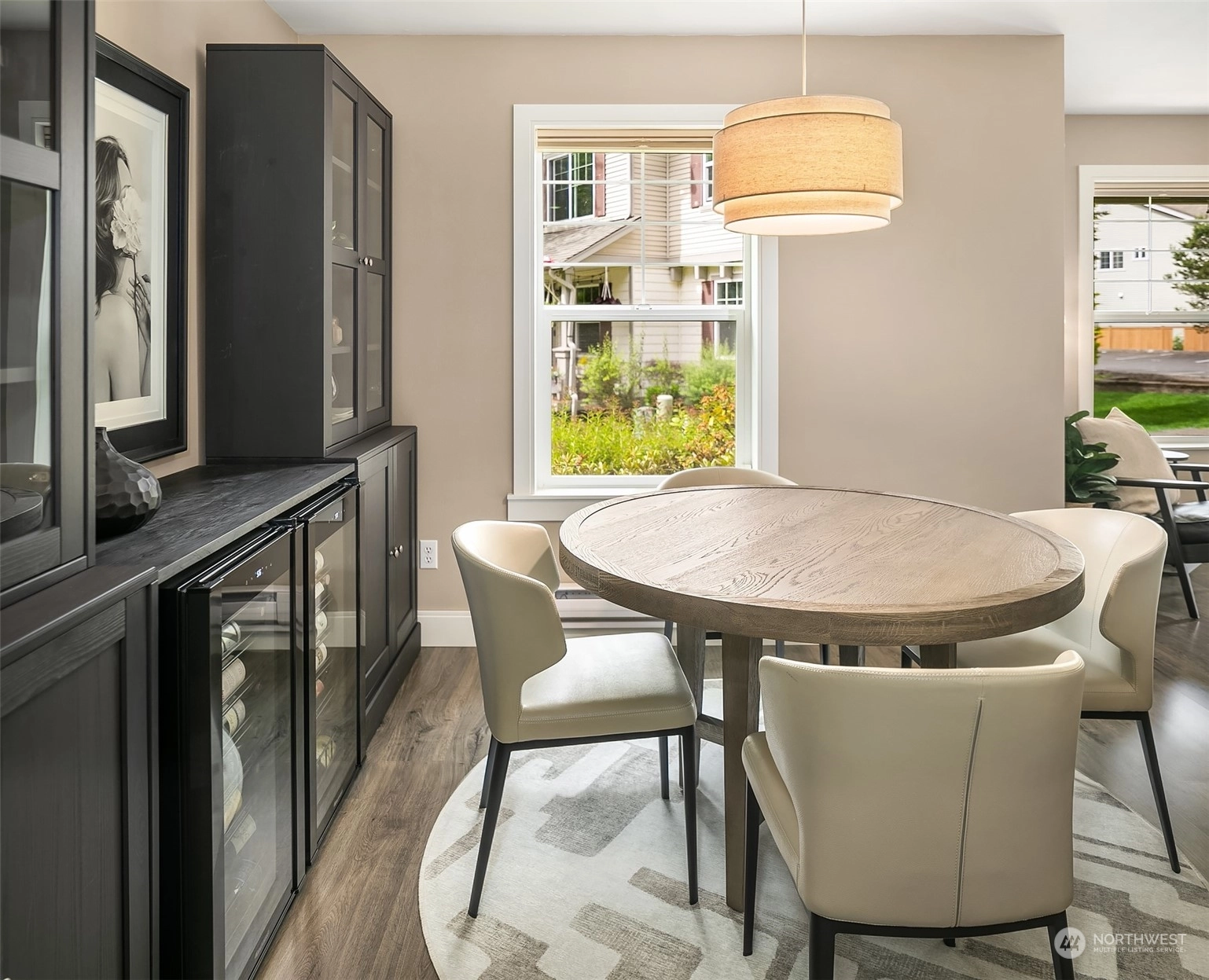 Nestled against a lush greenbelt, this Snoqualmie Ridge cottage offers unparalleled privacy and tranquility. Step inside to a fully updated interior with engineered flooring and high-end finishes throughout. The spacious light-filled living area features an open floor plan seamlessly connecting the kitchen, living and dining spaces. The gourmet kitchen boasts quartz countertops, a matching slab backsplash, and an updated induction range. Custom closet organization in the pantry and primary closets maximize storage and function. Elegant millwork adds a touch of sophistication and craftsmanship to this cohesive design. Enjoy access to top-rated schools, parks, and trails in this highly sought-after community. TWO parking spots!