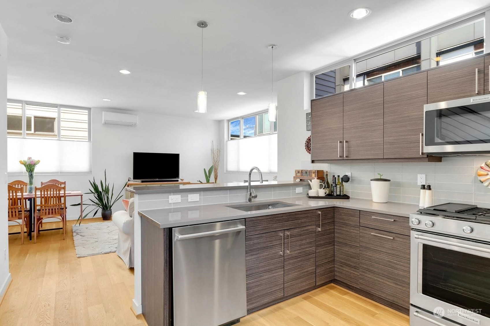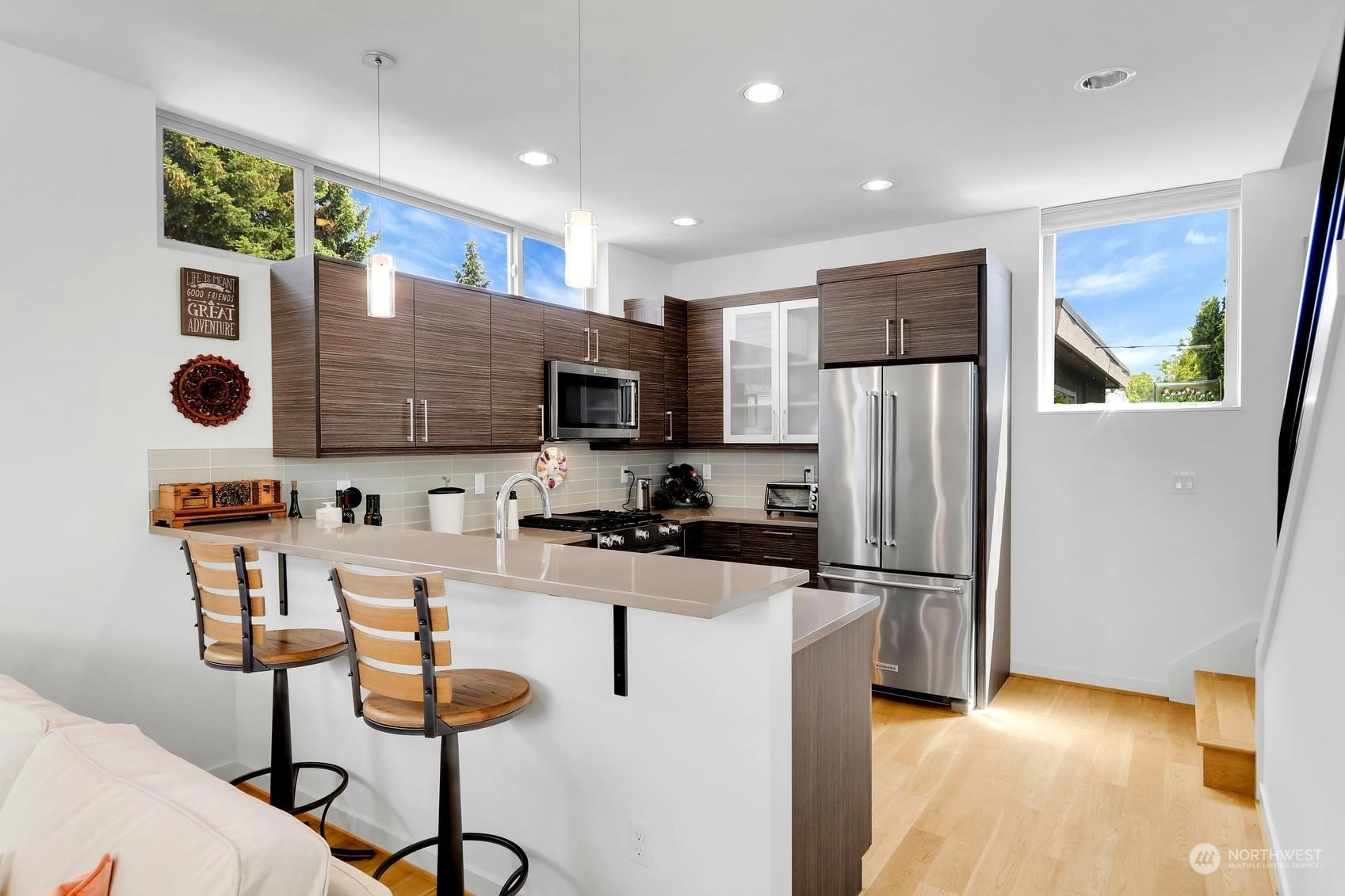 Discover unparalleled luxury and convenience in this like-new modern home, just steps from the vibrant Alaska Junction. Enjoy spectacular views of Puget Sound, Mt. Rainier, and the Olympic Mountains from the sun-drenched roof deck. This meticulously crafted, 4 Star Built Green home boasts three levels of luxurious living with a spacious kitchen featuring custom accents and premium stainless steel appliances. Additional features include split duct heating and cooling, on-demand hot water, a secure garage, fully paid sewage capacity charge, and no homeowner dues. With exceptional walkability to shops and restaurants, this home offers the perfect blend of modern living and urban convenience. Don't miss this opportunity to own a piece of luxury