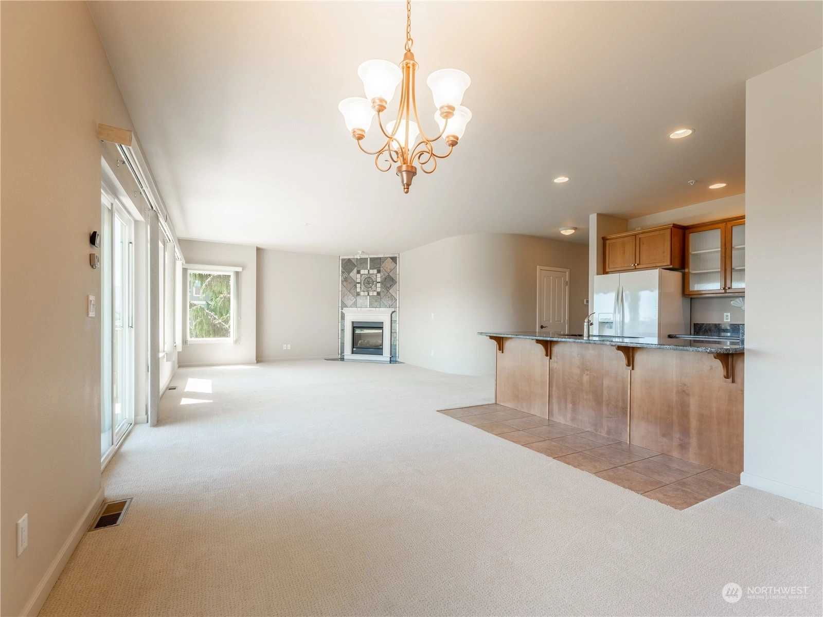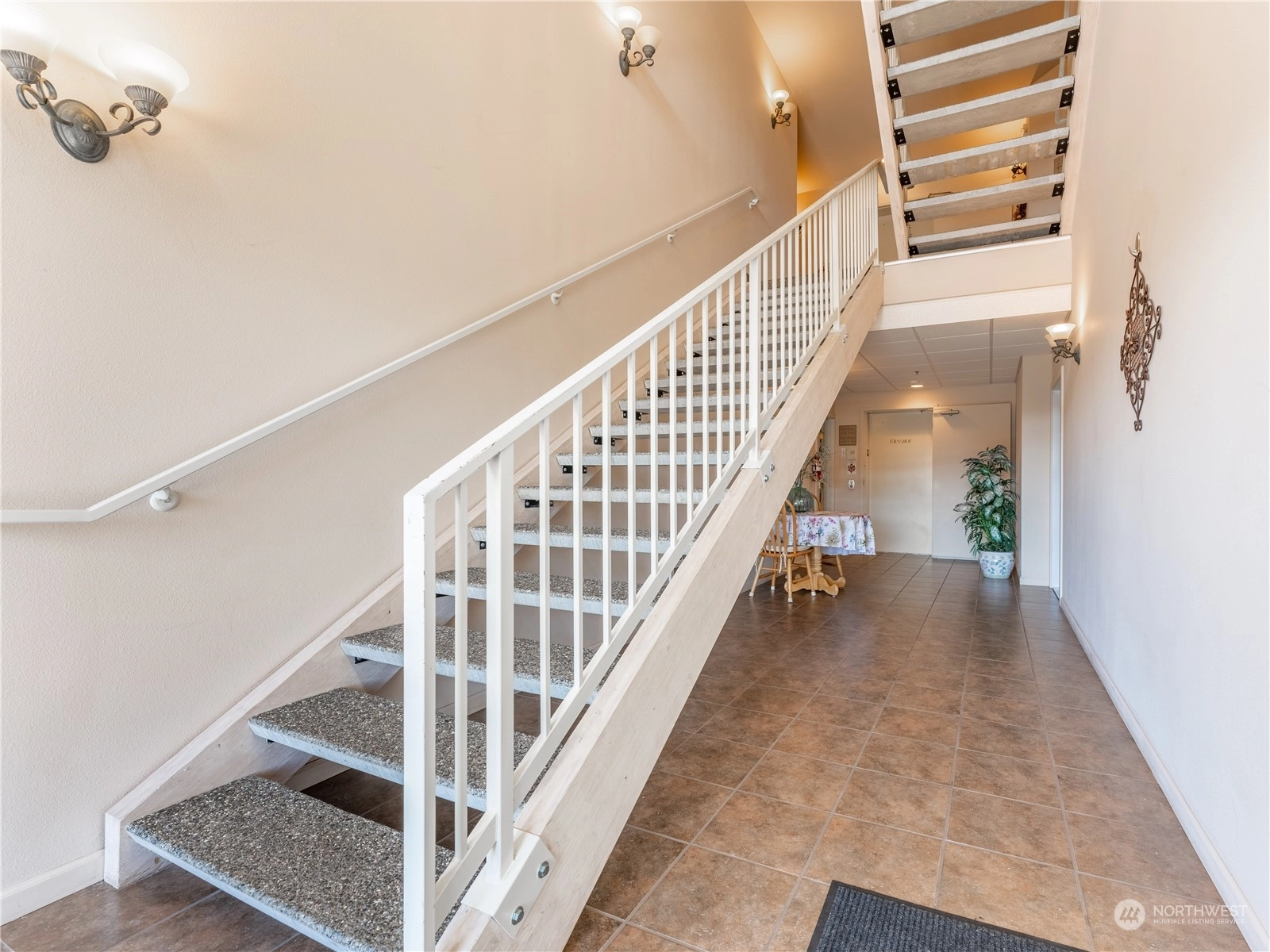 Welcome to Cherry Lane Condos where you can sit back, relax and enjoy a quiet easy life. This well maintained end unit is move-in ready. You'll appreciate the open great room where guests can visit from the living, dining and kitchen. A cozy electric fireplace provides warmth and ambiance. The large primary bedroom and 5-piece bath will have you believing you're living in a five-star resort. Enjoy the east facing balcony that is perfect for morning coffee in the sun and afternoon shade for evening BBQ's. Extra deep 2 car garage with work bench continues inside to the stairs or elevator. Unit includes a large storage room adjacent to the unit and a second one off the balcony. RV parking is available for residents at a reasonable fee.