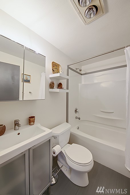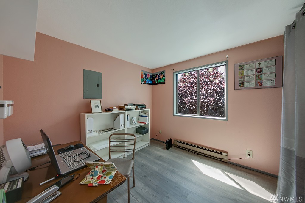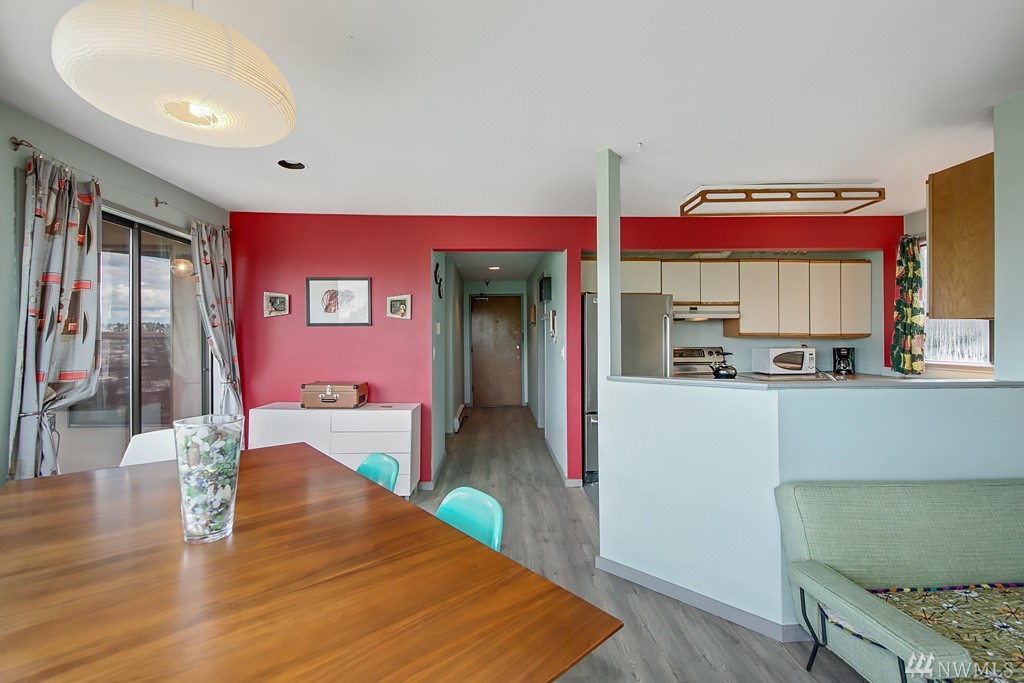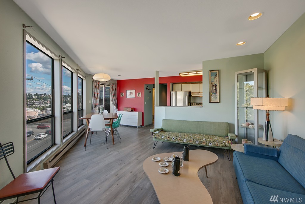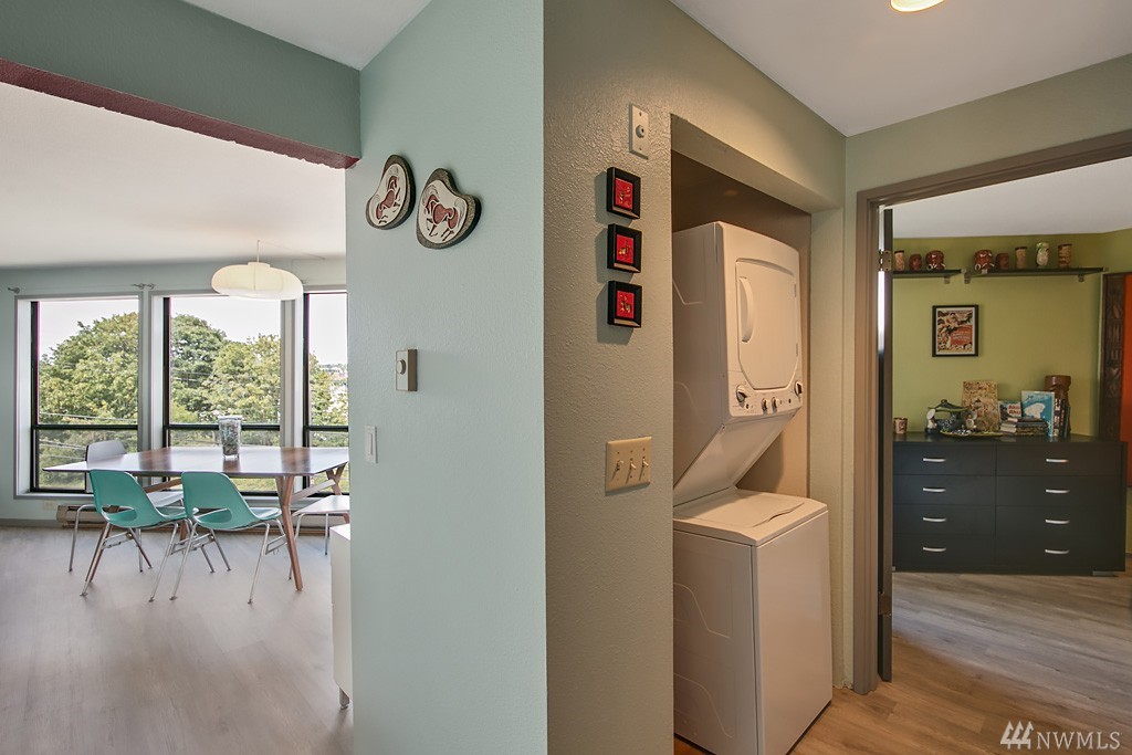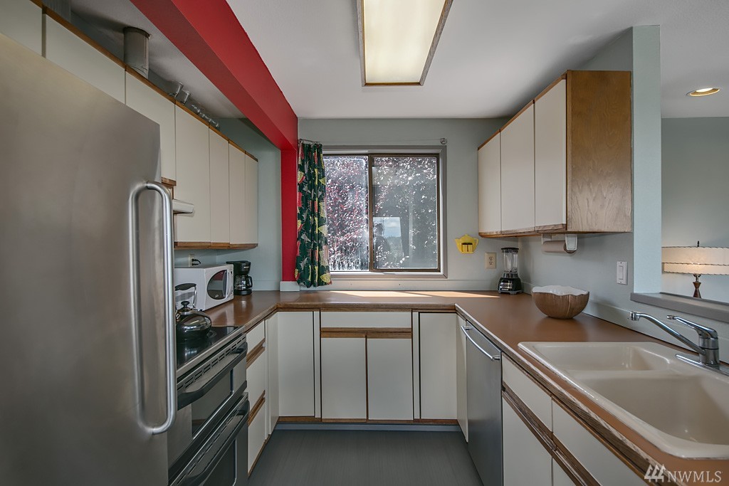 Enjoy the lovely, above it all views from quiet, top floor, spacious 2 bedroom unit in self-managed, smaller building. Spacious, light, open condo that is immaculate inside & out. Cooks kitchen, large dining room, wood burning fireplace, even a Juliet balcony. Secure, Covered parking in garage & an over-sized storage unit. There is a large, courtyard patio for all units to enjoy. Near Discovery Park, Ballard Locks, Fisherman's Terminal, Interbay golf, restaurants & coffee. Welcome home!