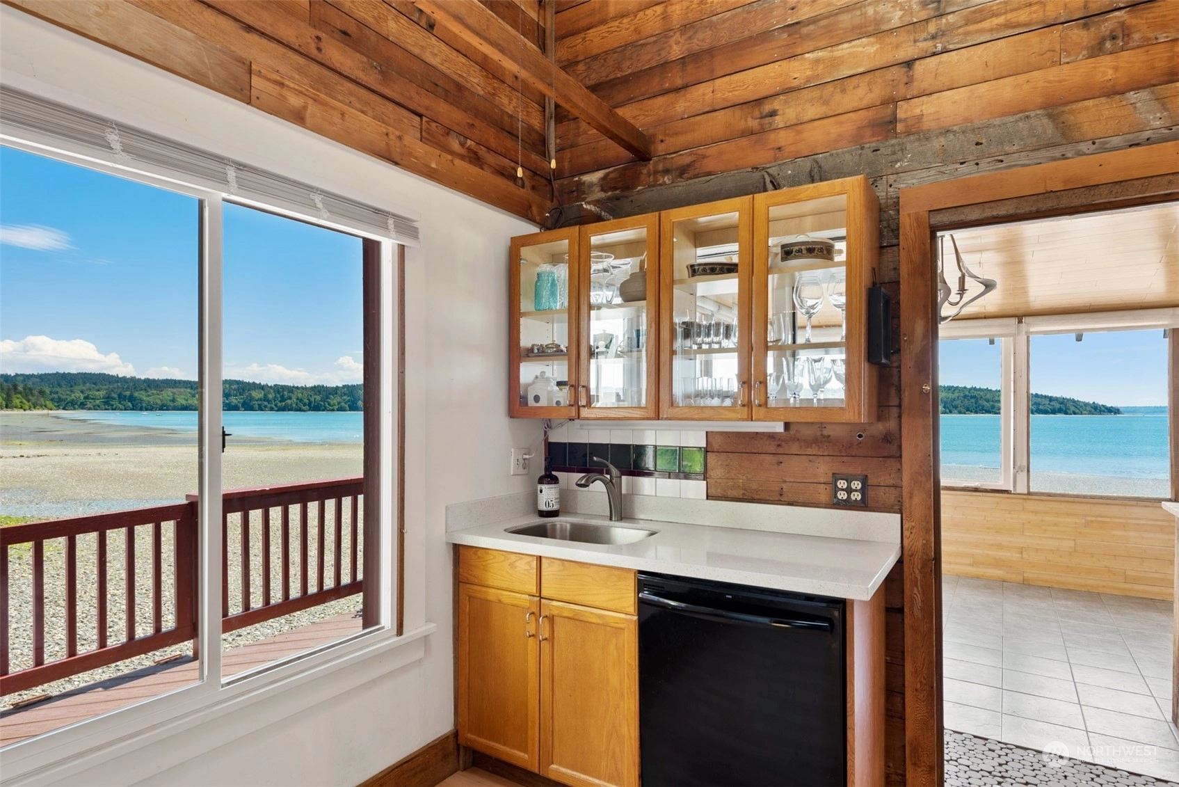 Live on Burton Beach in this unique waterfront home is like no other, you are living on a 100 feet no bank waterfront home with private beach and 180 degree unblocked view of Quartermaster Harbor. Enjoy the activities such as standing paddle boating, kayaking, jet skiing, etc. 1 bedroom, 1.5 bath, 1,120 sq feet home on flat lot. This beautiful home has lots of large window with natural light. The unblocked harbor view of bonus room can be redone into a 2nd bedroom or use for office or art studio. Everyday enjoy waking up to the beautiful sunrise and enjoy dining to the sunset. See yourself living the high life on the water and lots of relaxation. roof was done in 2017. Great for BnB.