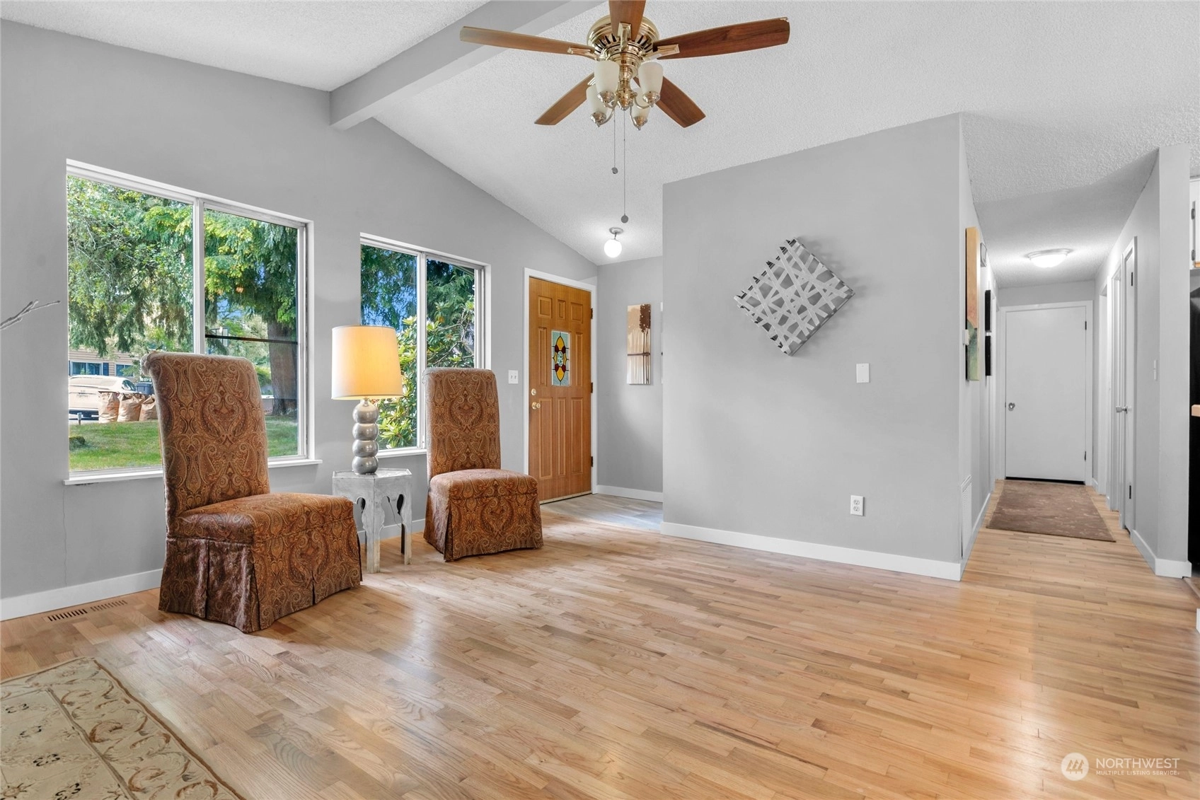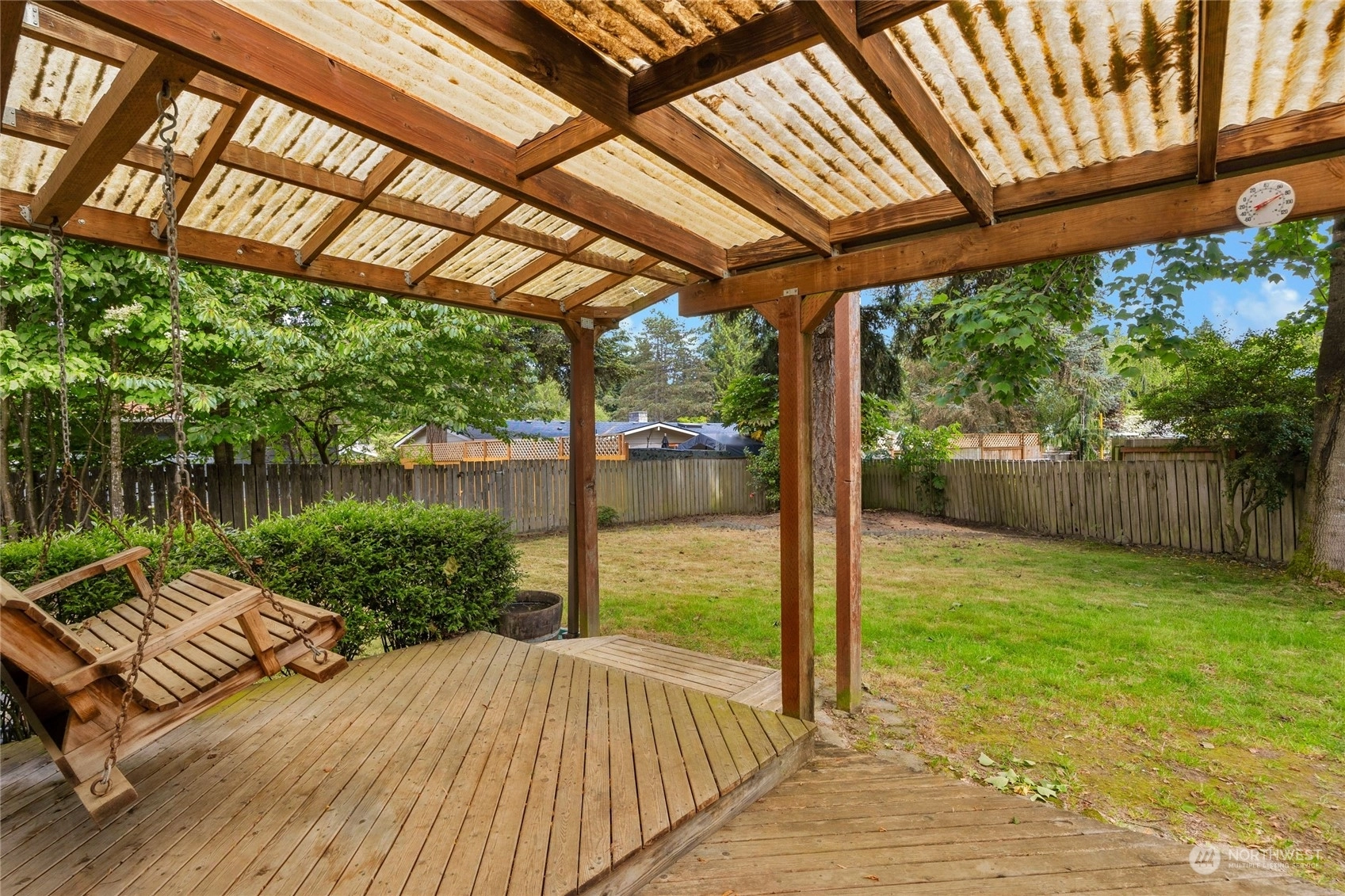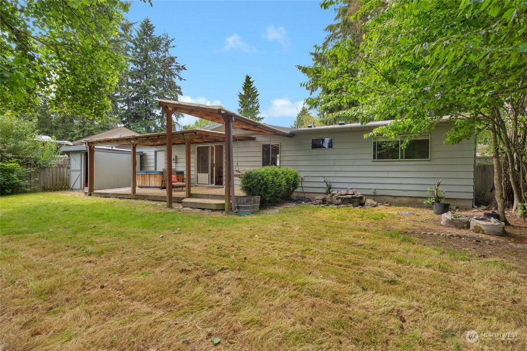 Affordable house on a large level lot, in the highly desirable Juanita community. Close to shopping and easy access to I-405 for a short commute. Quiet location in a cul-de-sac. 3 bed 1 bath rambler with large two car garage and totally fenced back yard. RV parking along side the house. Freshly painted inside and out, refinished hardwoods throughout and newly remodeled bath. Covered deck leading to level back yard. Vacant, easy to tour....