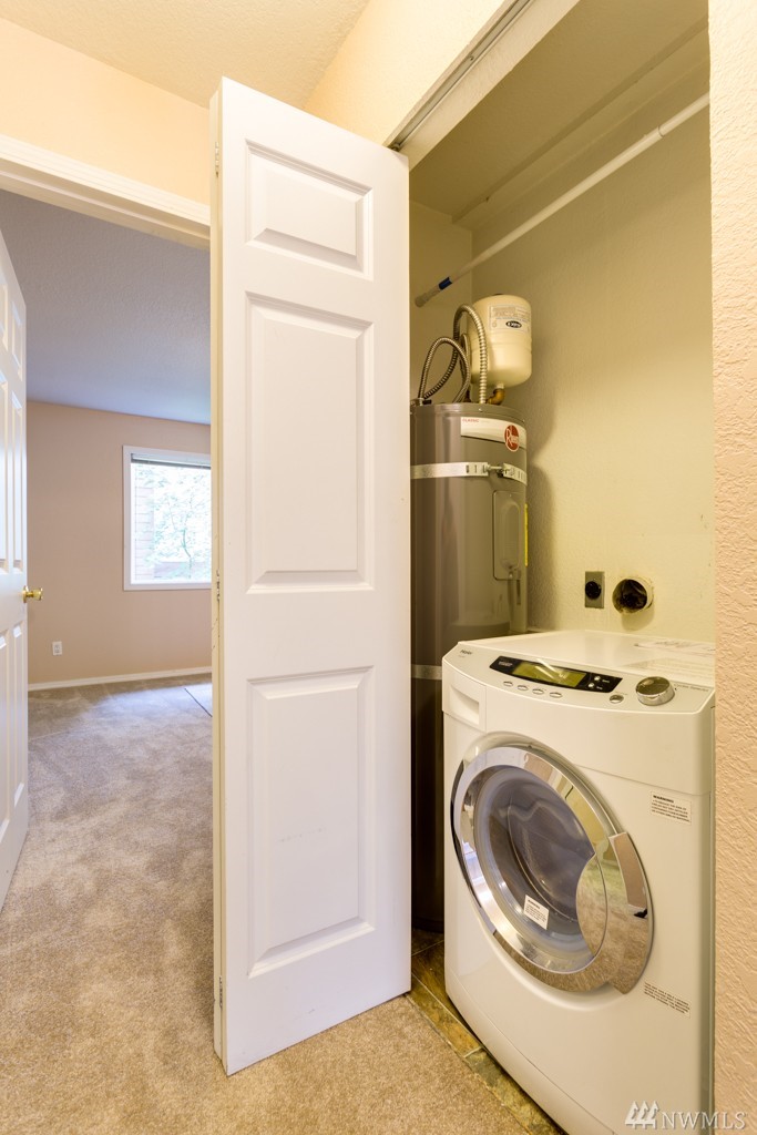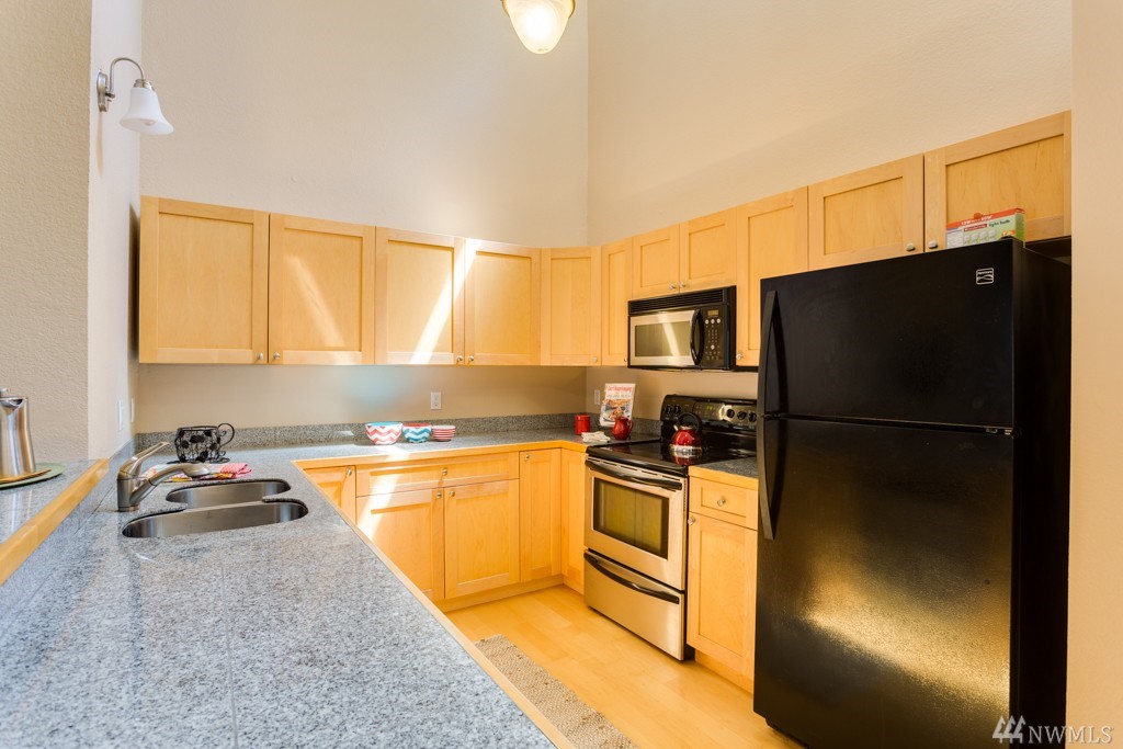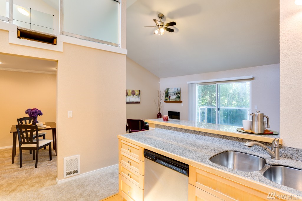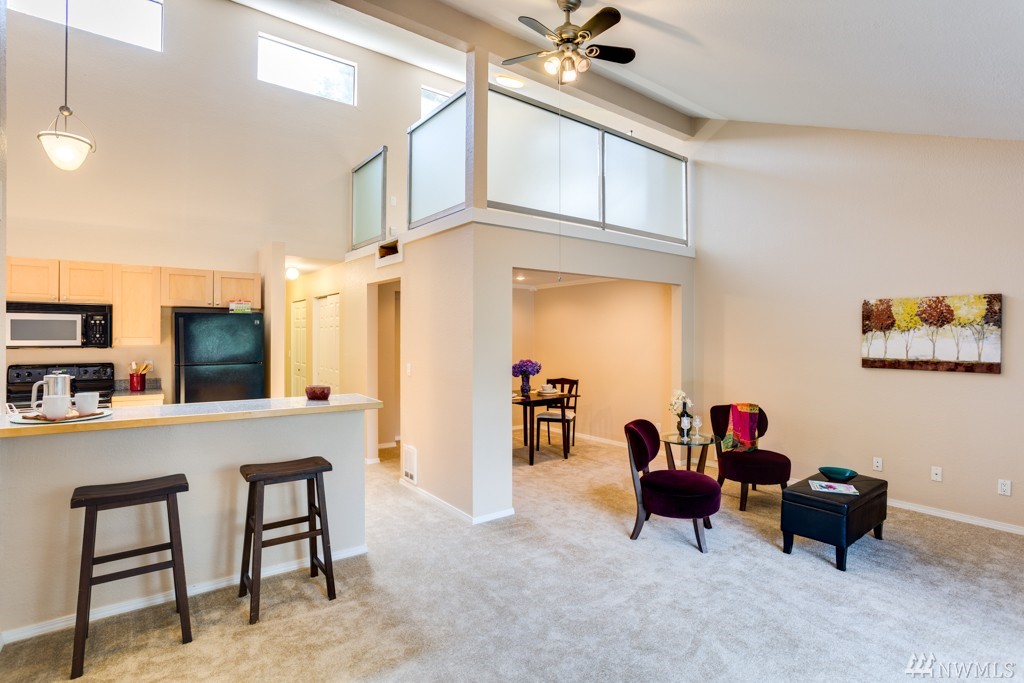 Move-in ready! This 2 bed, 1.75 bath condo in Juanita makes for the perfect new home. Vaulted ceilings with many windows flood living room & kitchen with natural light. Open kitchen offers many cabinets & granite counters. Host larger gatherings in formal dining area. Loft great for office or media room. Washer/dryer in unit. Freshly painted & new carpet. 1 uncovered parking space + garage. Easy access to Totem Lake P&R, downtown Kirkland, Lake Washington, shopping, & more!