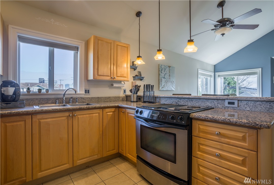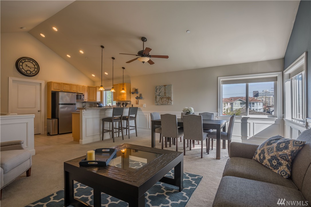 Beautiful 3BR 2BA Townhome in the heart of Everett! 3 level townhome with Top-floor open concept living at its best! Vaulted ceilings, territorial views, gas fireplace, granite counters, breakfast/eating bar, radiant (hydronic) heat, stainless steel appliances. Master bedroom with walk in closet. Central location with a short walk to the Everett Event Center, restaurants & theaters, and access to I-5 blocks away. Great HOA in this 6-unit complex. 1-car attached garage w/Addt'l spot in front.