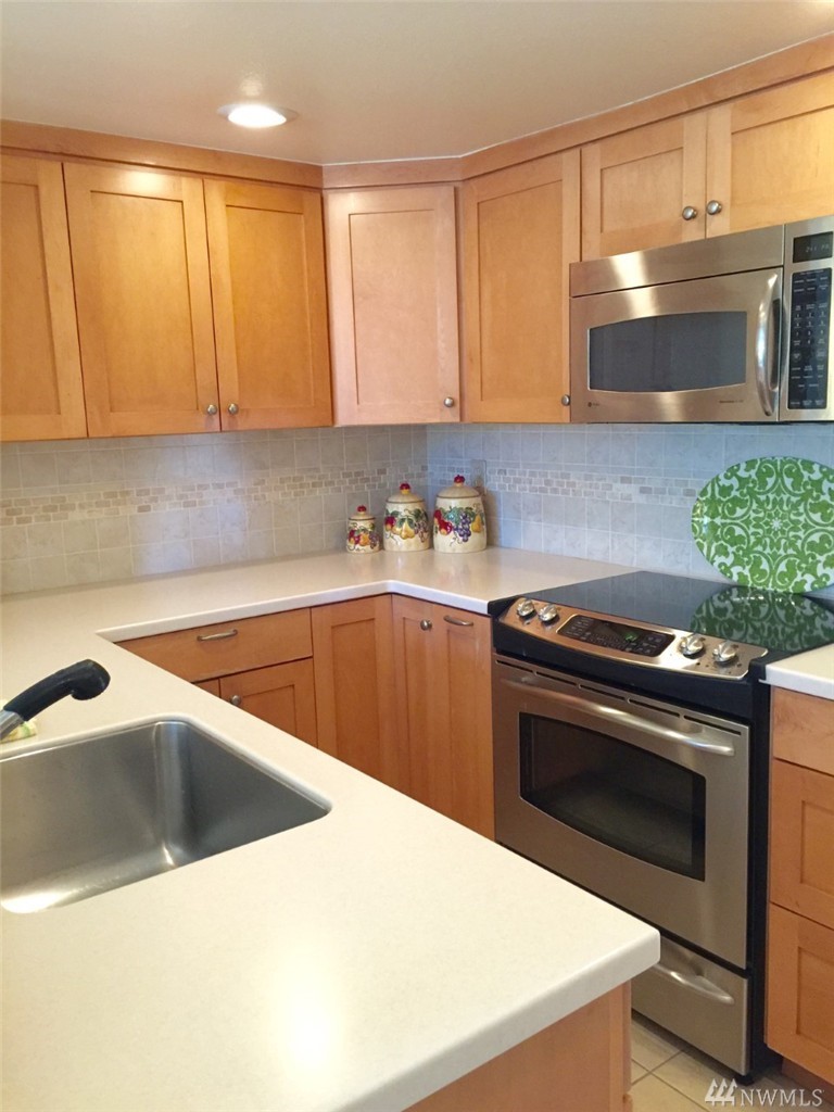 Beautiful top floor,private entrance with no common walls! Extremely light and bright. Completely redone with new carpet, paint and tile. Recently remodeled kitchen with stainless appliances. Large Living and Dining Room with wood burning fireplace. Over sized Master Suite with 3/4 bath. Full size washer/dryer. New hot water tank and roof. Deck storage plus additional. Amazing views of Mt. Rainier. Community swimming pool, hot tub, tennis court and clubhouse. Seconds to EVERYTHING!