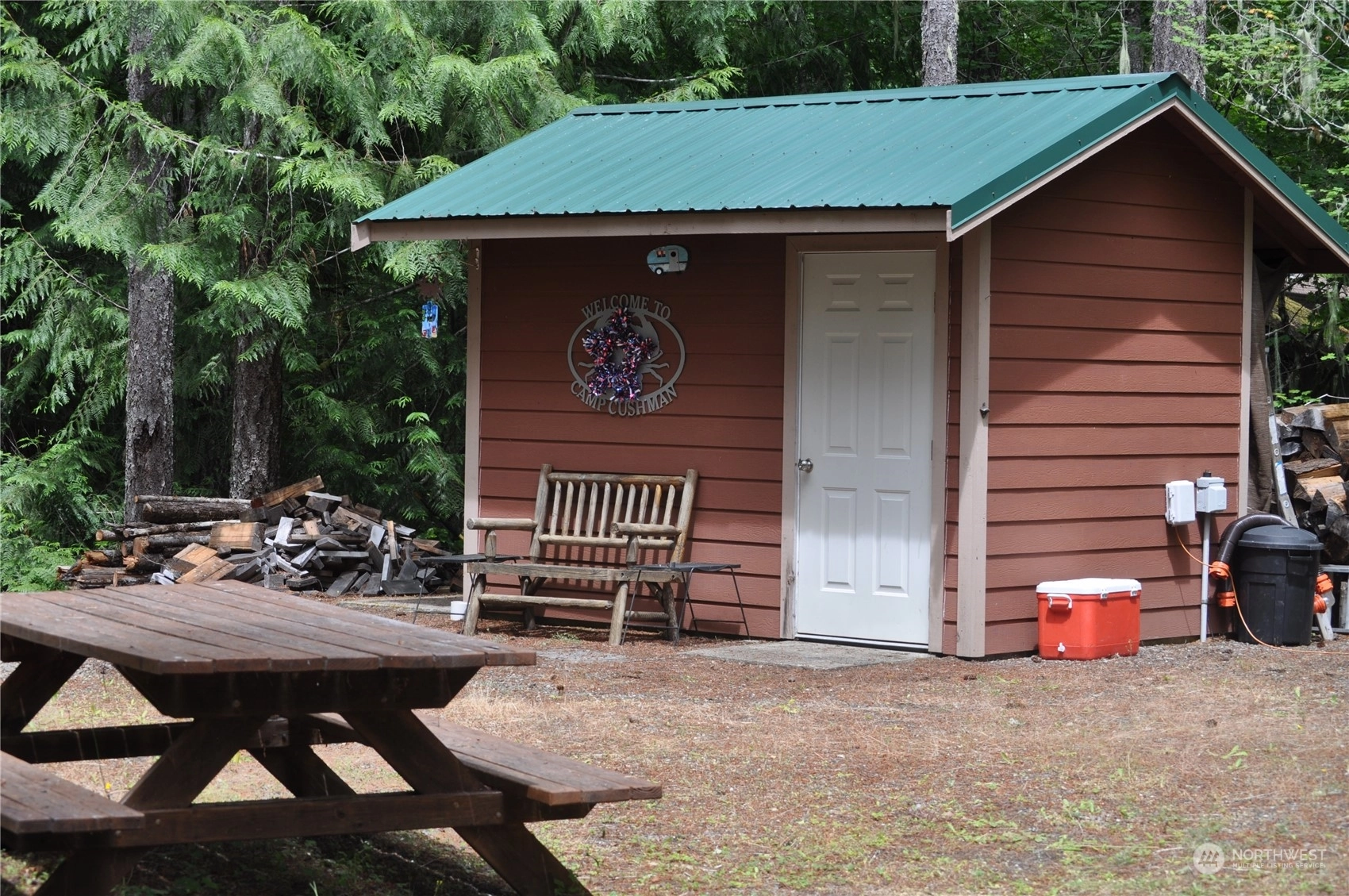 Beautiful, oversized lot (.35 acre) on quiet cul-de-sac overlooking a creek in Division 17. Close to the golf course and driving range. Two full RV hookups complete with power, water and septic, a third with power and water, plus a great private tent area above the creek. A trail in the cul-de-sac leads down to Lake Kokanee with a great fishing spot. Additionally, there is a very nice shed. All this in the Lake Cushman community that includes several parks, lakes, boat launches, pickleball and tennis courts, basketball court, golf, fishing, hiking and more. Come and make memories! Must see!