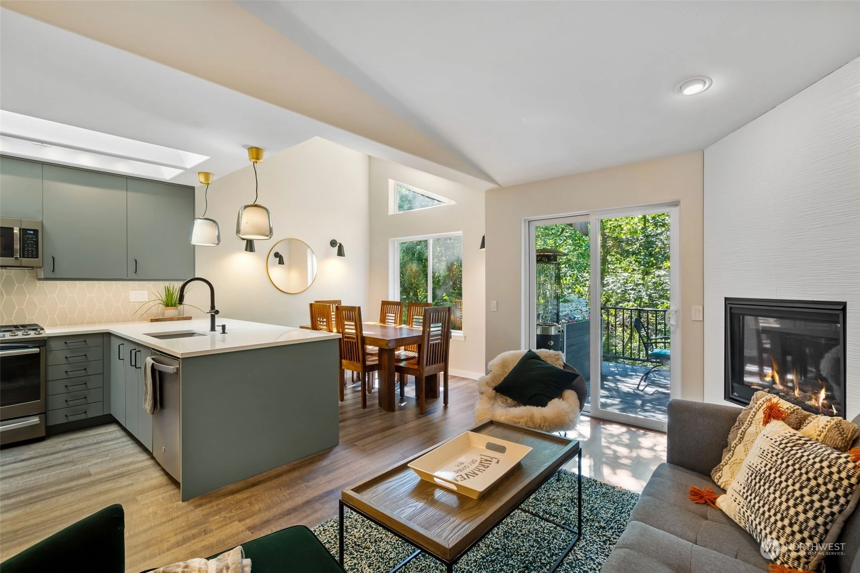 A rare Rosewood Lane condominium tucked away next to the Interurban Trail and Fairhaven Park. A stone's throw away from Fairhaven Village and all it has to offer. This beautifully cared for and updated 3 bdrm home is the perfect blend of easy living and high style. The gorgeous kitchen is bathed in natural light from the generous skylights in the cathedral ceiling. The living area and deck look out over mature trees and the Padden Creek nature area beyond. The home has been skillfully and stylishly updated. Fireplaces on both levels, new fixtures and furnace. Two bedrooms and full-bath on upper level and primary suite with 3/4 bath on main. Well run HOA. Attached, private garage w/30 AMP dryer outlet gives the option to charge a car.