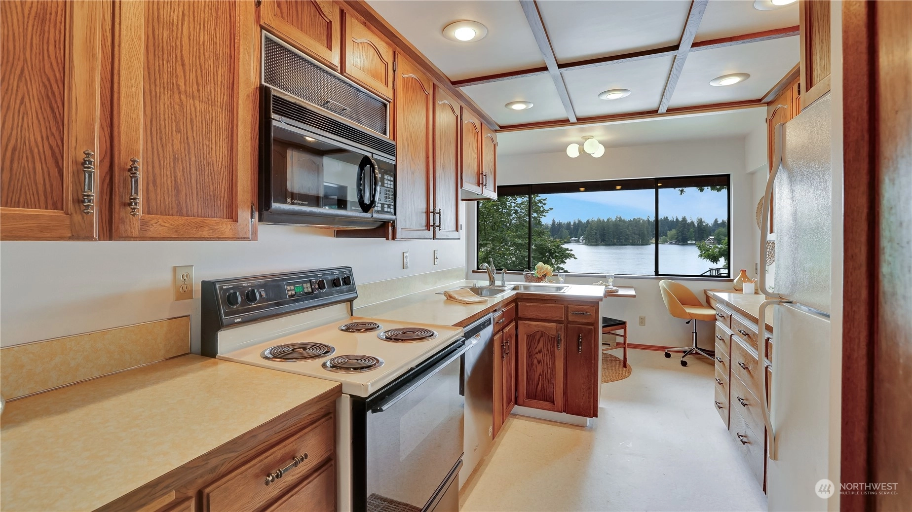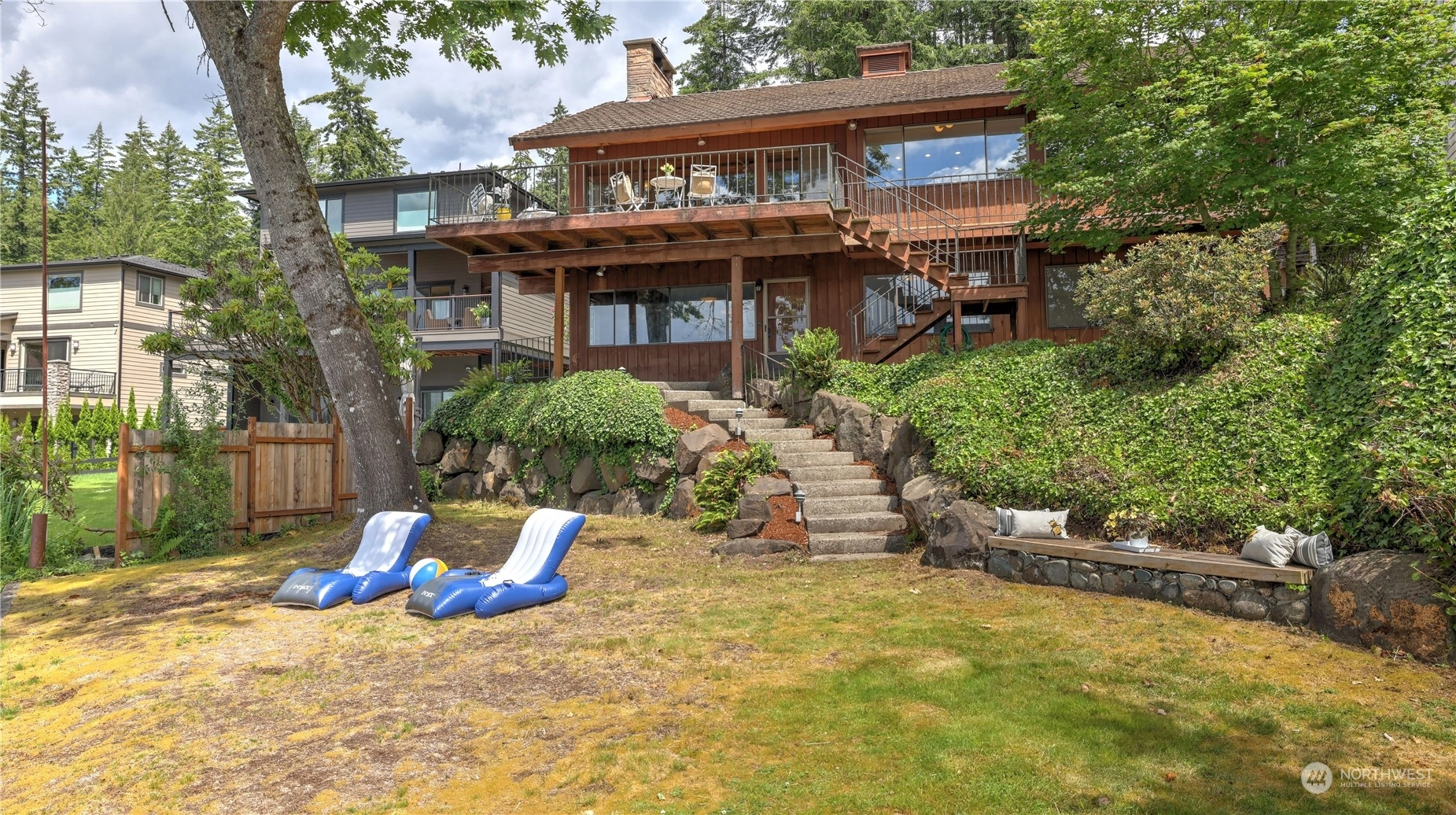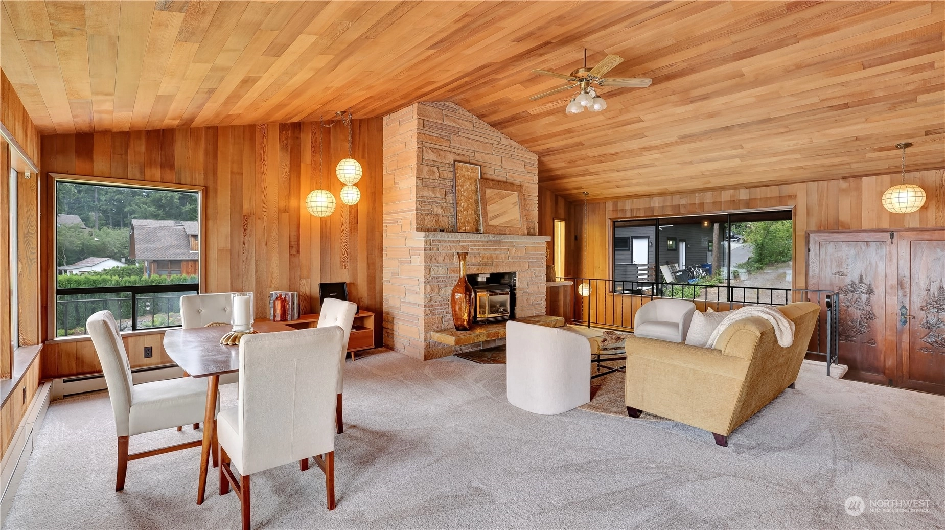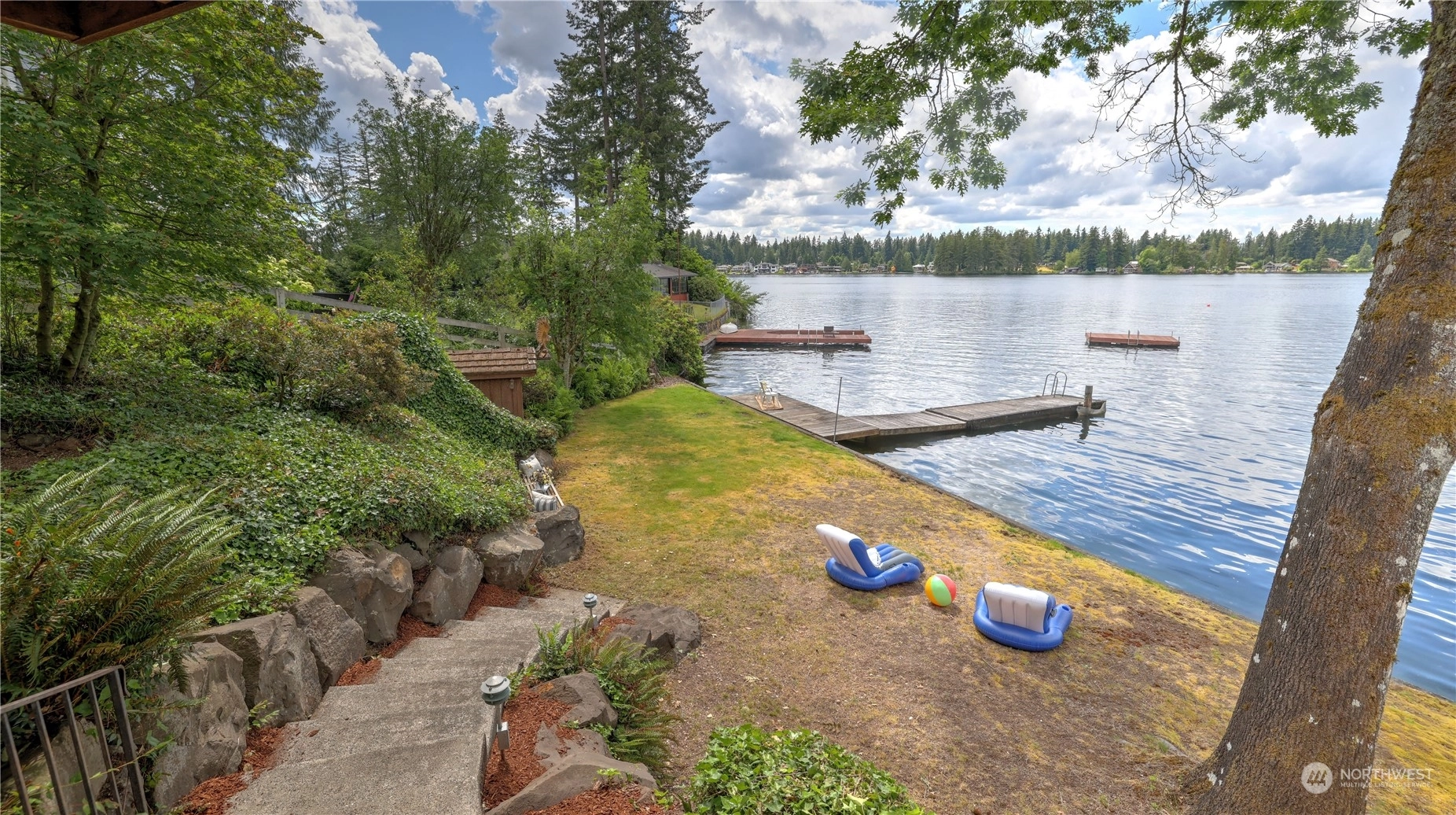 Refreshed & ready for summer don't miss this rare Lake Sawyer waterfront home. Enter this amazing property through custom engraved hardwood doors opening to a large living room w/a classic stone FPL & lake view. It has 4 large BR & 2 3/4 BTH & large family room. Enjoy the retro finishes while catching the incredible sunsets. This property offers boundless opportunities w/large deck, patio, low bank waterfront dock & a 3-car garage equipped with a compressor & mechanics pit. Large detached workshop office or game room with many possibilities. Boasting an extra 1-acre lot across St w/shop barn & multiple outbuildings room for toys horses or maybe a house? Minutes from a large park w/miles of trails. So many features that this is a must-see!
