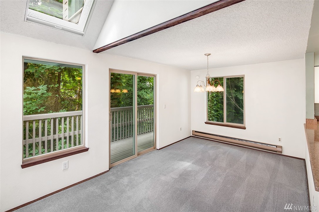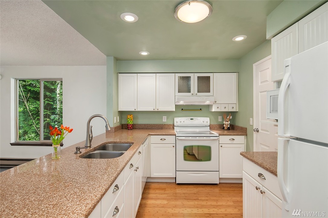 Welcome to Your Turn-Key Townhome in the Peaceful Renton Highlands Community of Forestbrook! Updated Kitchen with Quartz Counters, Bamboo Floors, Breakfast Bar & Includes All the Appliances. Spacious Living Room with Vaulted Ceilings, Skylights & Wood Burning Fireplace. Master Bedroom Complete with Full Master Bath & 2 Large Closets. Attached Two Car Garage, Newer Vinyl Windows, Private Back Balcony with Forest Views, Quiet End Unit & TONS of Storage Complete this Beautiful Townhome!