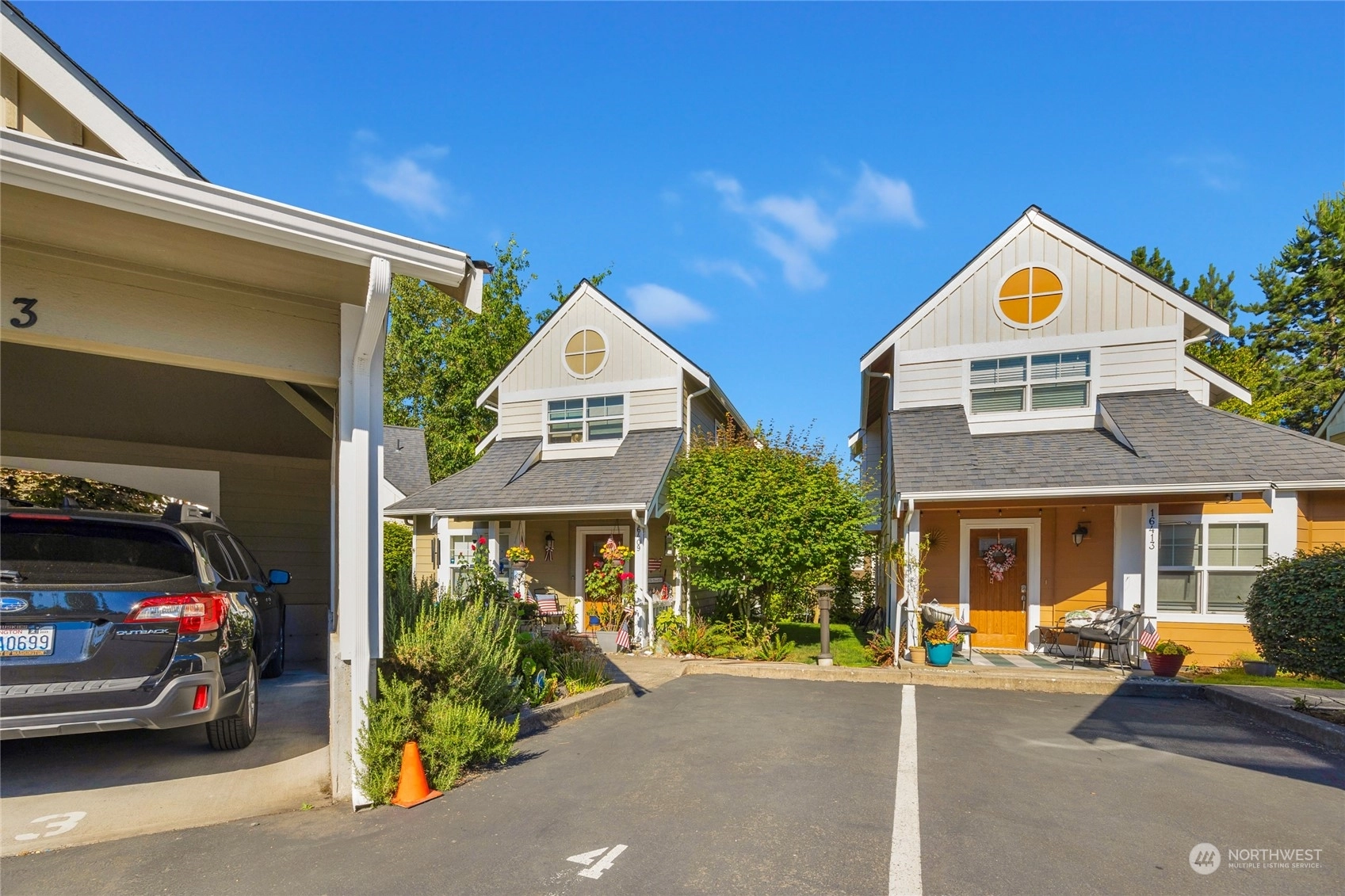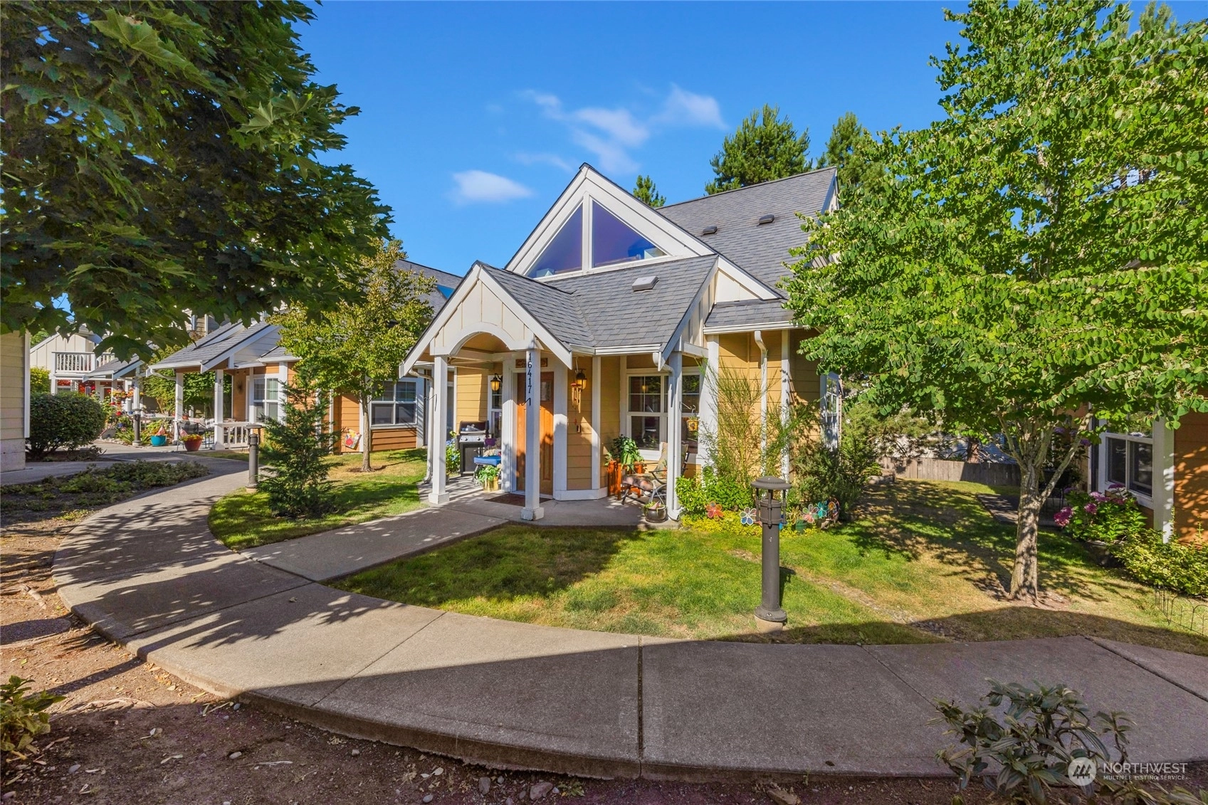 Charming standalone craftsman-style Cottage are rarely available in the quaint Cottagewood townhome community. A covered front porch & garden area welcome you. An open floor plan boasts a top-quality Kitchen w/Granite countertops, maple cabinets & SS appliances. Your living room is well set for entertainment and has a cozy FP. Dining room, Bedroom, modern full bath, finish off the main level. Impressive Primary Suite with vaulted ceilings, custom windows, sitting/bonus area, ¾ bath, & w/in closet upstairs. A very bright home with many windows plus recessed lighting. Superb location: Easy access to commuter hubs and transit options, nearby parks, shopping, & dining. Your carport is steps away + 1 more parking. No rental cap & affordable dues