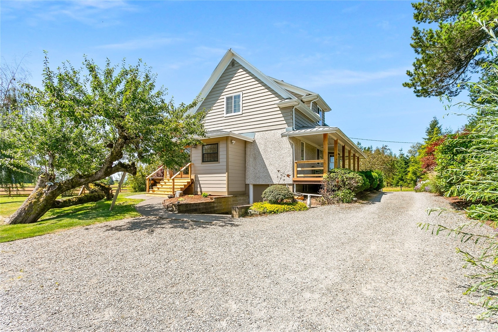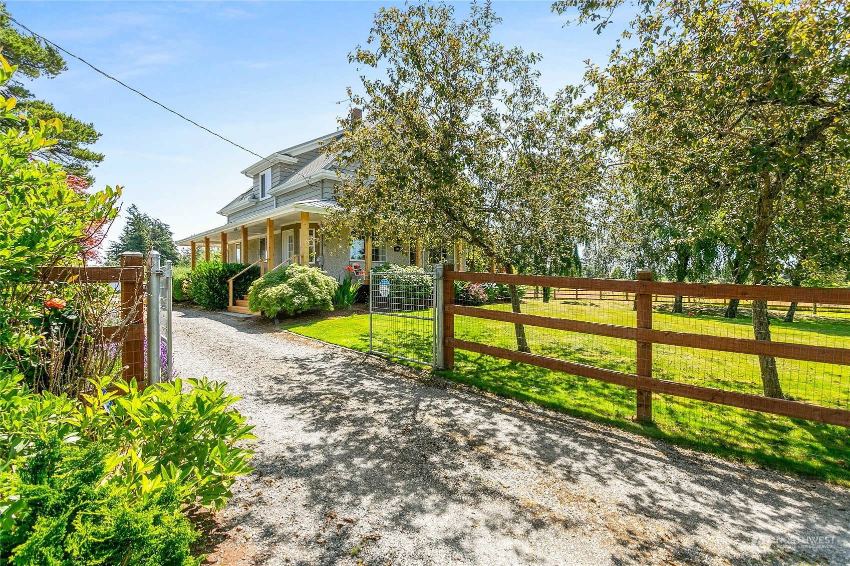 Modern living wrapped in rustic charm! Situated on 4.47 acres of fully fenced rolling pasture land, this lovingly restored 1910 farmhouse is that hard to find mini-farm you’ve been searching for. Recent updates include metal roofing on all structures, fencing, all new SS appliances, new high efficiency furnace and air-conditioning, new enclosed back porch and steps and an exceptionally well crafted cedar post and beam deck enclosure with French doors leading from the spacious living room. Well manicured orchard with 9 fruit trees and lush landscaping together with a barn with stables and huge loft area plus 3 attached garages, a carport and shop space. Truly one of the most charming properties on the market today and an exceptional value.