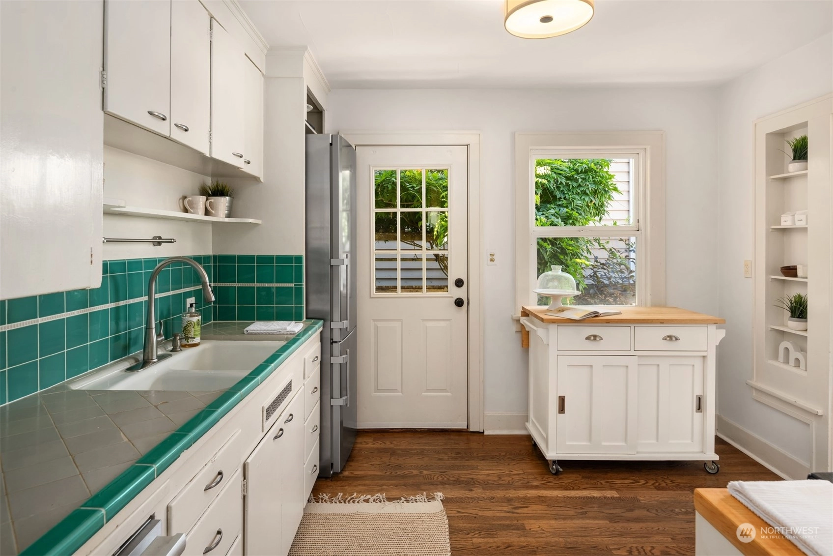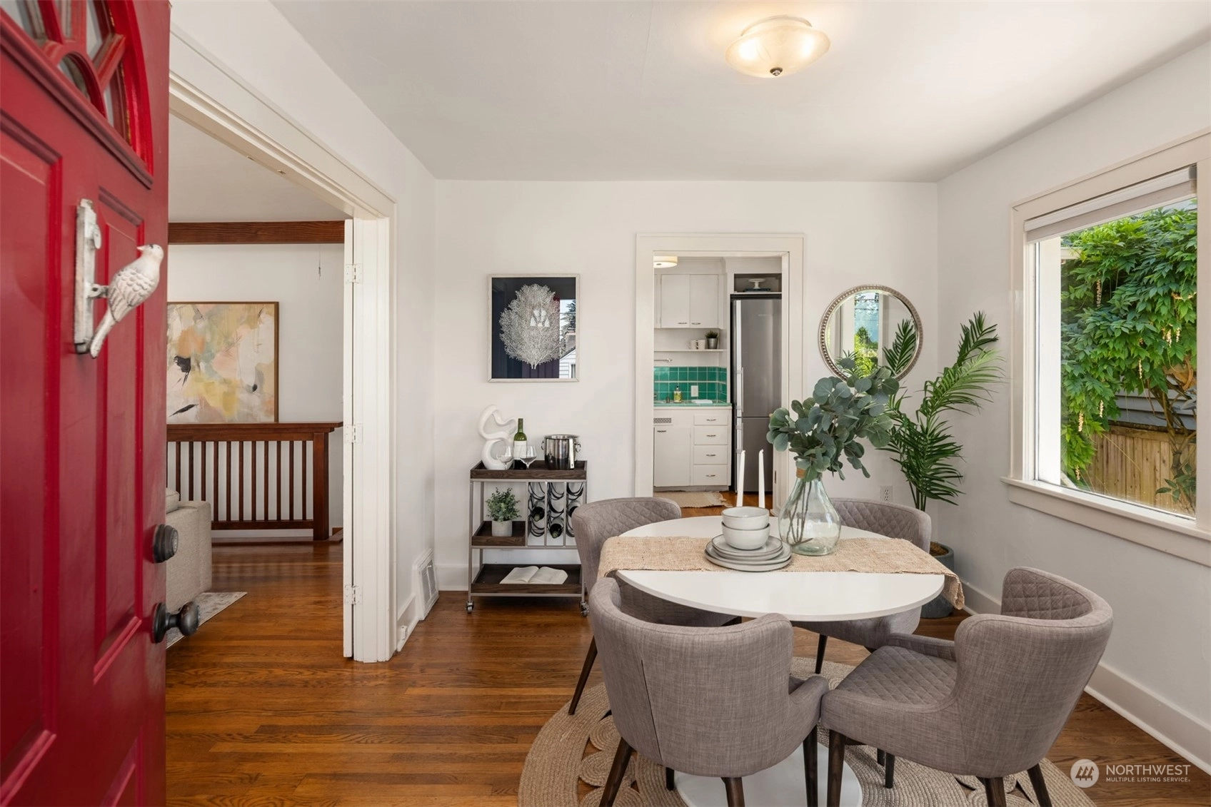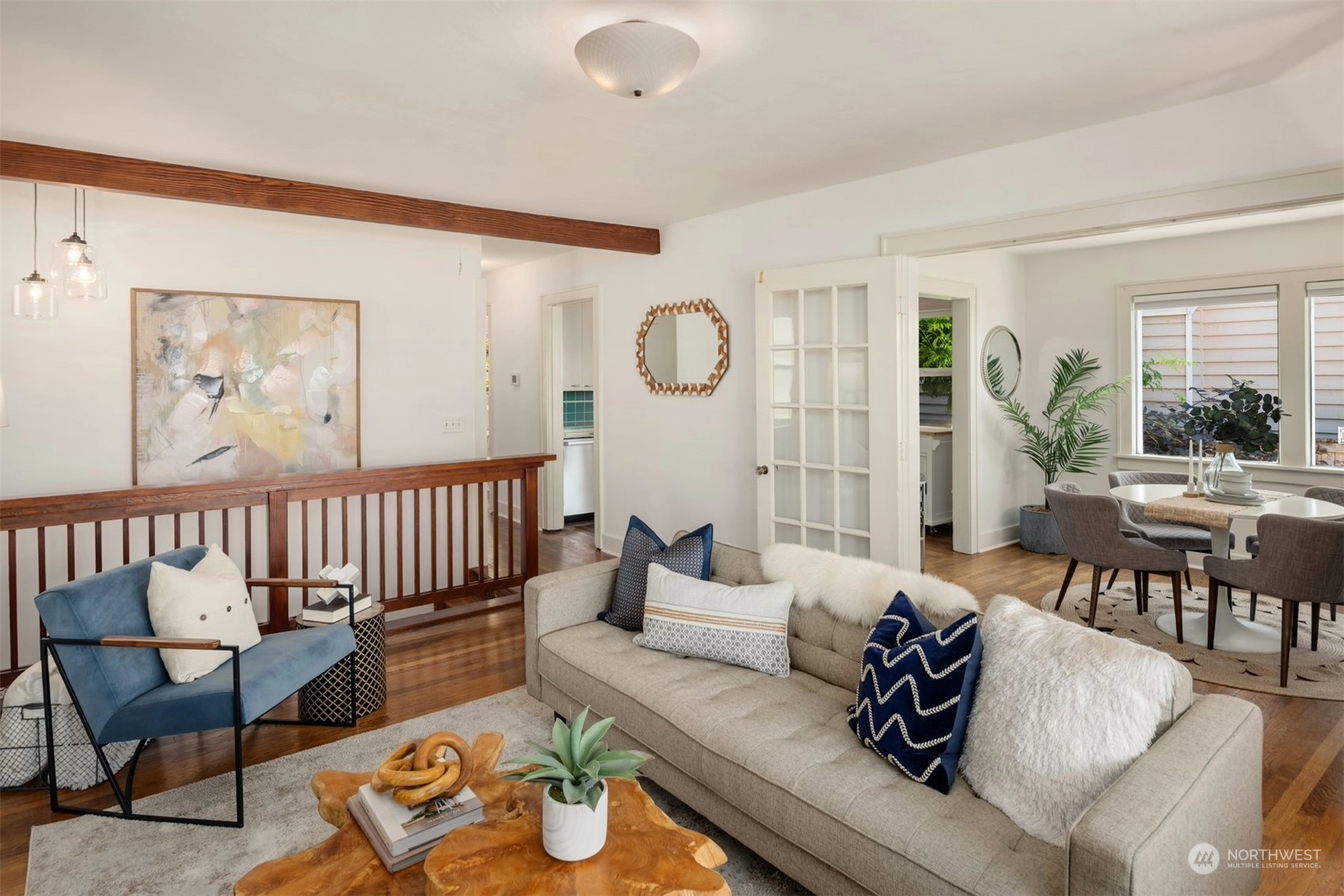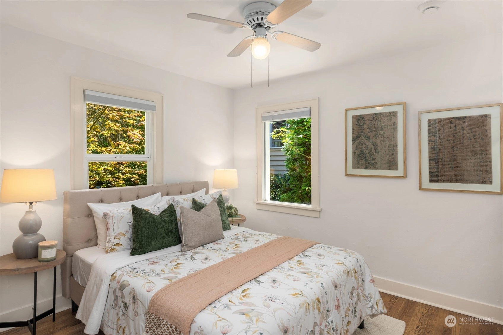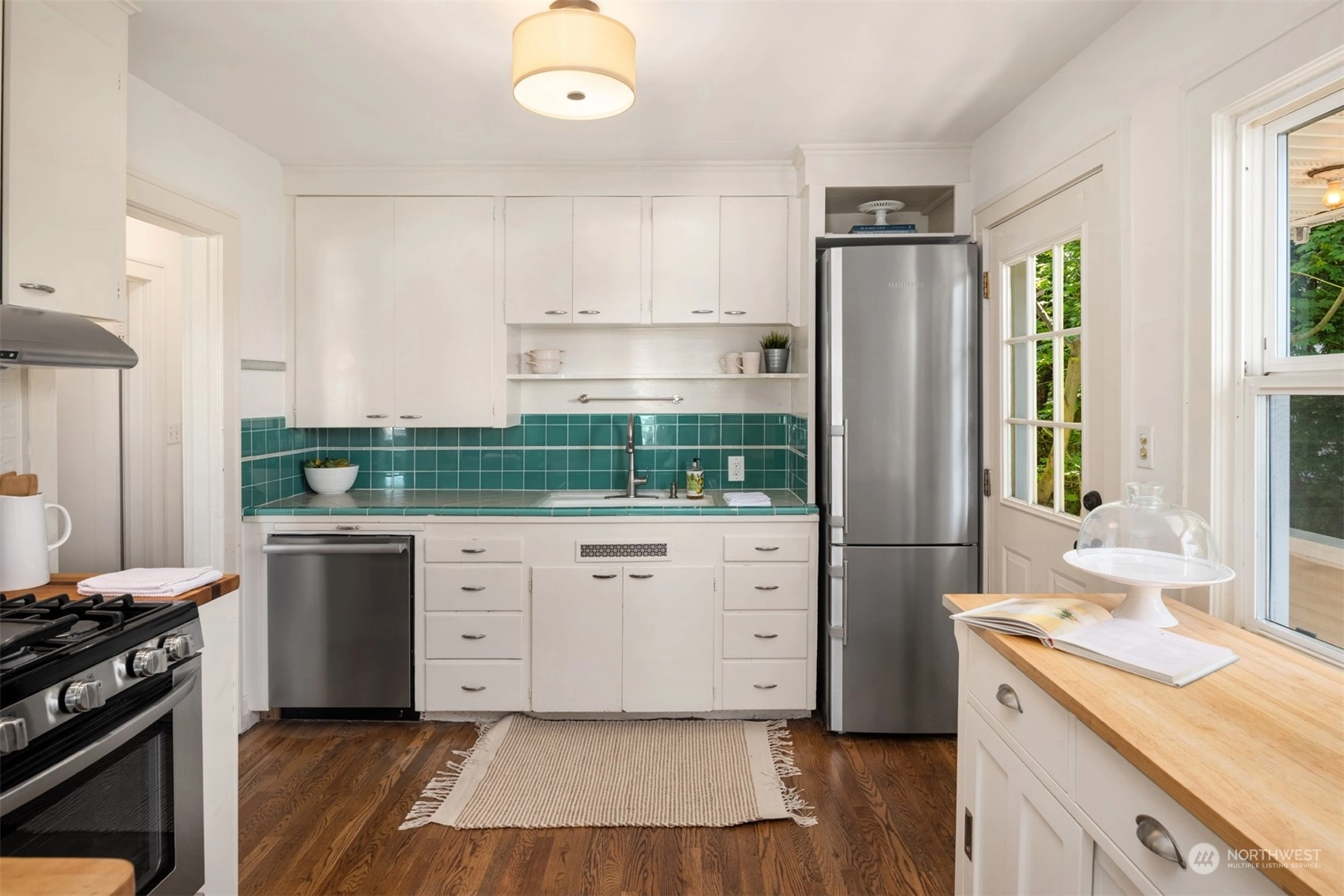 Sunsets over the Olympics and Craftsman charm will be the envy of your friends. This meticulously updated and lovingly cherished centenarian will delight you the minute you walk through the front door. Original hardwood floors glow throughout the main floor, two bedrooms, a full bath and the most darling kitchen with just the right amount of updates. Down the central open stairway you'll find another area for gathering, an additional bedroom and a spa like bath. Sunny raised vegetable beds and terraced gardens with seasonal blooms great you in the front where the backyard is an oasis with shaded gardens, flagstone patio, water feature and shed. Don't forget the workshop space for the hobbyist among us.
