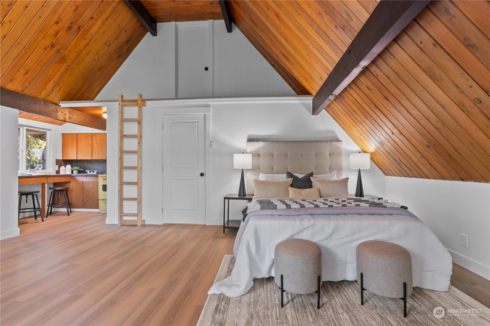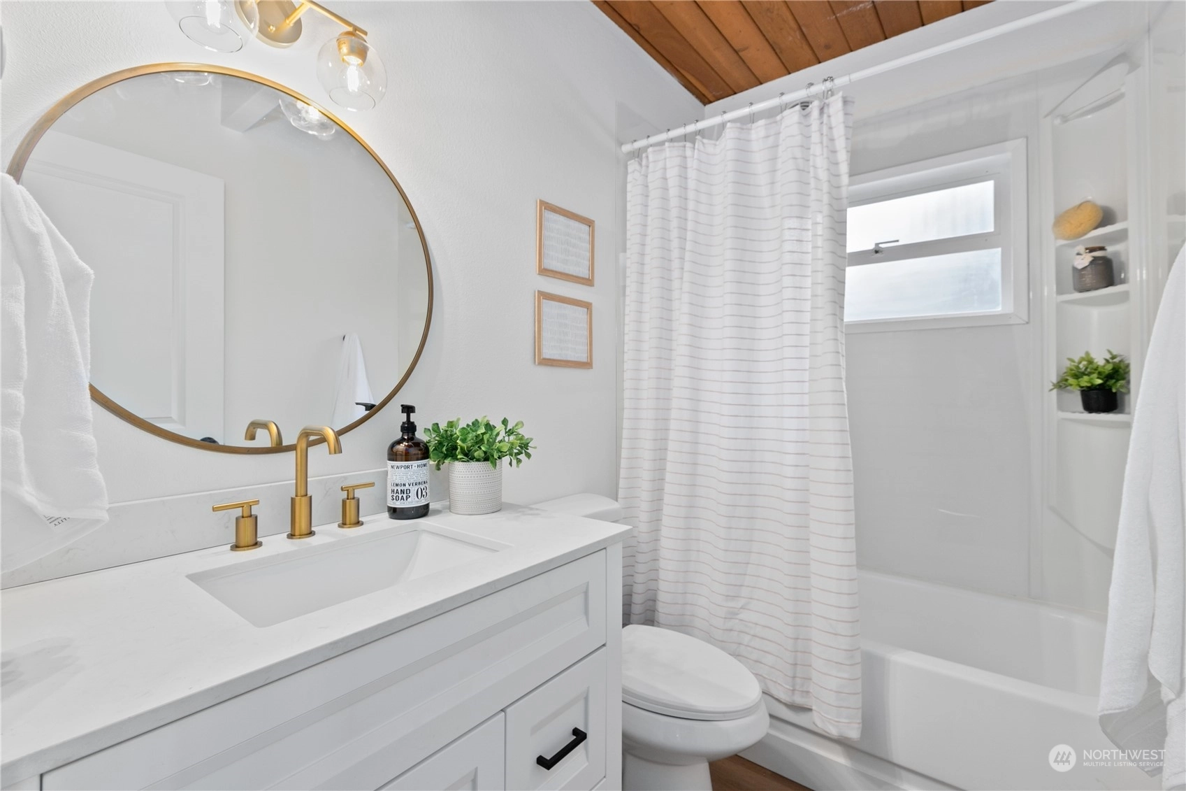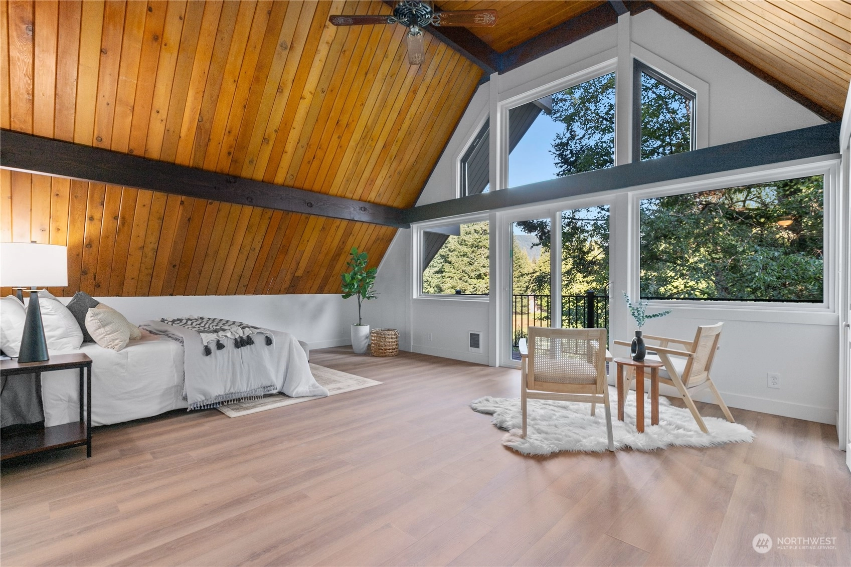 Imagine coming home to gorgeous, freshly updated interior design, & stunning, green fairway views! This spacious 4BR, 2.5BA dream home has been fully remodeled with thoughtful layout & quality finishes. New vinyl plank floors throughout, tongue & groove ceilings w/exposed beams, + stainless steel appliances create a luxury feel on your main level. Your upstairs features a huge primary suite w/vaulted ceilings/loft with storage space, picture windows, slider to balcony, & even a closet/office + kitchenette for a possible MIL space! Enjoy entertaining in the lower level media rm w/separate entrance, or hosting out on the fabulous deck. Excellent gate 1 location near golf course, marina, trails & more make this a can’t-miss property!