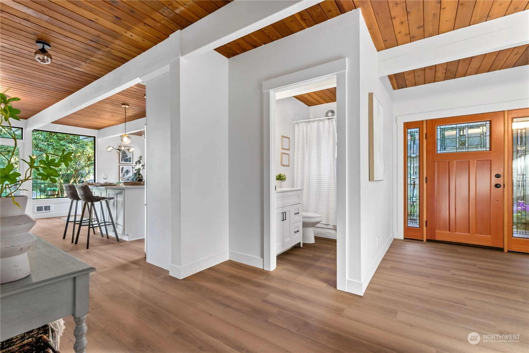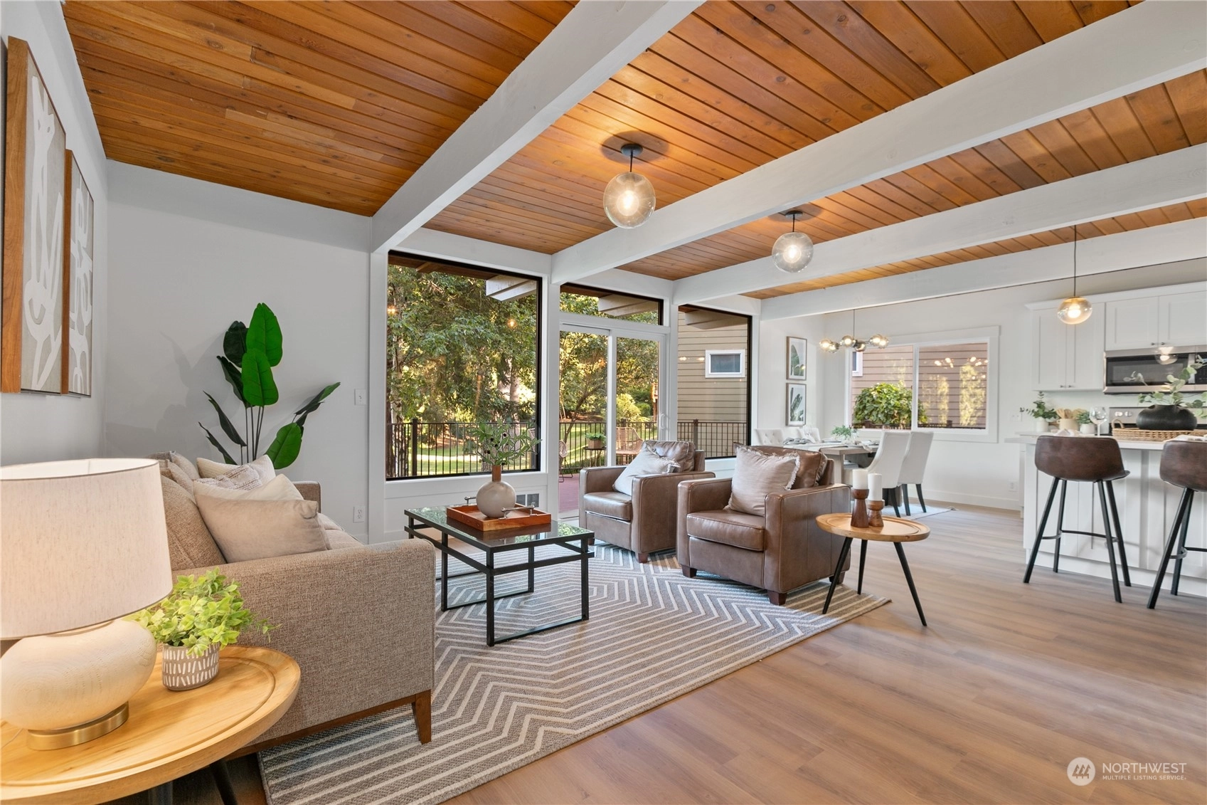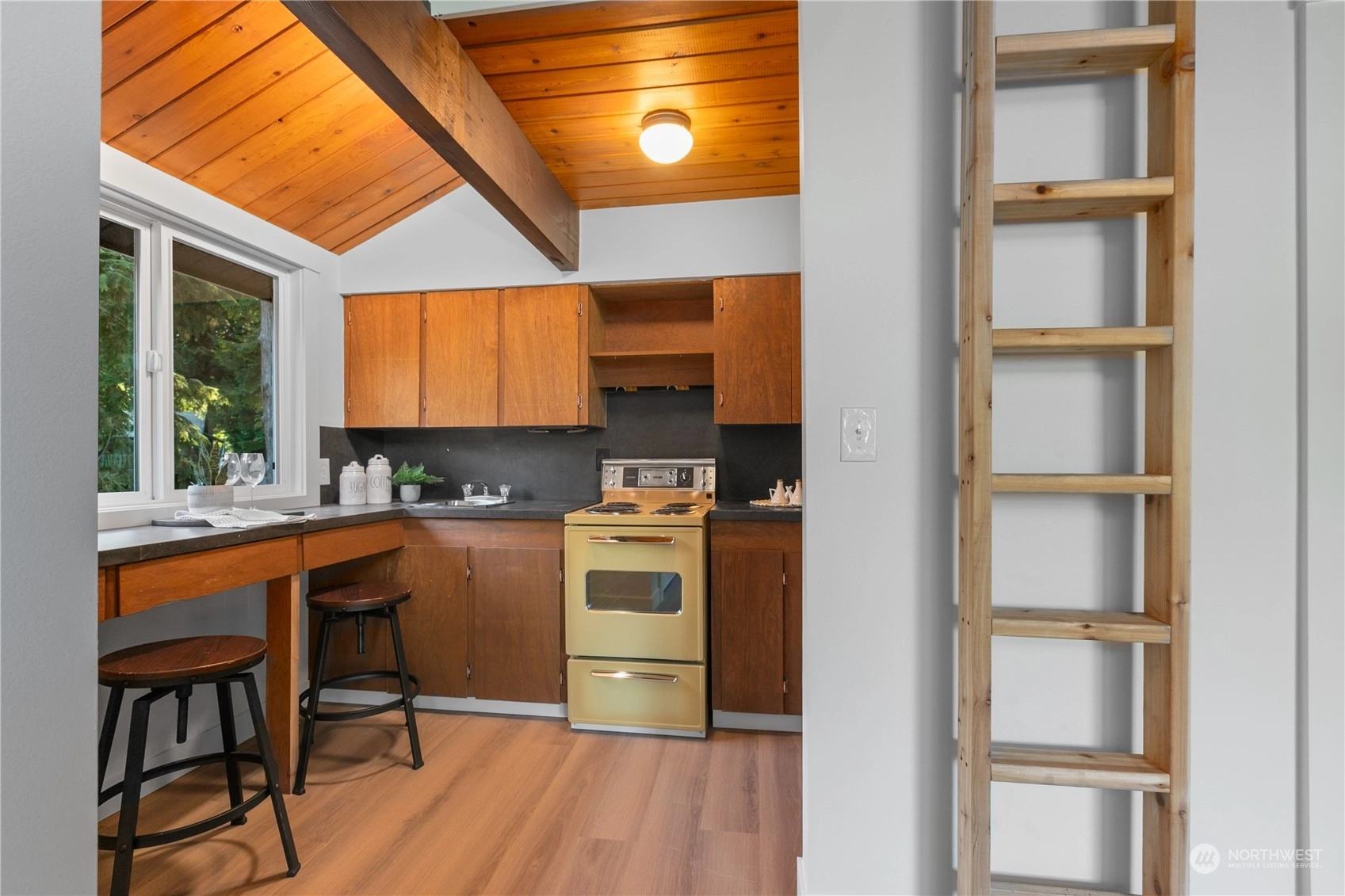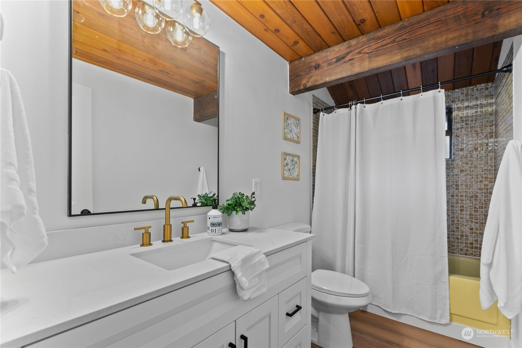 Imagine coming home to gorgeous, freshly updated interior design, & stunning, green fairway views! This spacious 4BR, 2.5BA dream home has been fully remodeled with thoughtful layout & quality finishes. New vinyl plank floors throughout, tongue & groove ceilings w/exposed beams, + stainless steel appliances create a luxury feel on your main level. Your upstairs features a huge primary suite w/vaulted ceilings/loft with storage space, picture windows, slider to balcony, & even a closet/office + kitchenette for a possible MIL space! Enjoy entertaining in the lower level media rm w/separate entrance, or hosting out on the fabulous deck. Excellent gate 1 location near golf course, marina, trails & more make this a can’t-miss property!