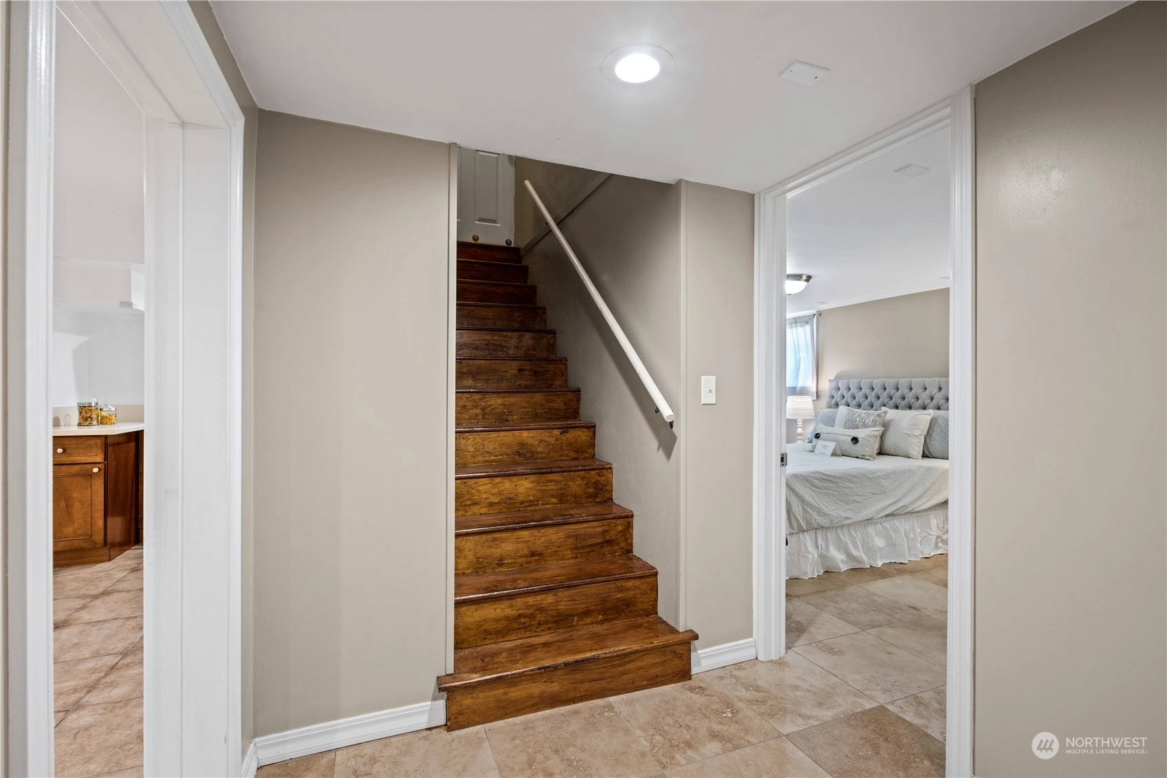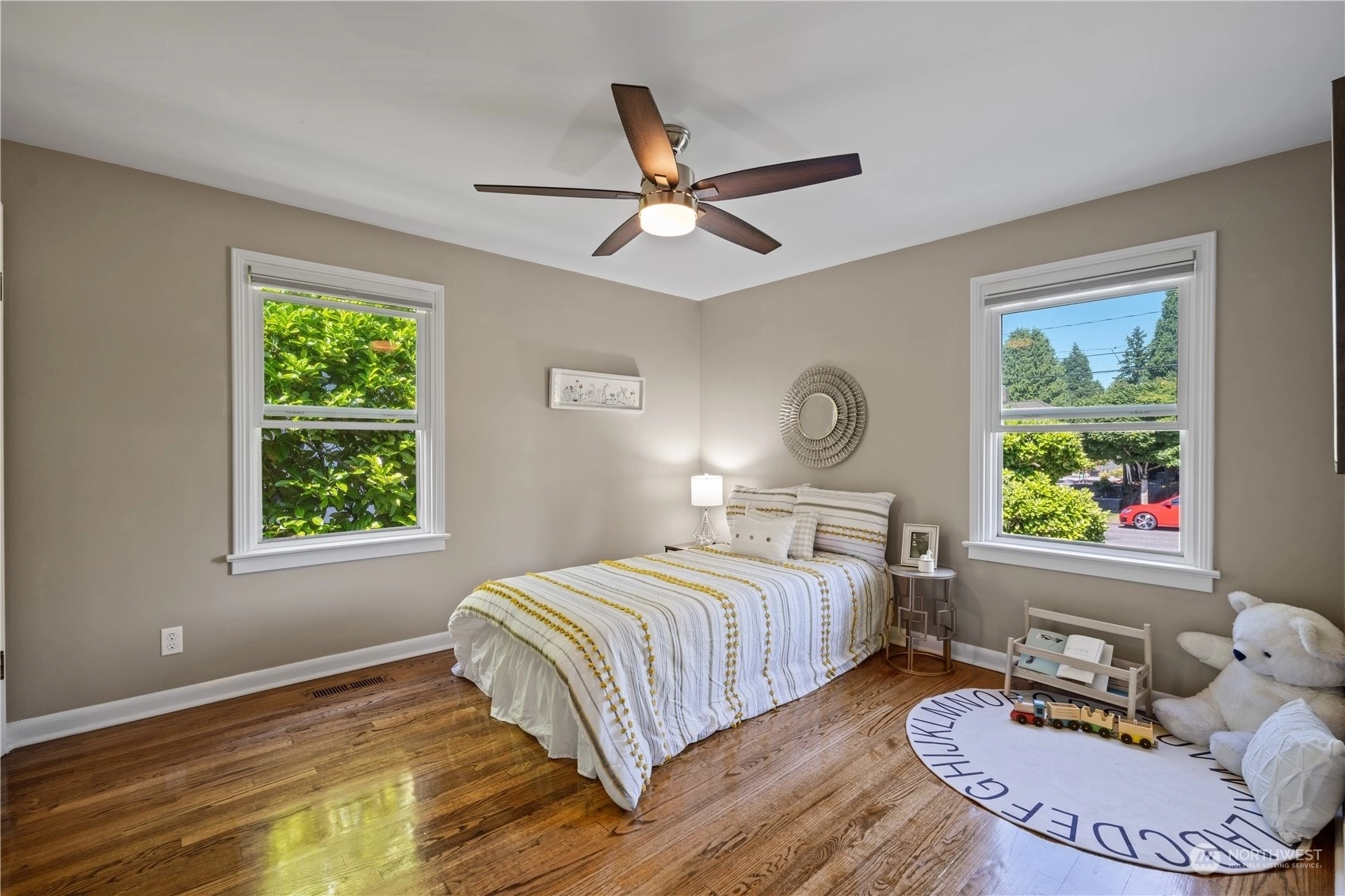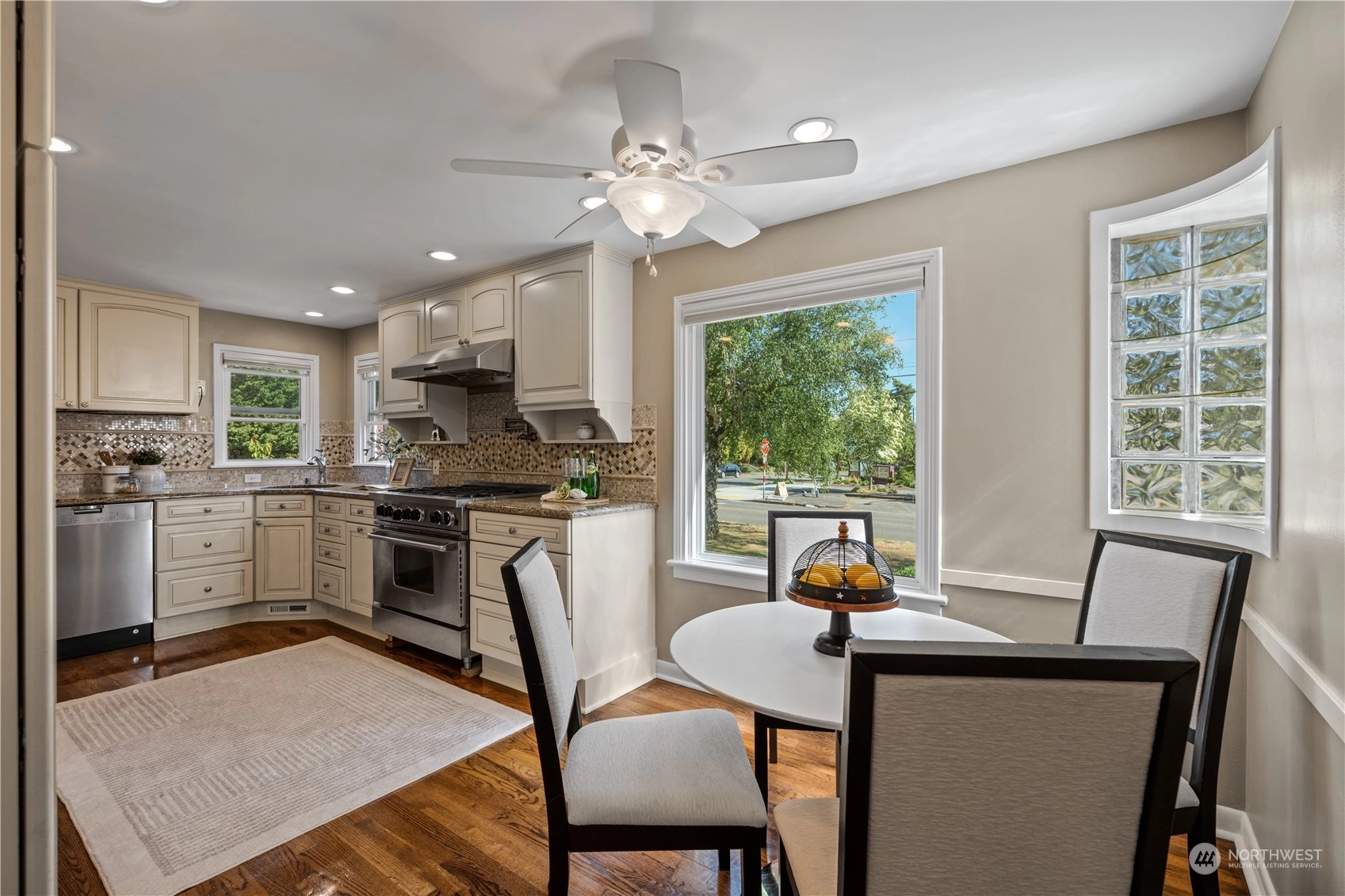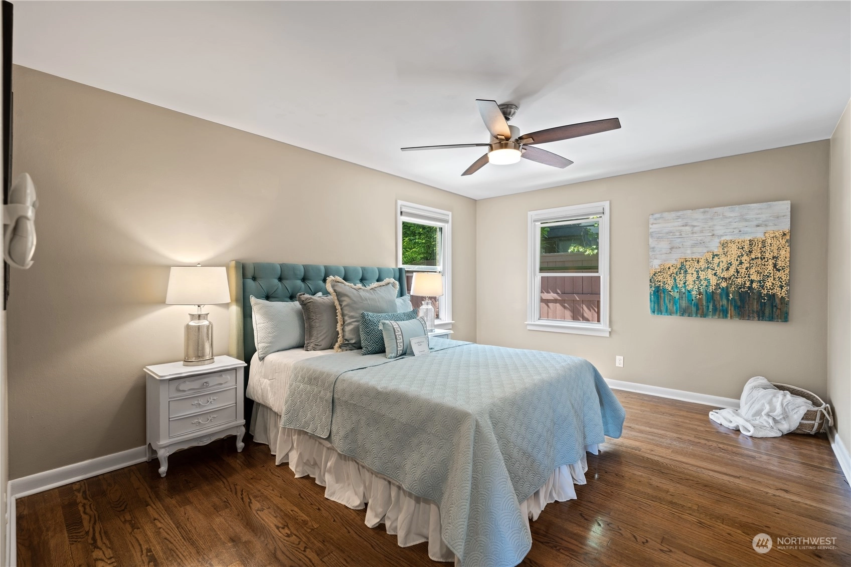 Traditional Magnolia brick residence boasting a spacious chef’s kitchen and contemporary updates. Nestled on a corner lot, this centrally positioned three-bedroom home showcases hardwood flooring on the main level. A glass door from the living room opens onto a patio and fenced backyard with large garden area with fruit trees. Additional main floor features encompass a renovated full bathroom with heated floors, and a modernized kitchen appointed with granite countertops and stainless steel appliances, including a gas range. With two fireplaces, an attached garage, a newer gas furnace, and proximity to excellent schools, this property offers both comfort and convenience. Downstairs is situated with a 1 bedroom ADU with full kitchen.